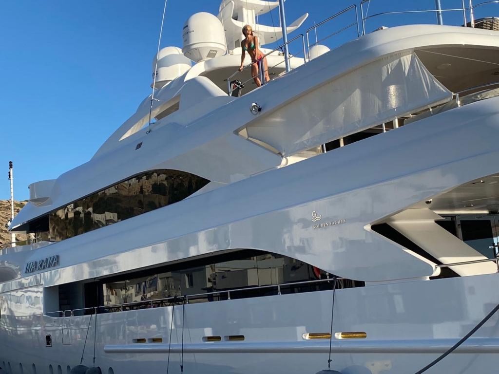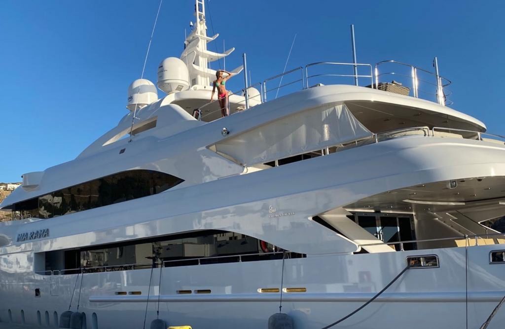 Модель Каприс Бурре выглядит потрясающе, демонстрируя своё пляжное тело в знойную жару, круизя на своей яхте и нося различные сексуальные откровенные бикини на греческих островах, 14.08.2020.