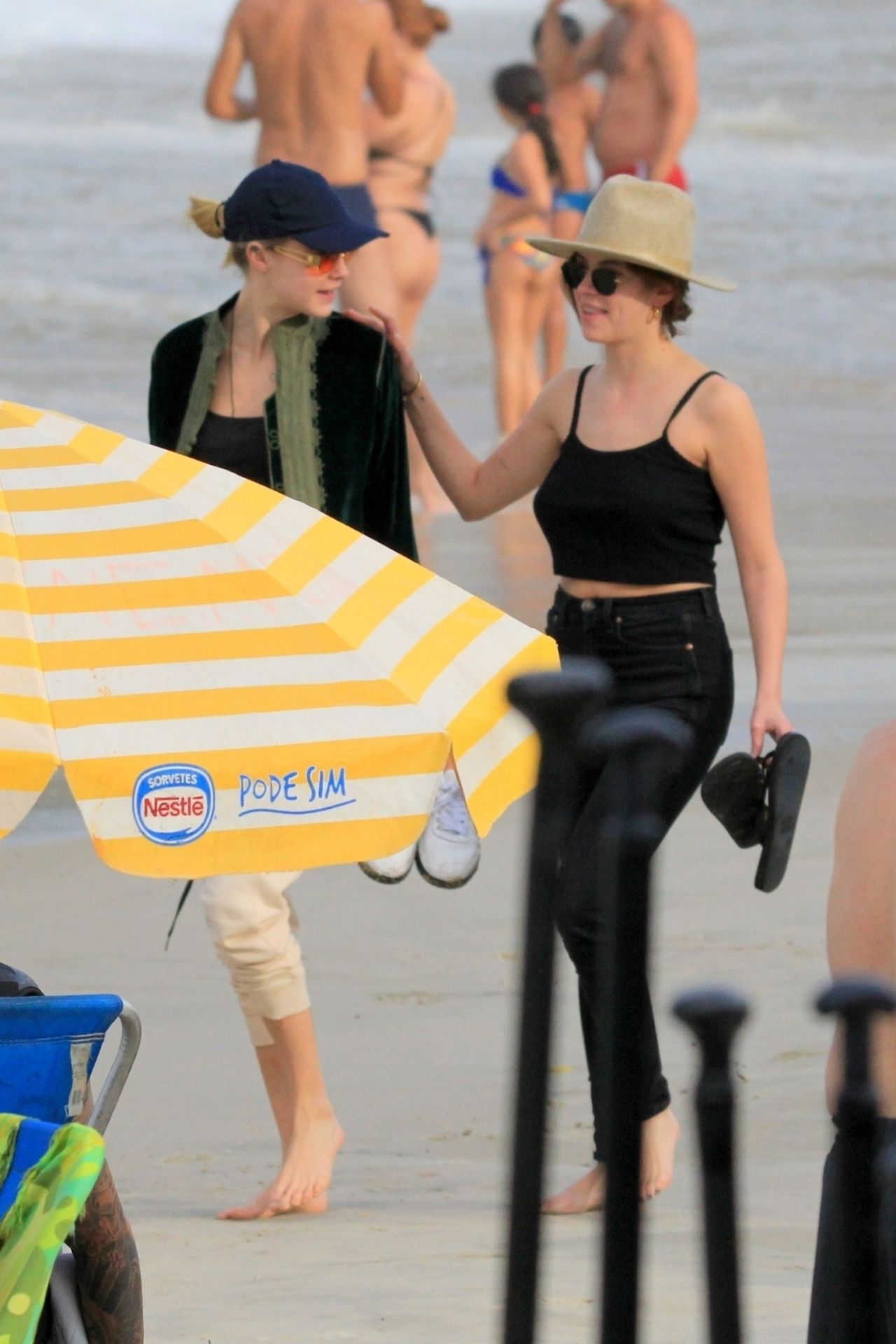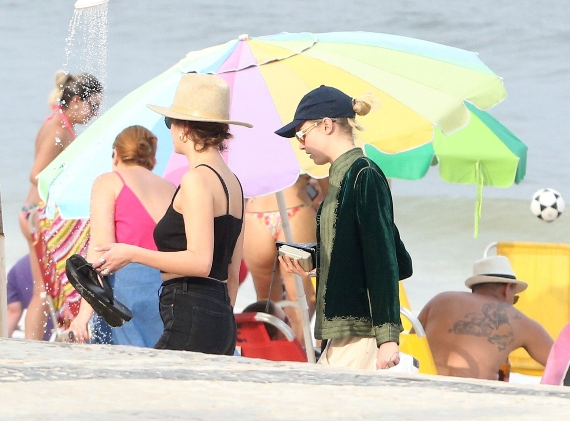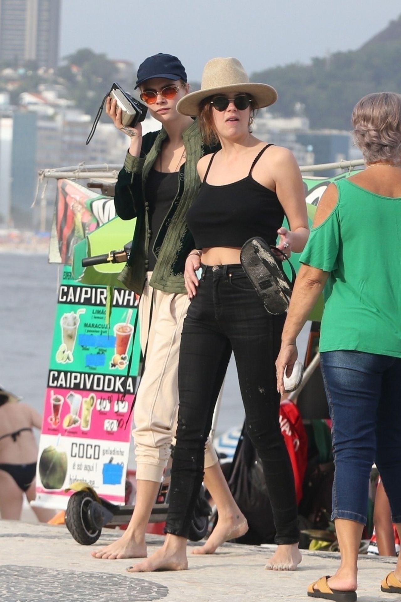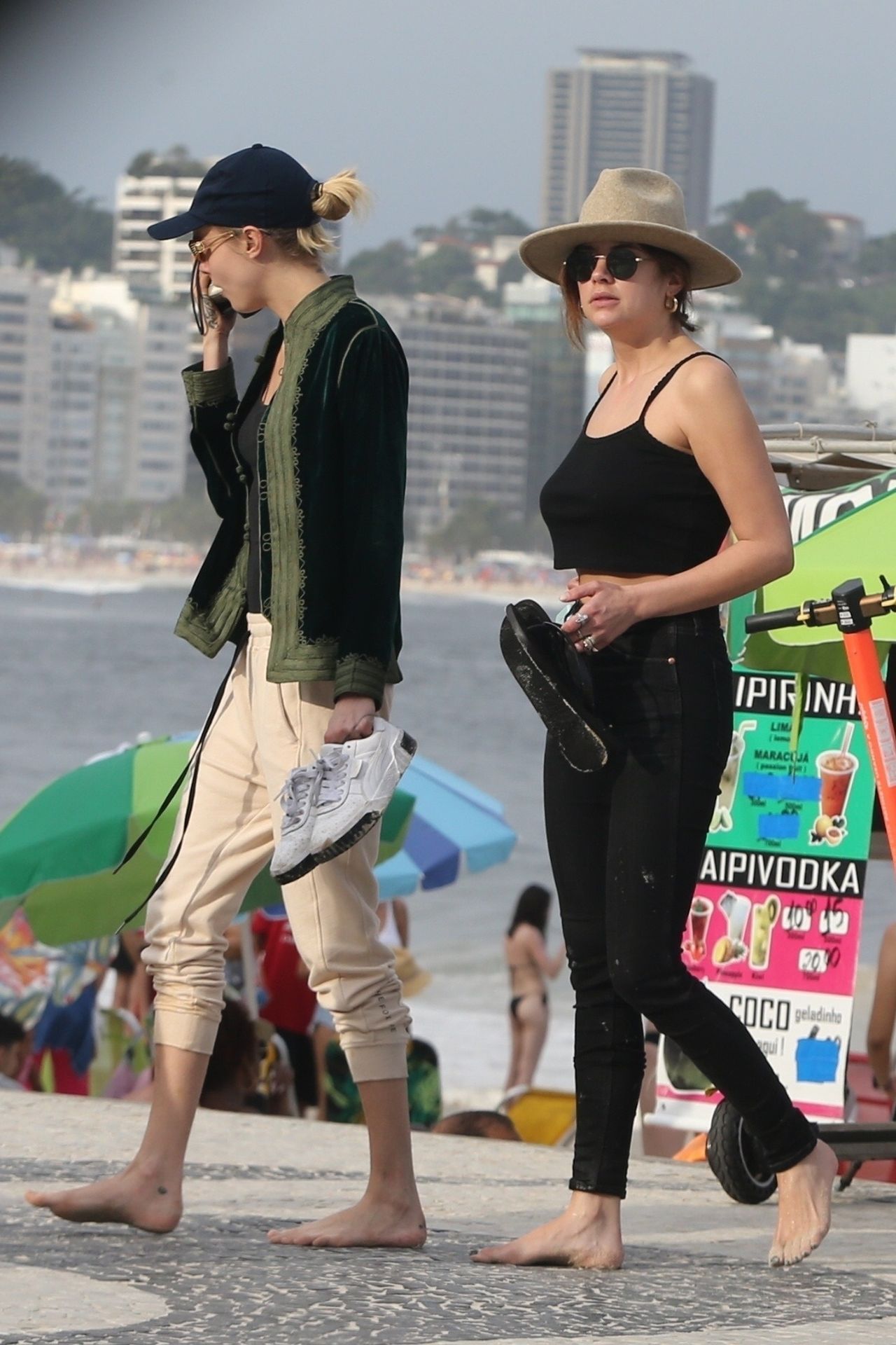 Звезды The Fappening Кара Делевинь и Эшли Бенсон посетили всемирно известный пляж Копакабана в Рио-де-Жанейро, Бразилия, 01/04/2020. Влюбленная пара улыбалась, прогуливаясь под руку и общаясь с другими туристами, окуная ноги в воду и наслаждаясь праздничной атмосферой.