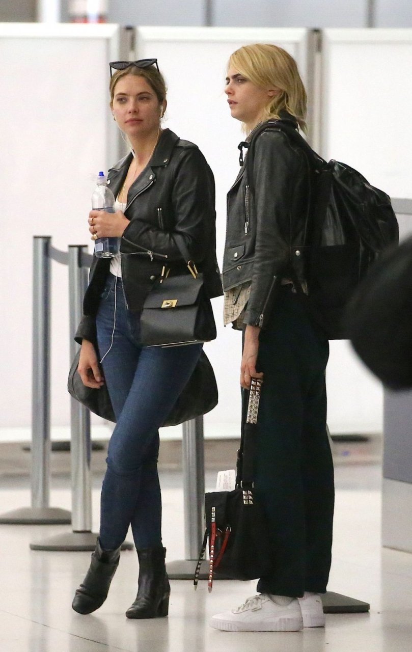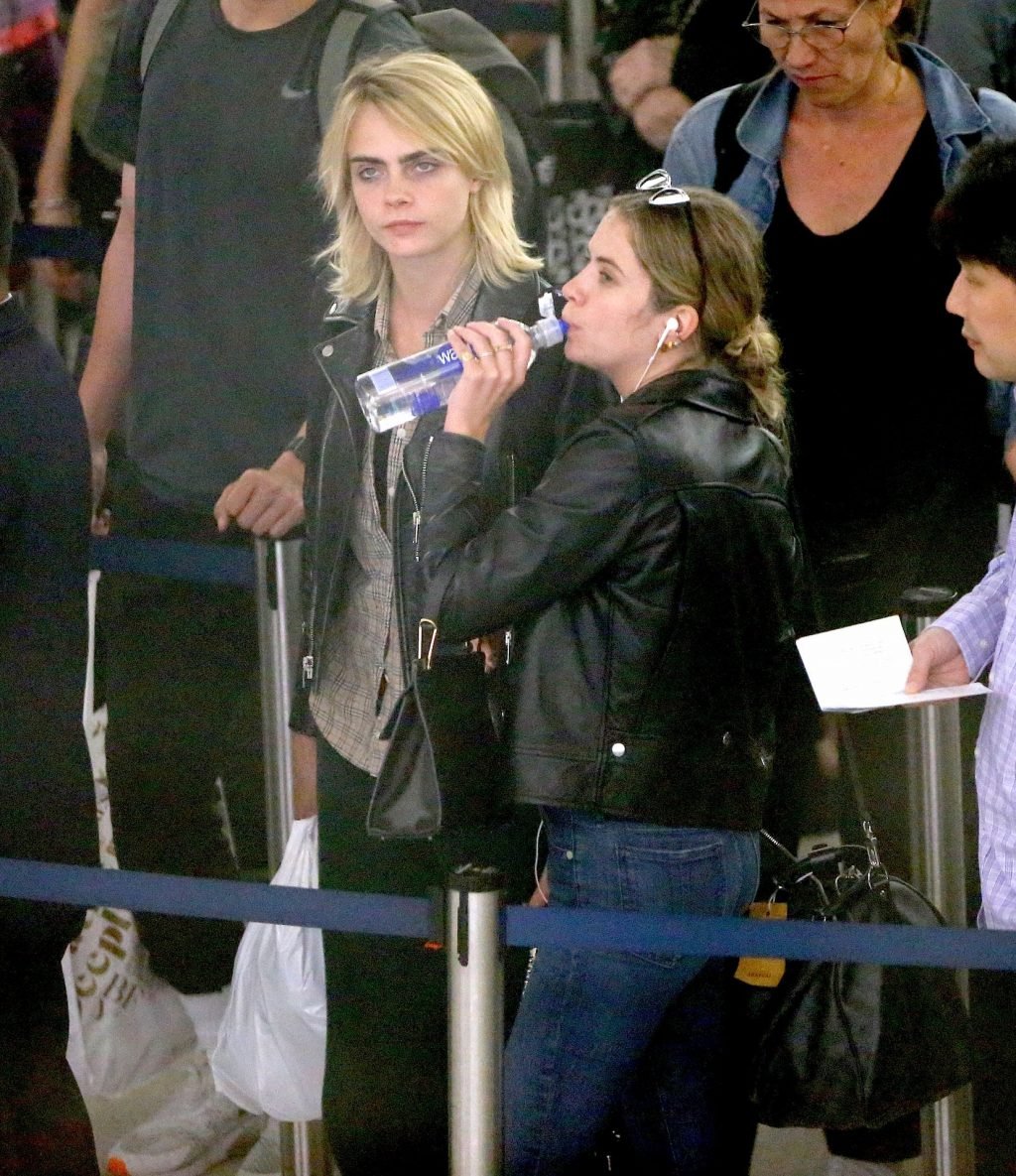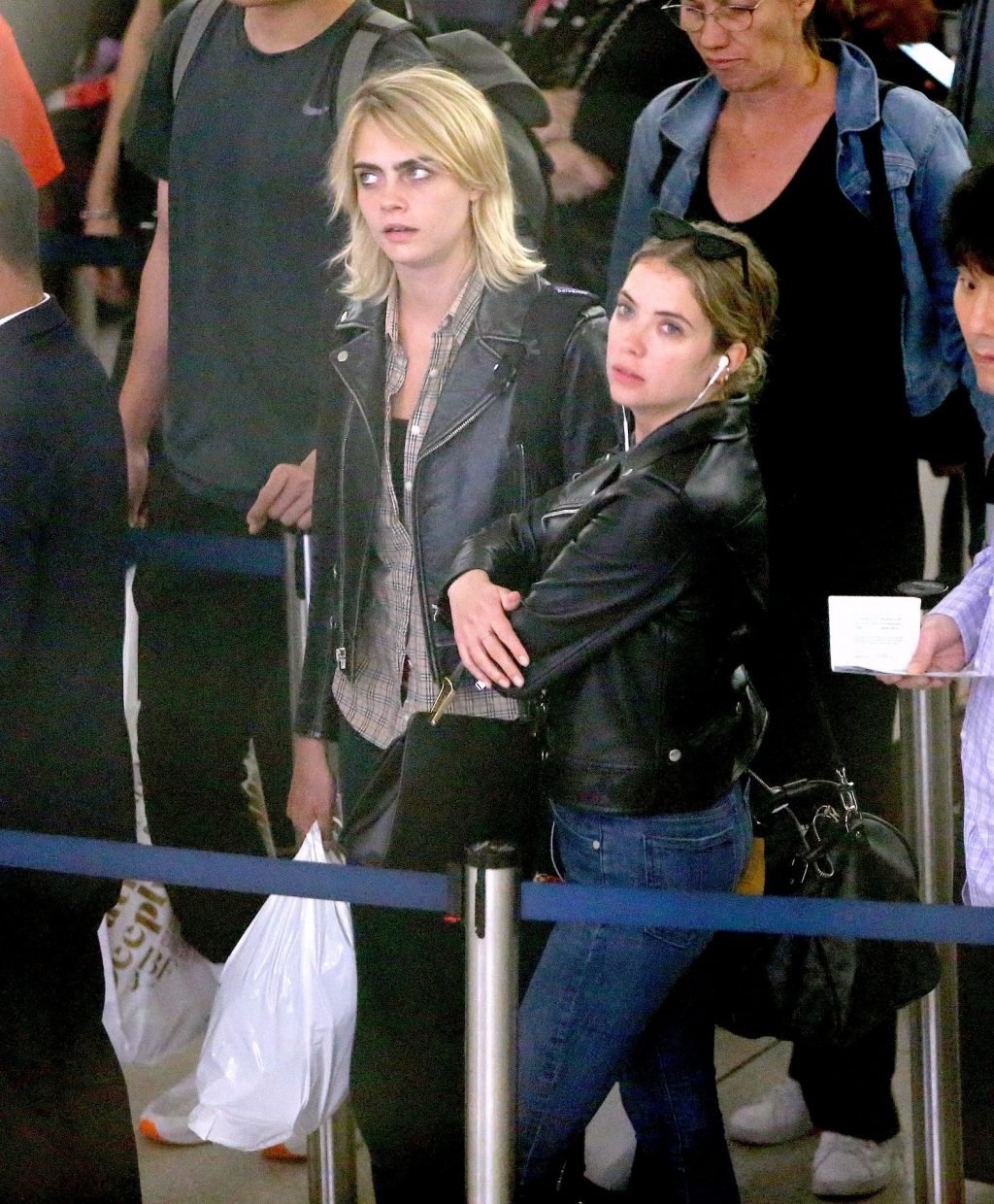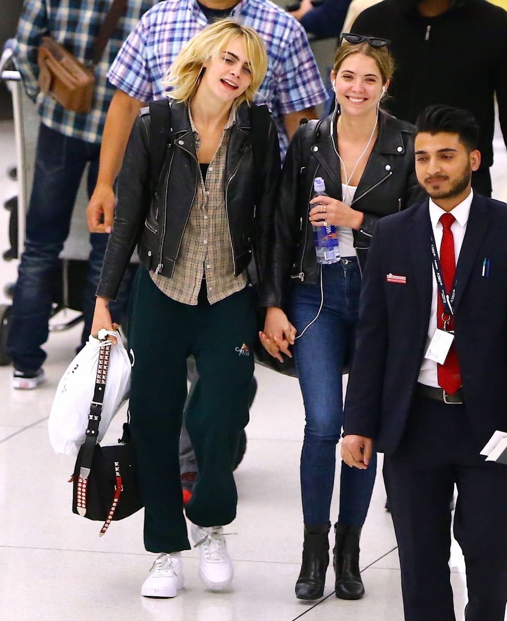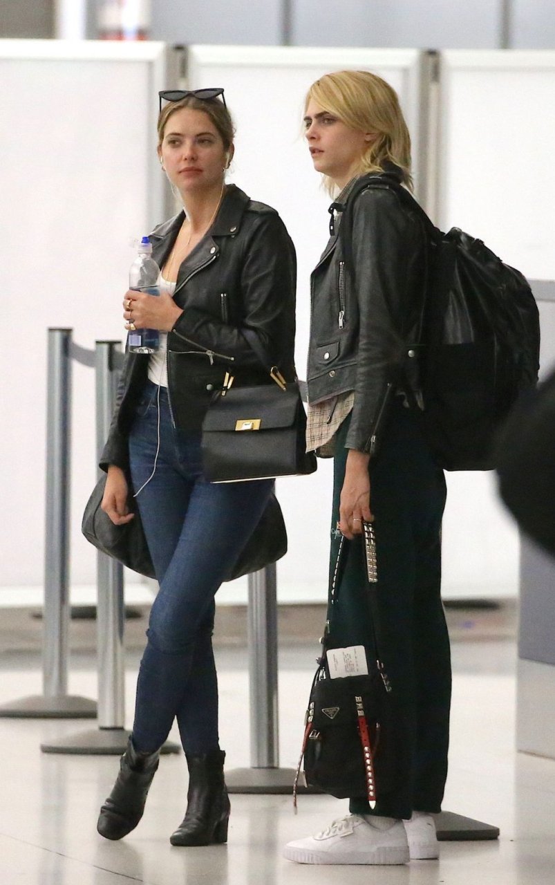 Посмотрите новые папарацци фотографии знаменитой лесбийской пары. Кара Делевинь и Эшли Бенсон были замечены в аэропорту JFK в Нью-Йорке, целующимися и обнимающимися в очереди на безопасность, 18.06.2019.