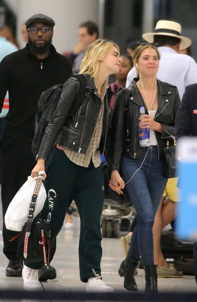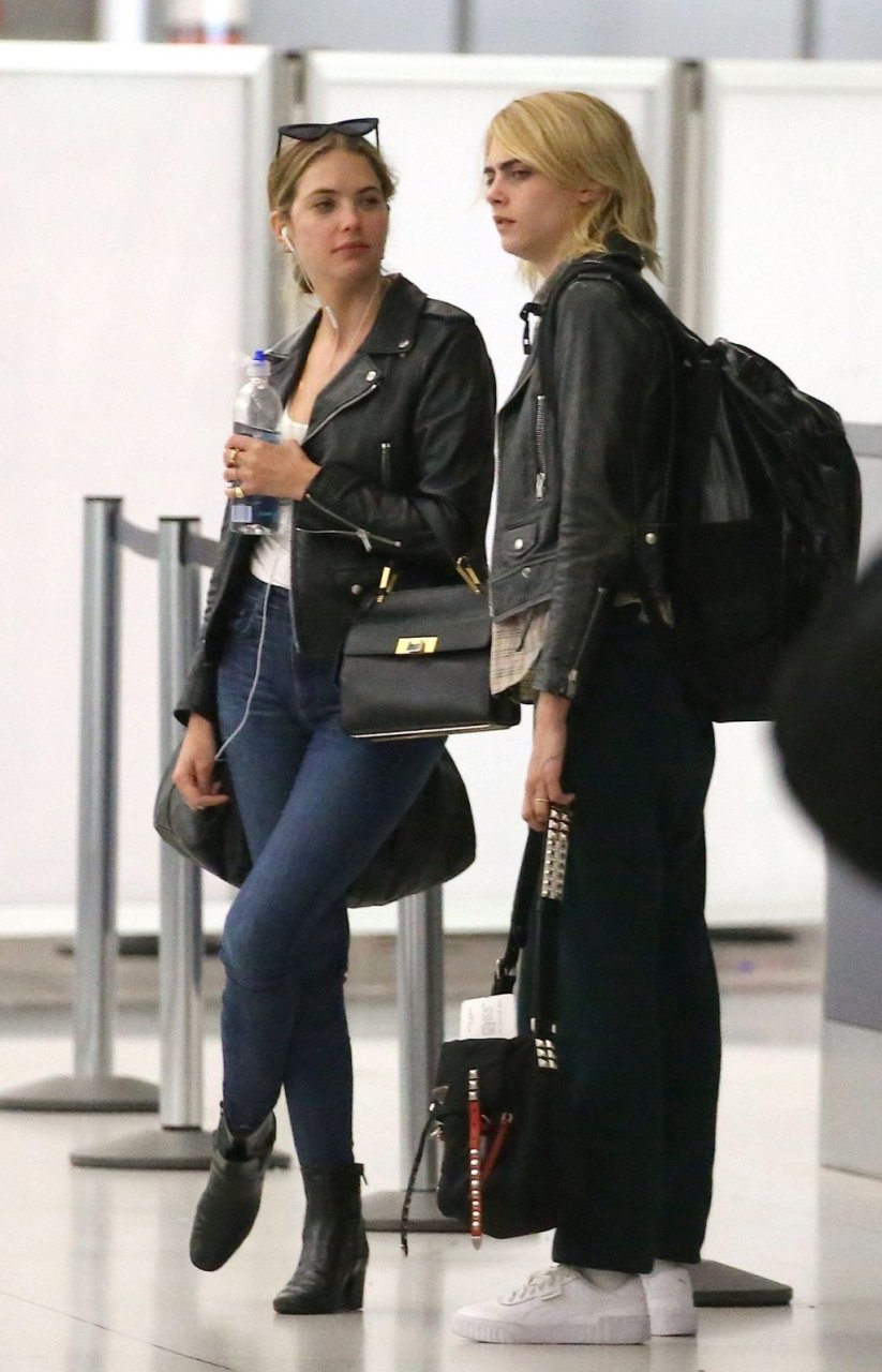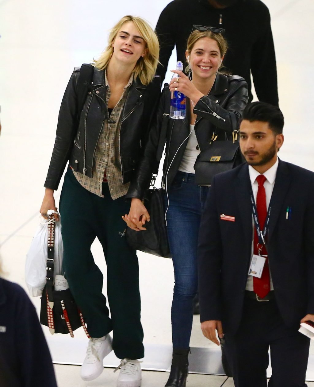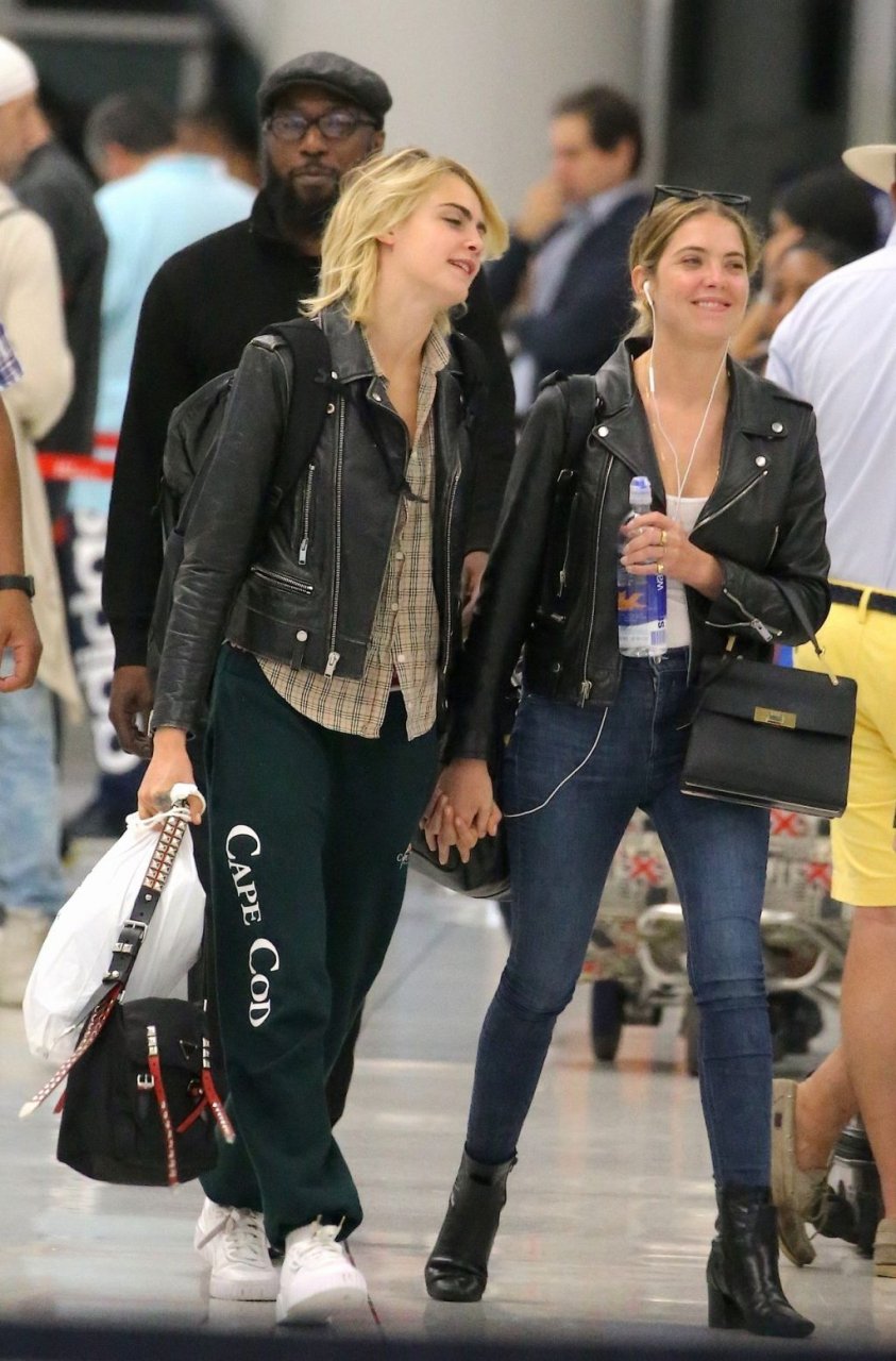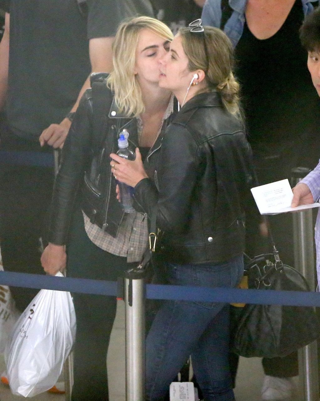 Посмотрите новые папарацци фотографии знаменитой лесбийской пары. Кара Делевинь и Эшли Бенсон были замечены в аэропорту JFK в Нью-Йорке, целующимися и обнимающимися в очереди на безопасность, 18.06.2019.