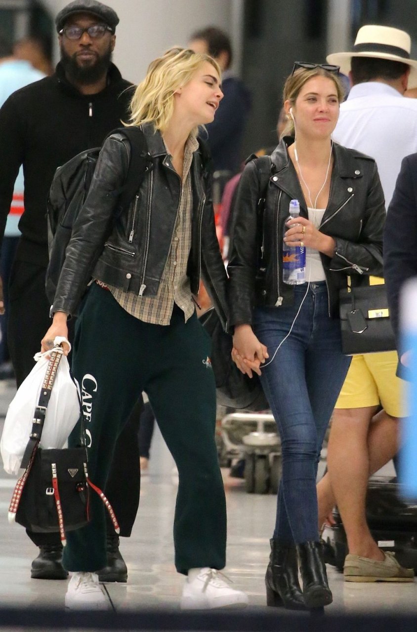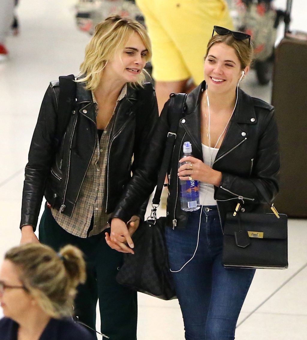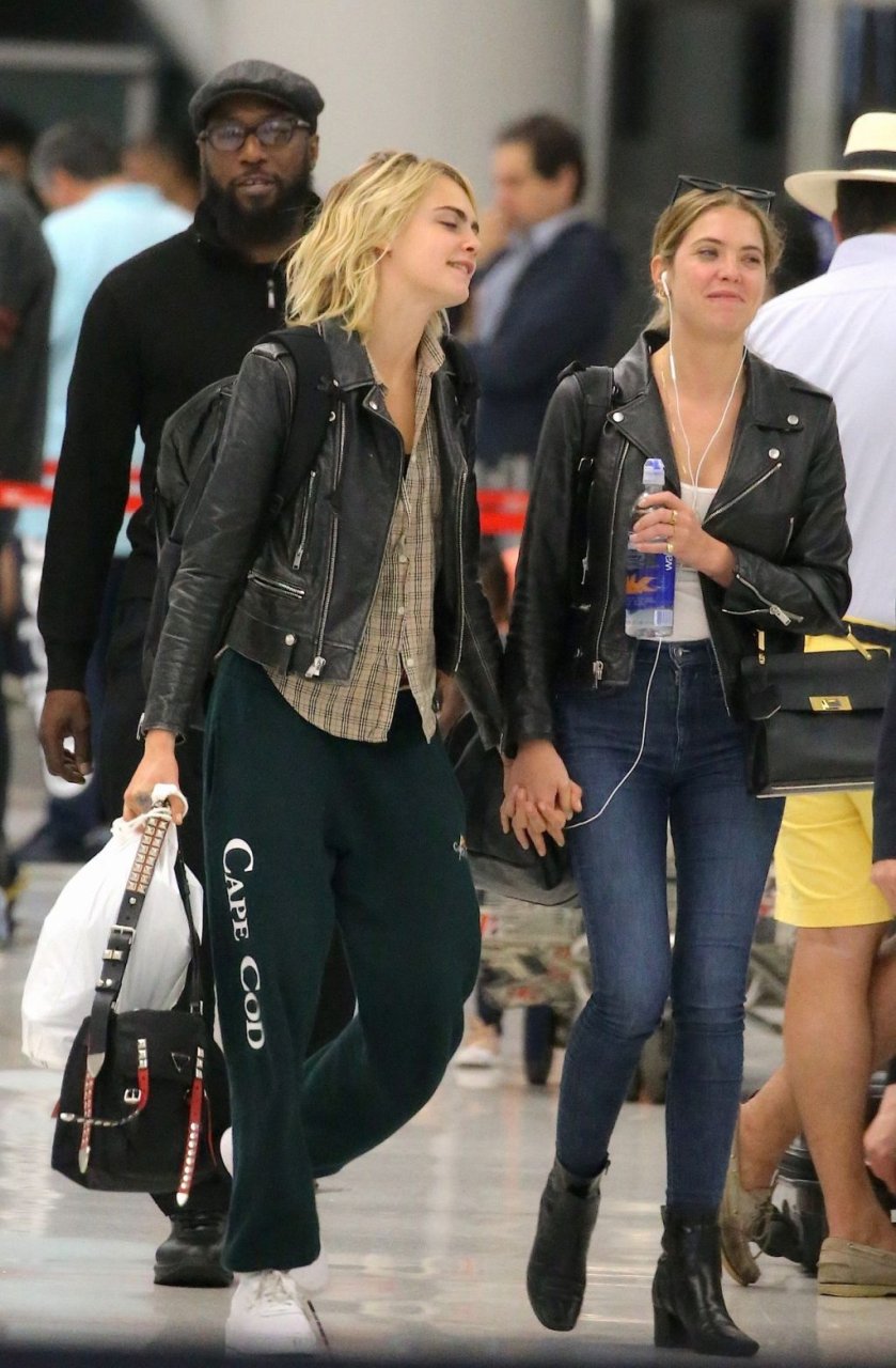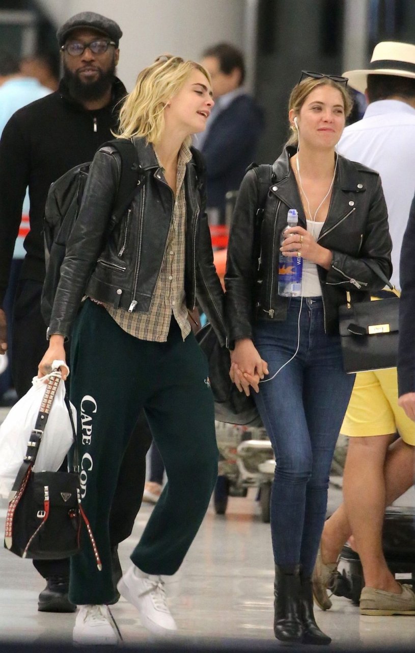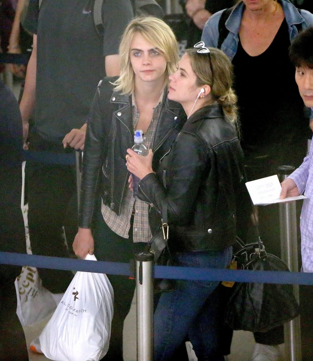 Посмотрите новые папарацци фотографии знаменитой лесбийской пары. Кара Делевинь и Эшли Бенсон были замечены в аэропорту JFK в Нью-Йорке, целующимися и обнимающимися в очереди на безопасность, 18.06.2019.