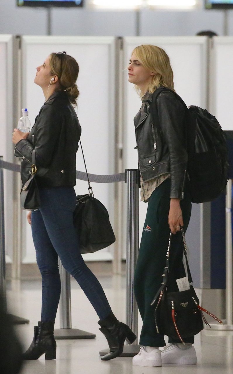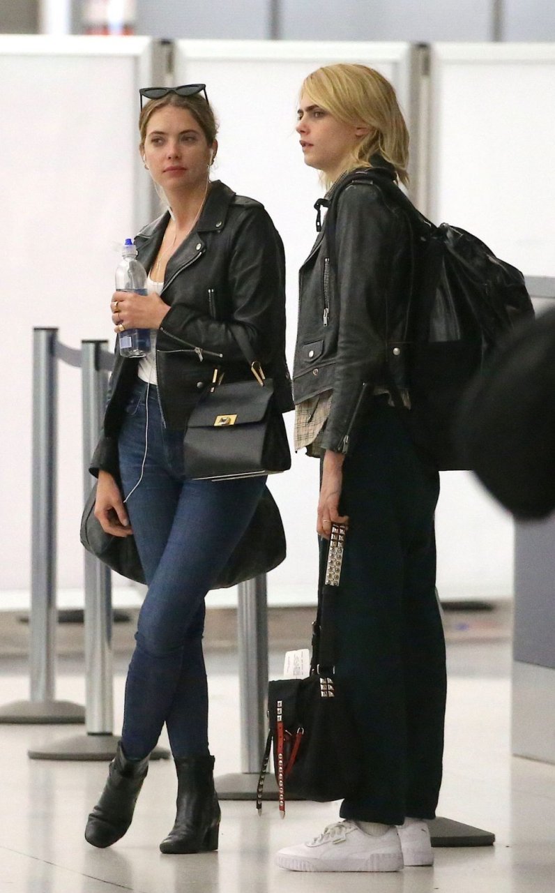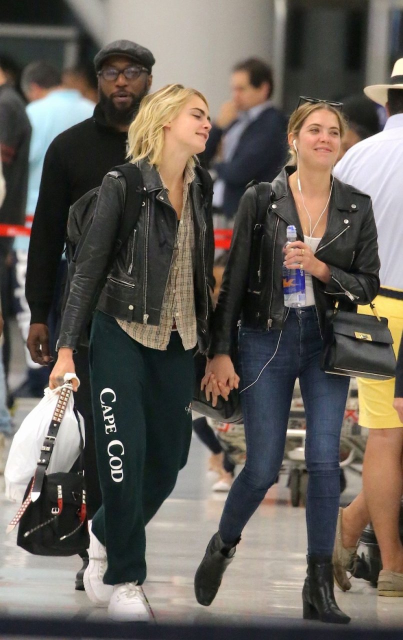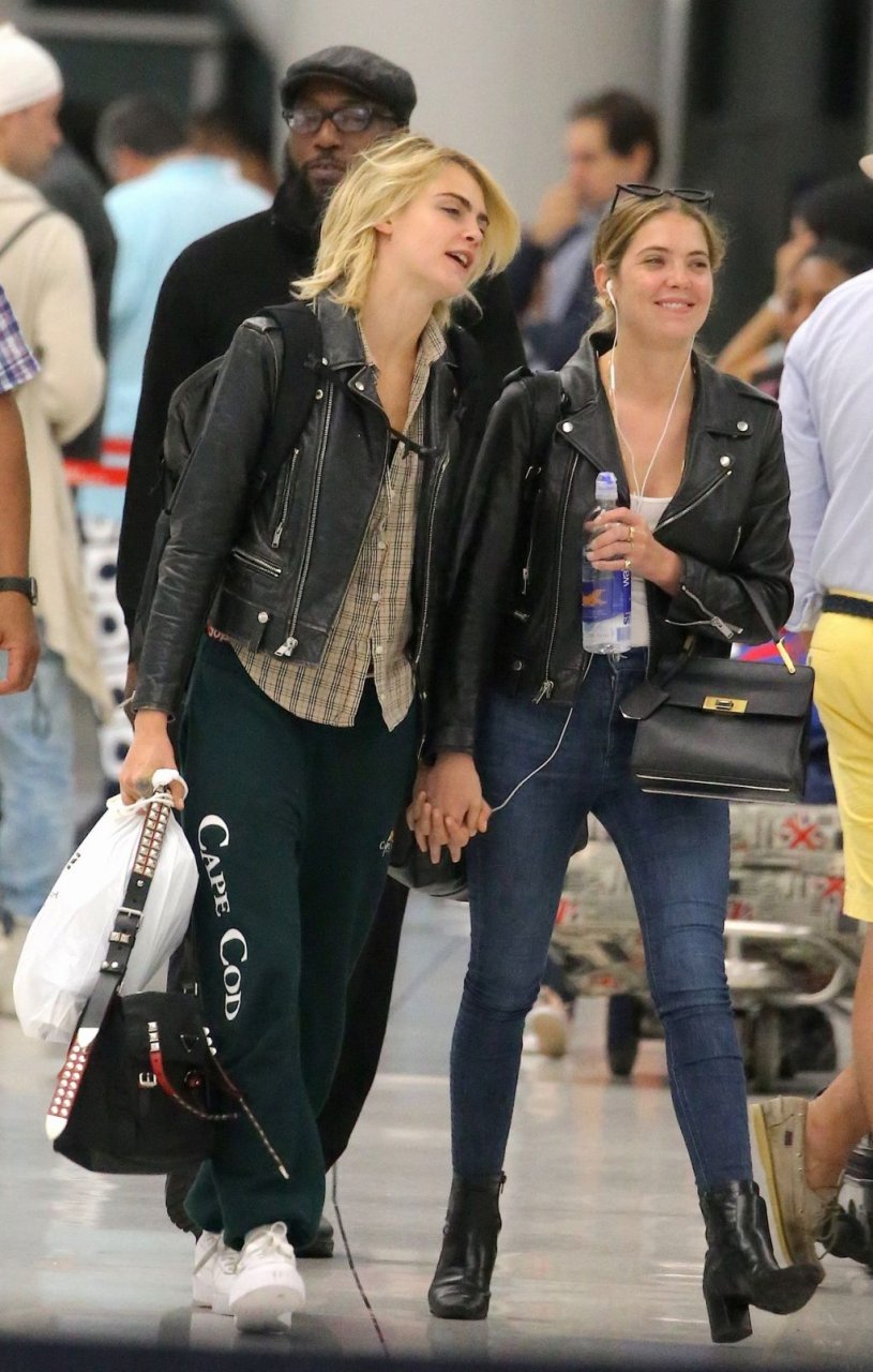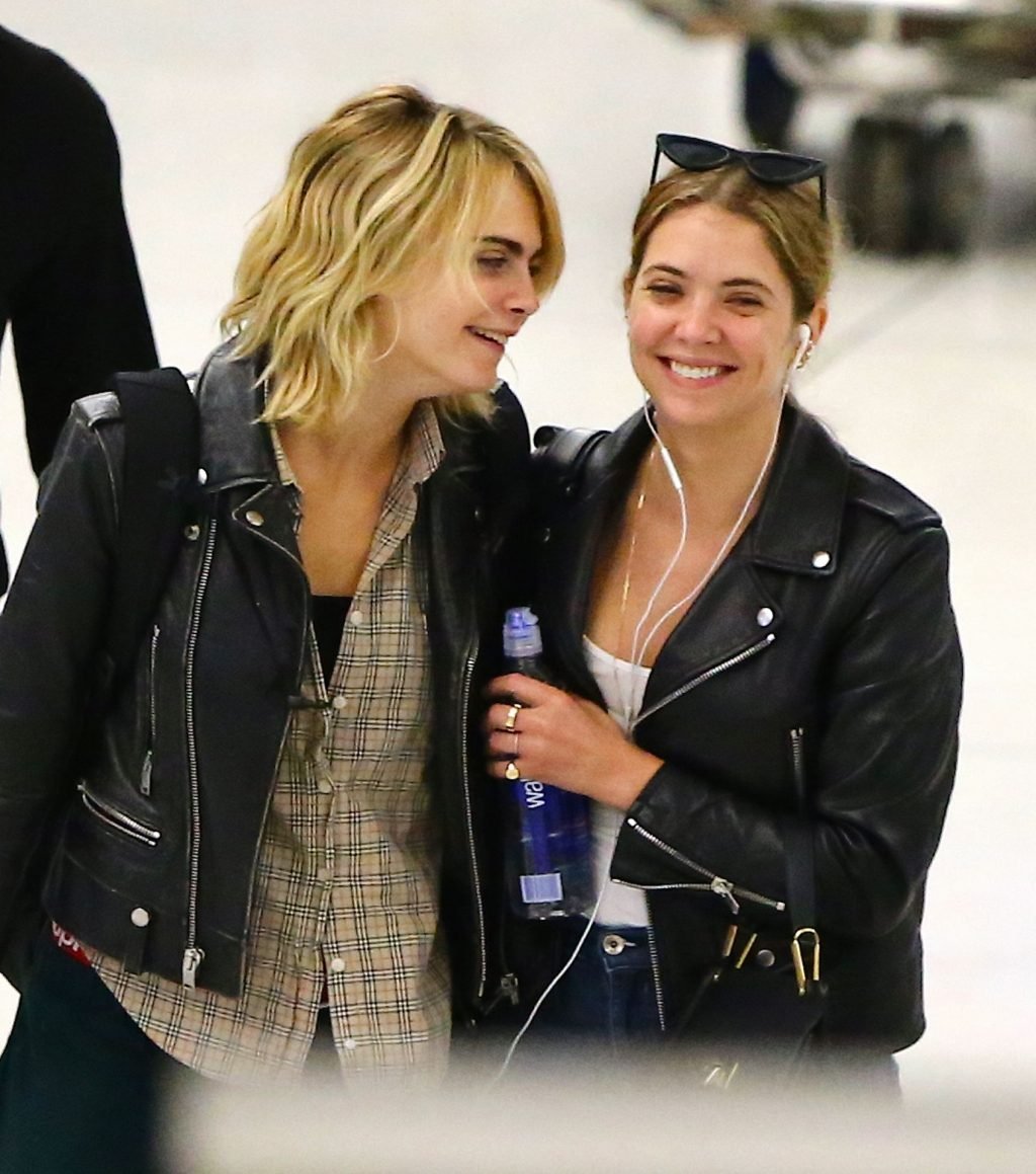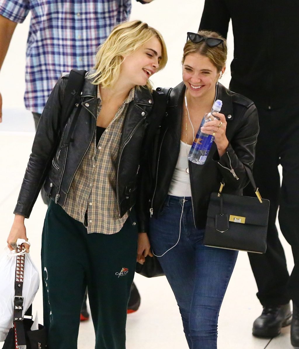 Посмотрите новые папарацци фотографии знаменитой лесбийской пары. Кара Делевинь и Эшли Бенсон были замечены в аэропорту JFK в Нью-Йорке, целующимися и обнимающимися в очереди на безопасность, 18.06.2019.