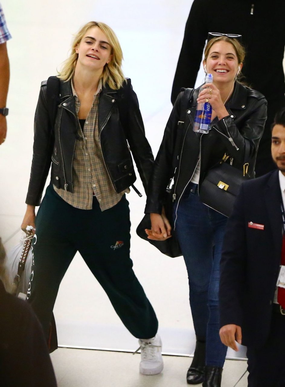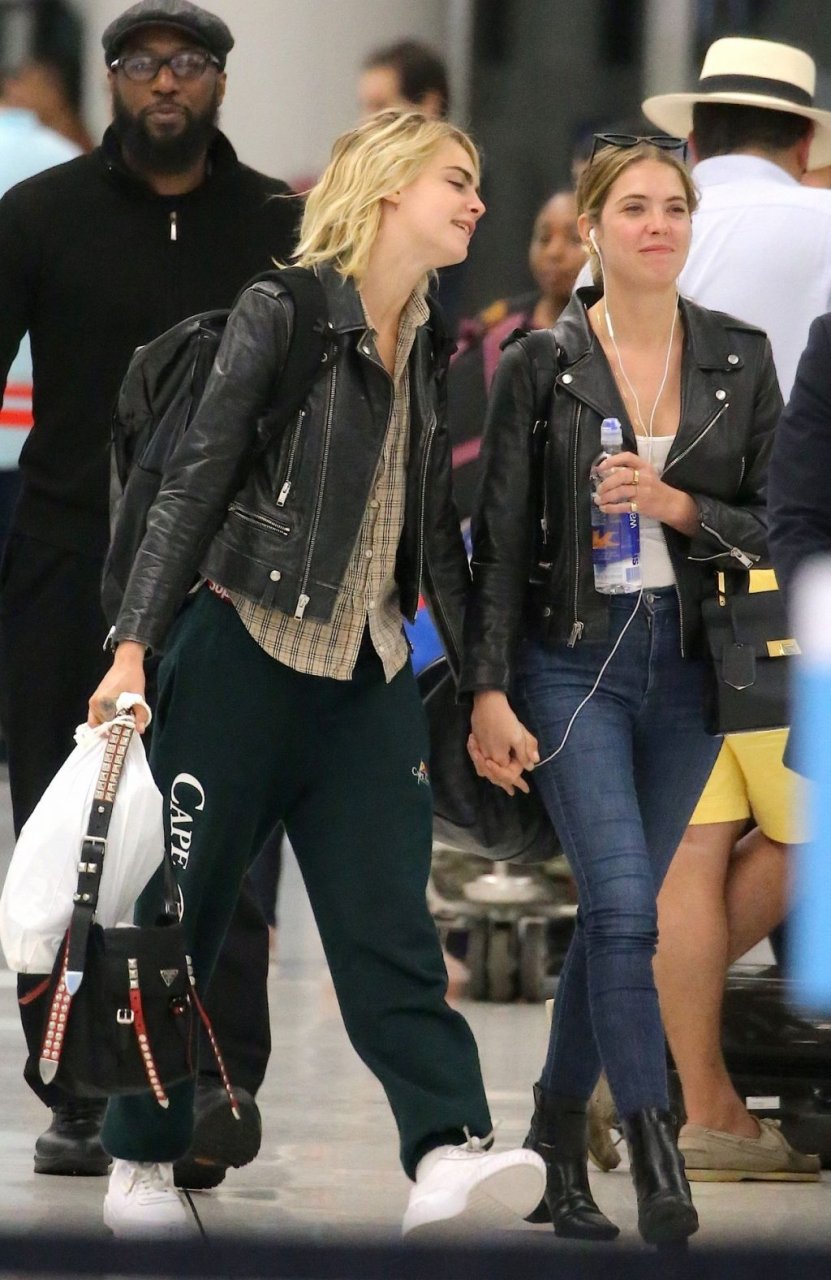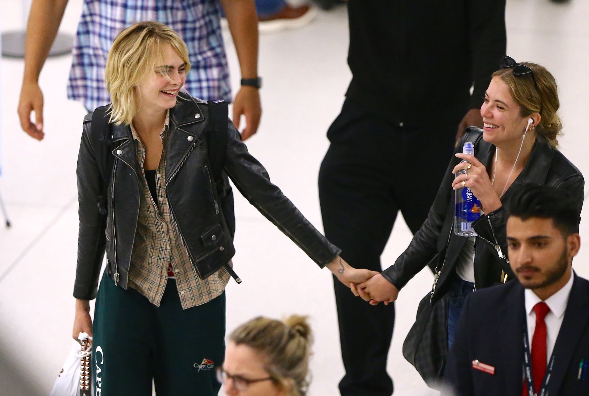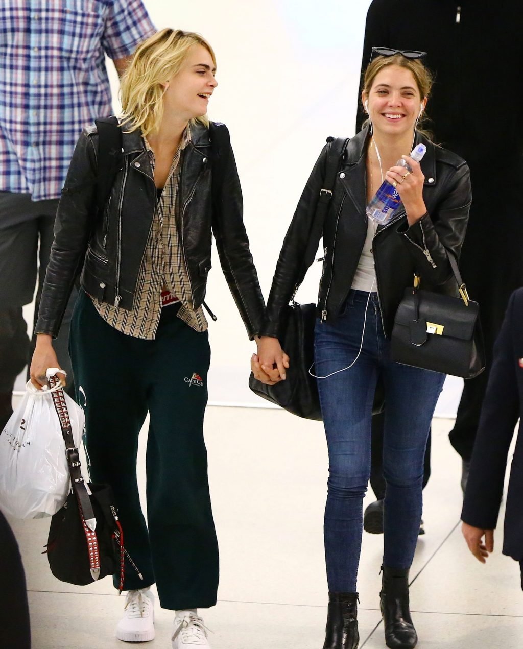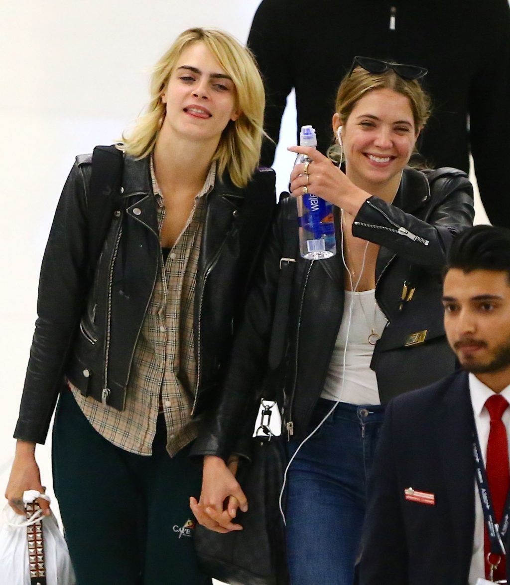 Посмотрите новые папарацци фотографии знаменитой лесбийской пары. Кара Делевинь и Эшли Бенсон были замечены в аэропорту JFK в Нью-Йорке, целующимися и обнимающимися в очереди на безопасность, 18.06.2019.