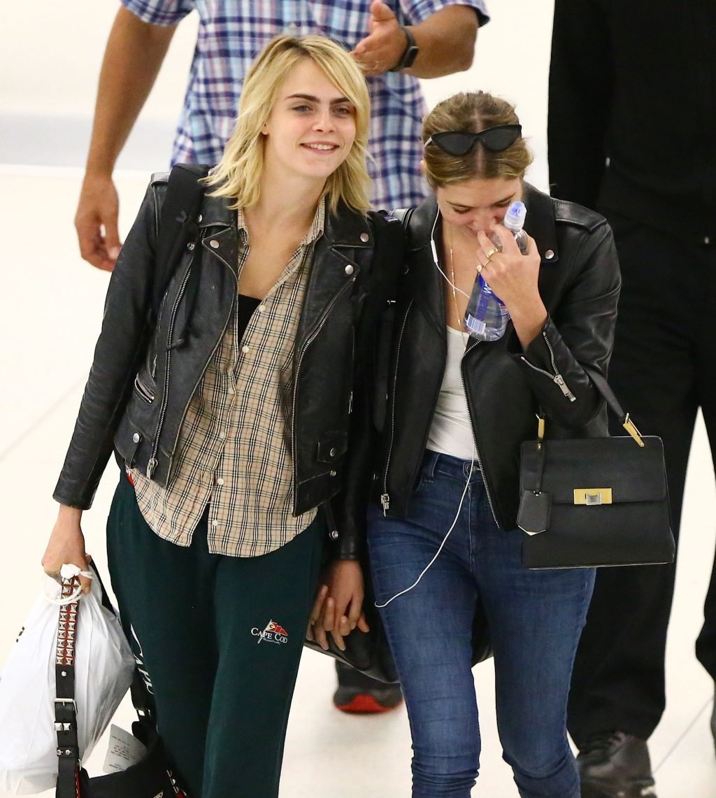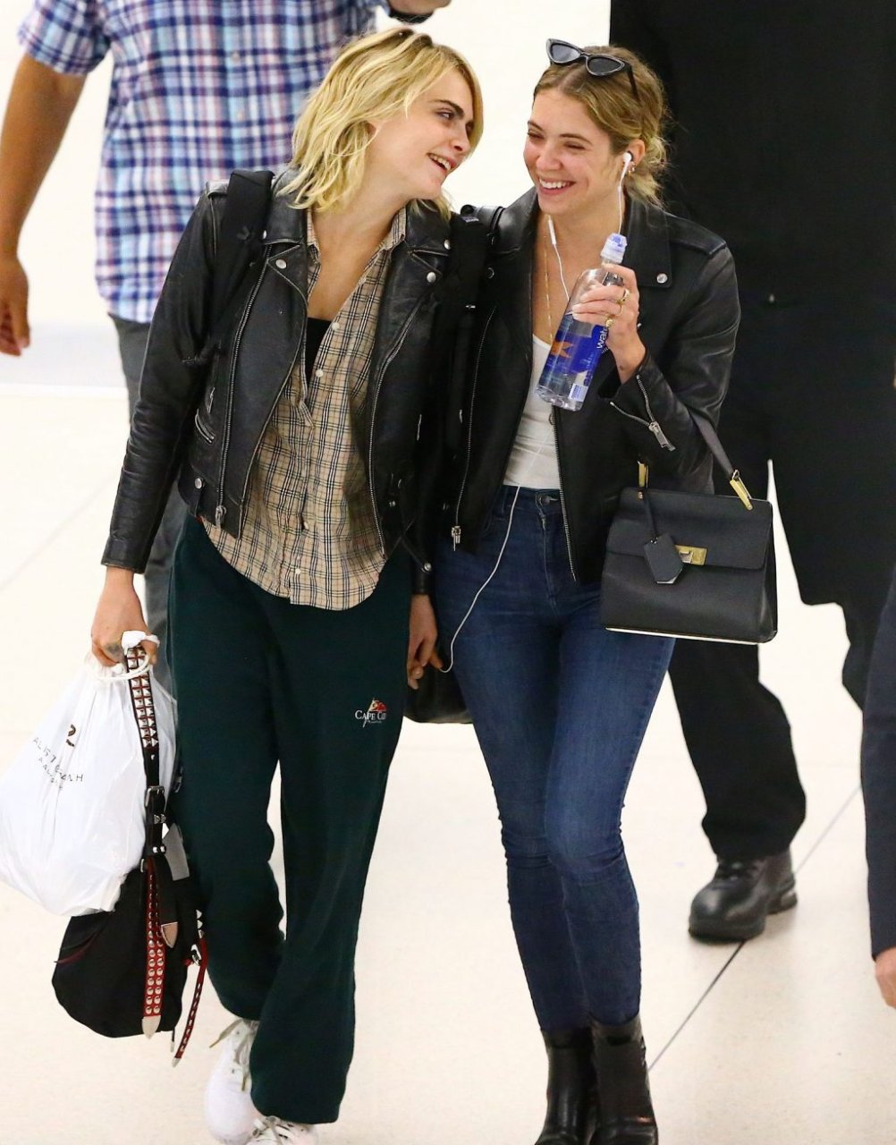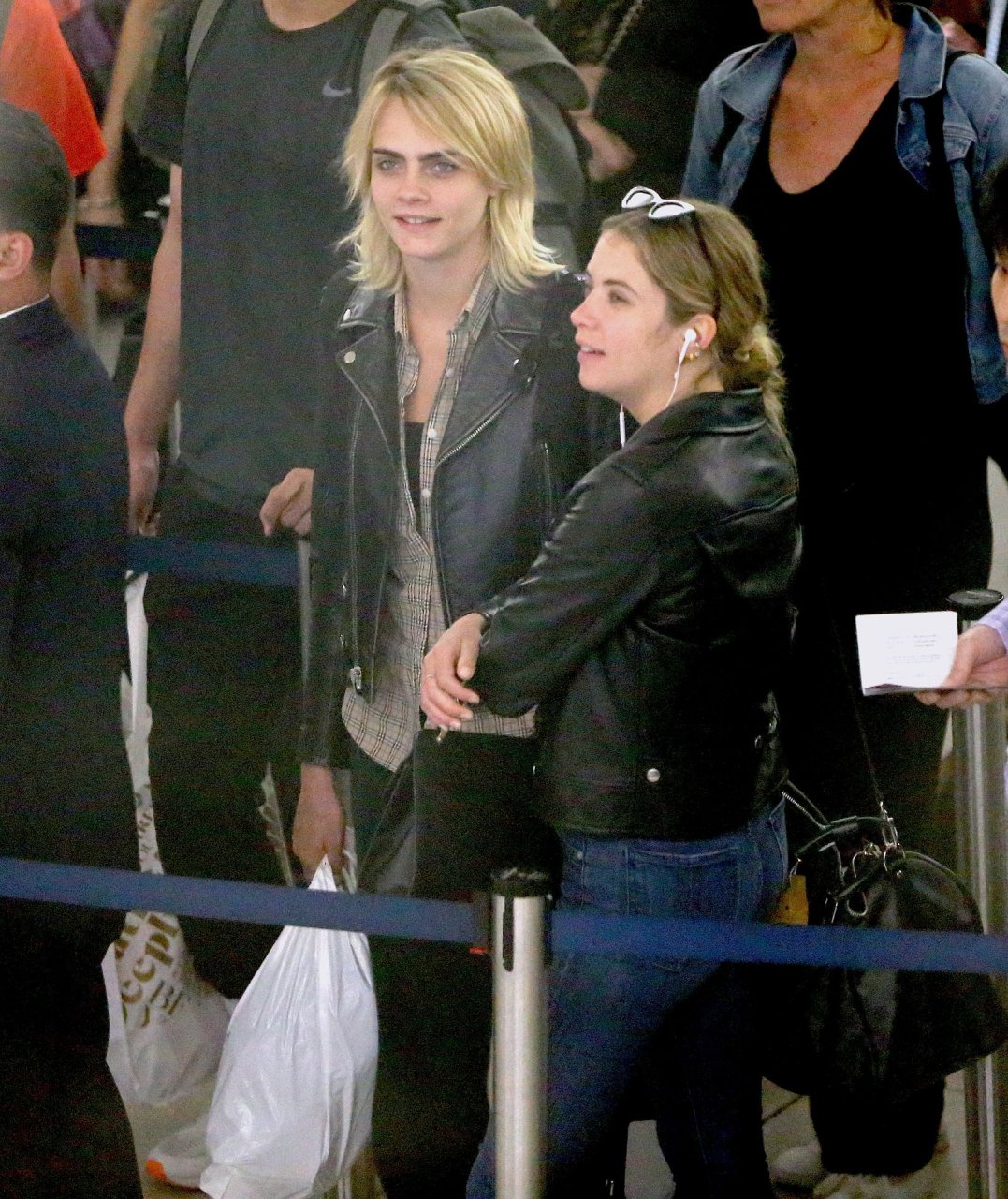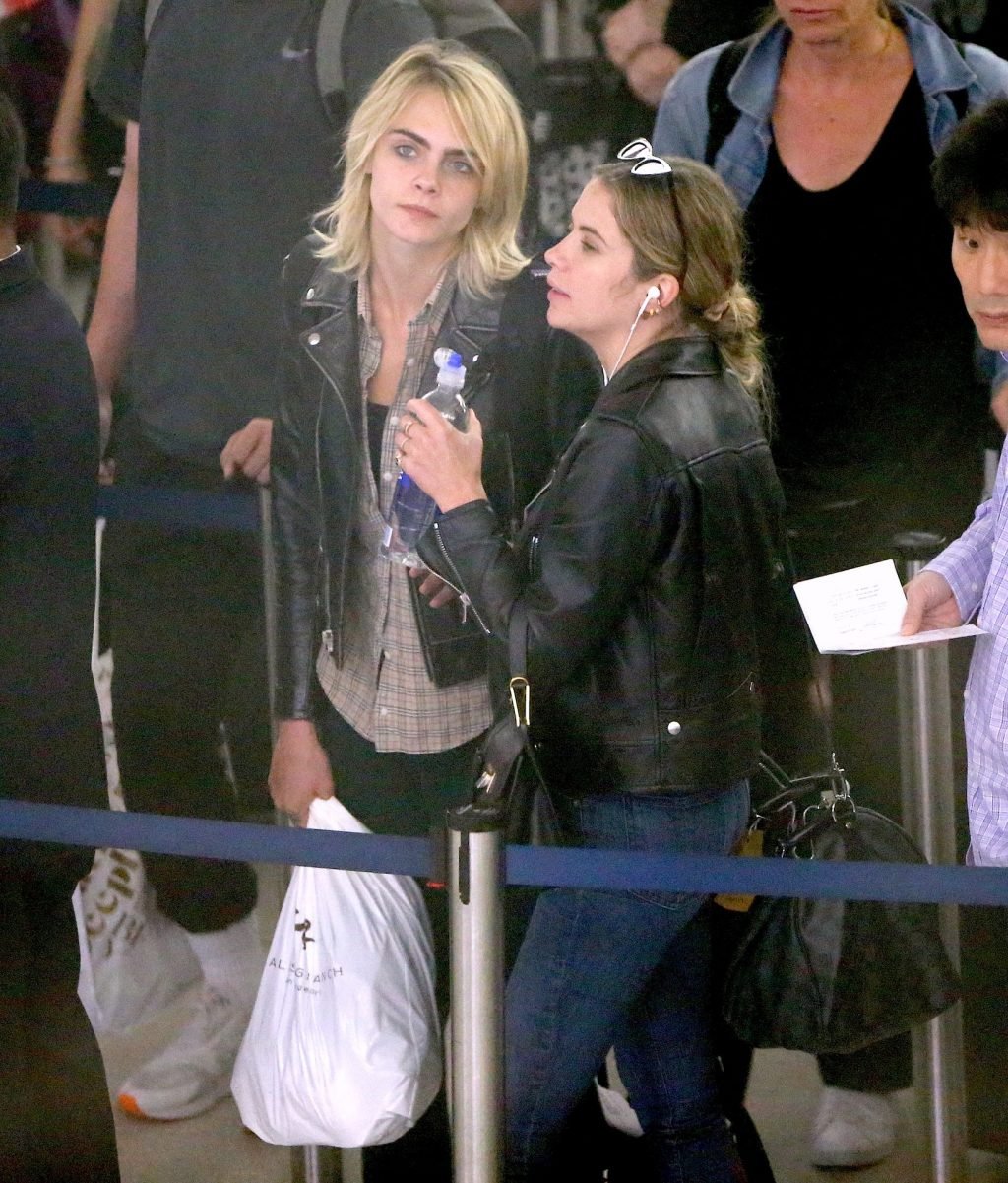 Посмотрите новые папарацци фотографии знаменитой лесбийской пары. Кара Делевинь и Эшли Бенсон были замечены в аэропорту JFK в Нью-Йорке, целующимися и обнимающимися в очереди на безопасность, 18.06.2019.
