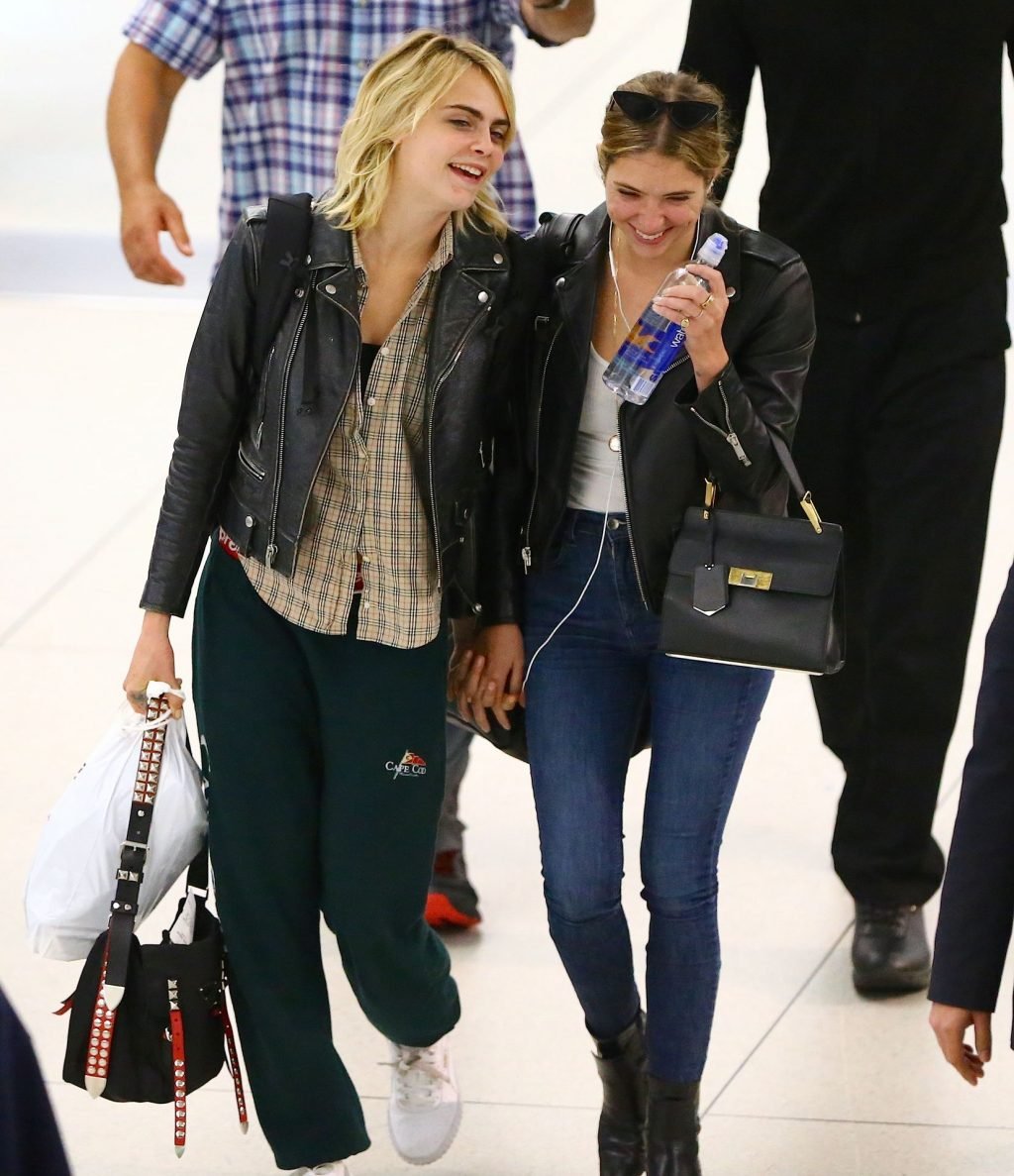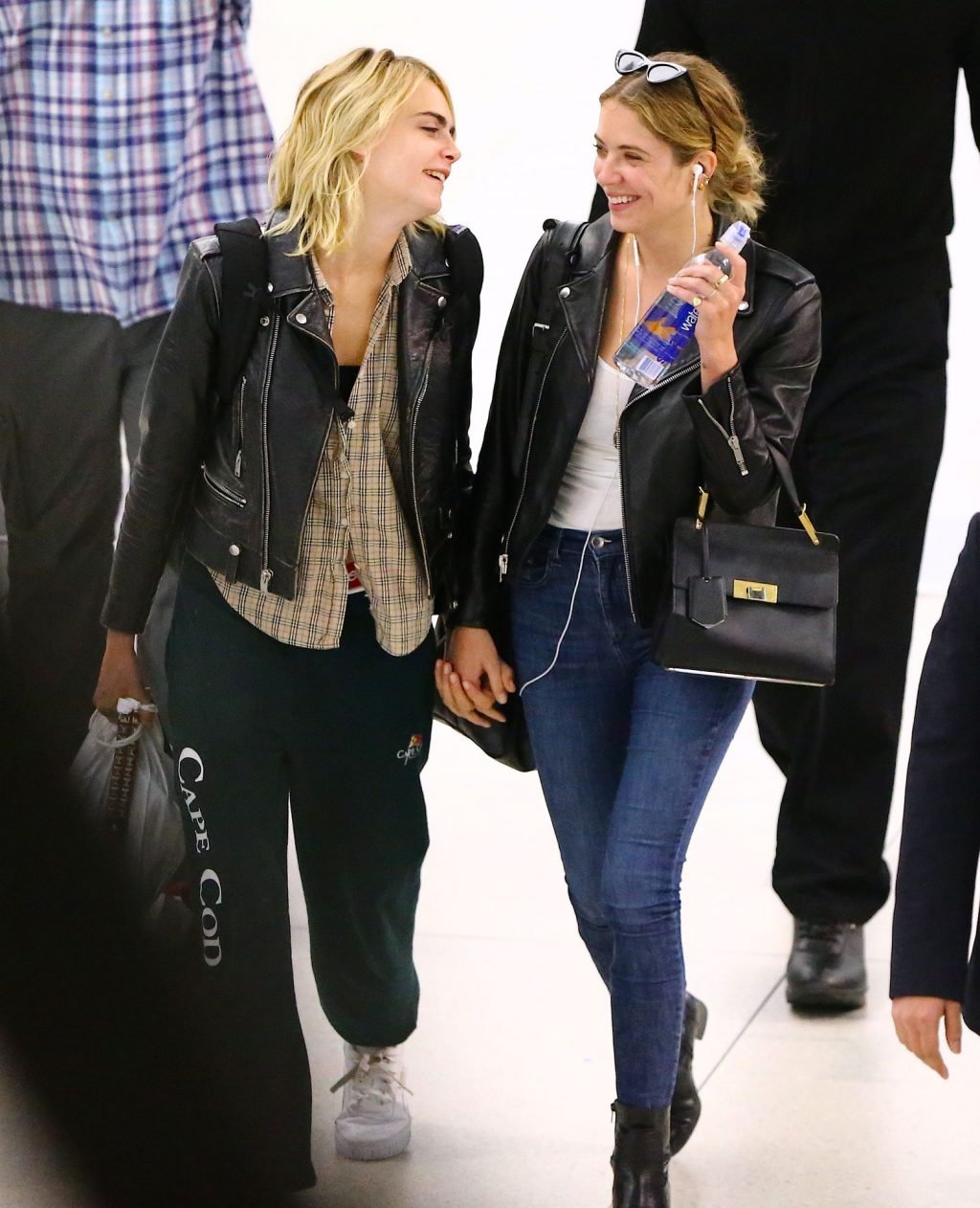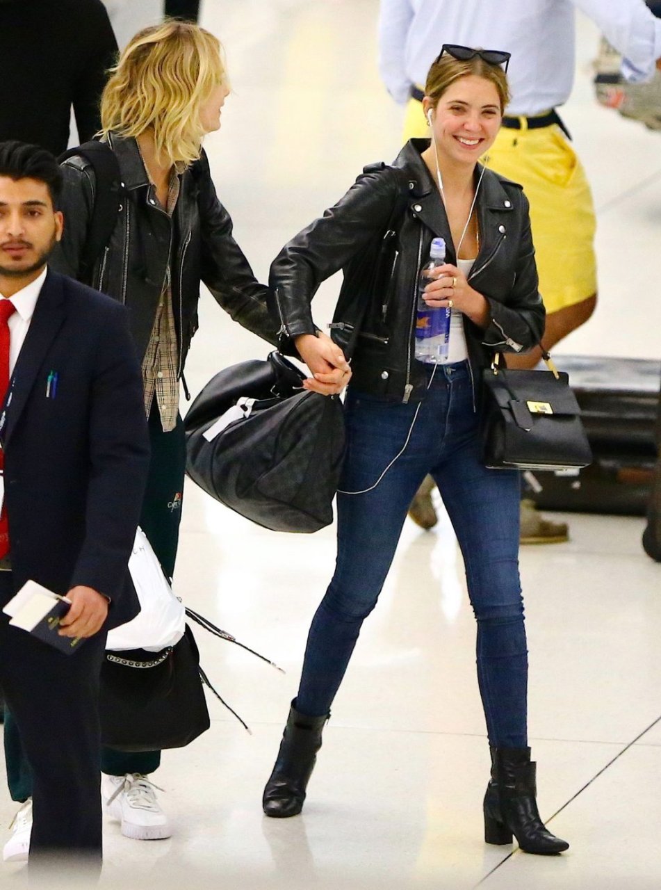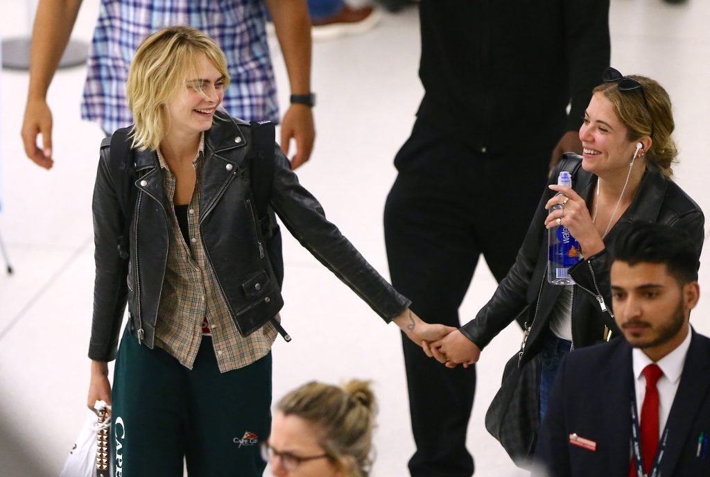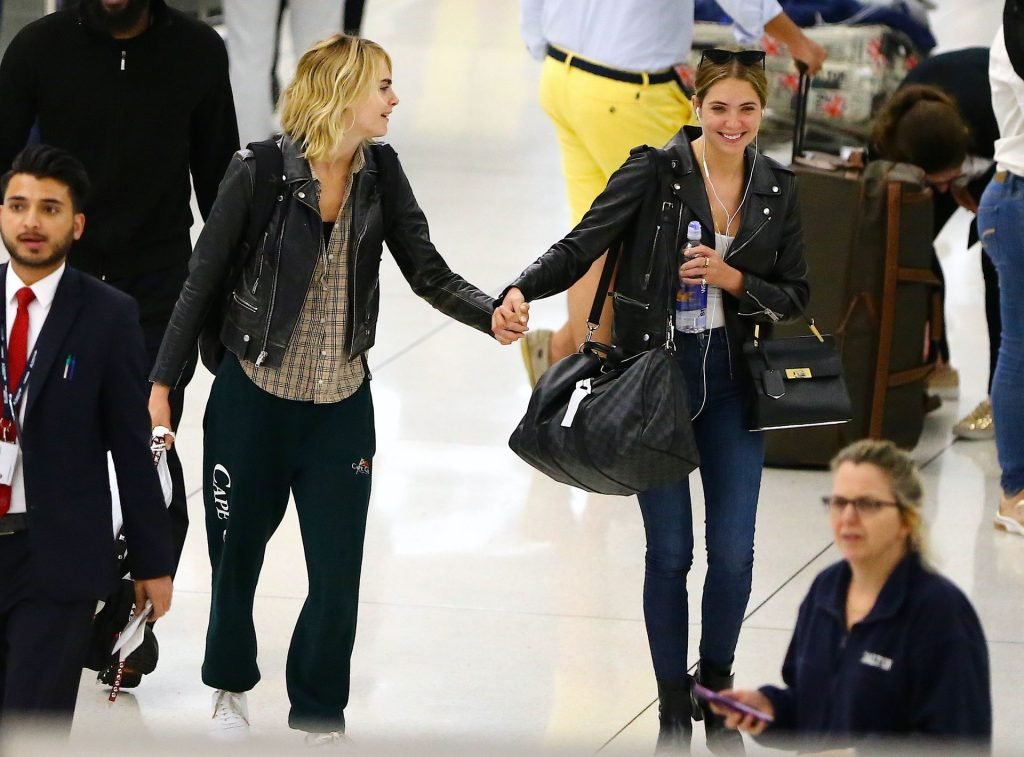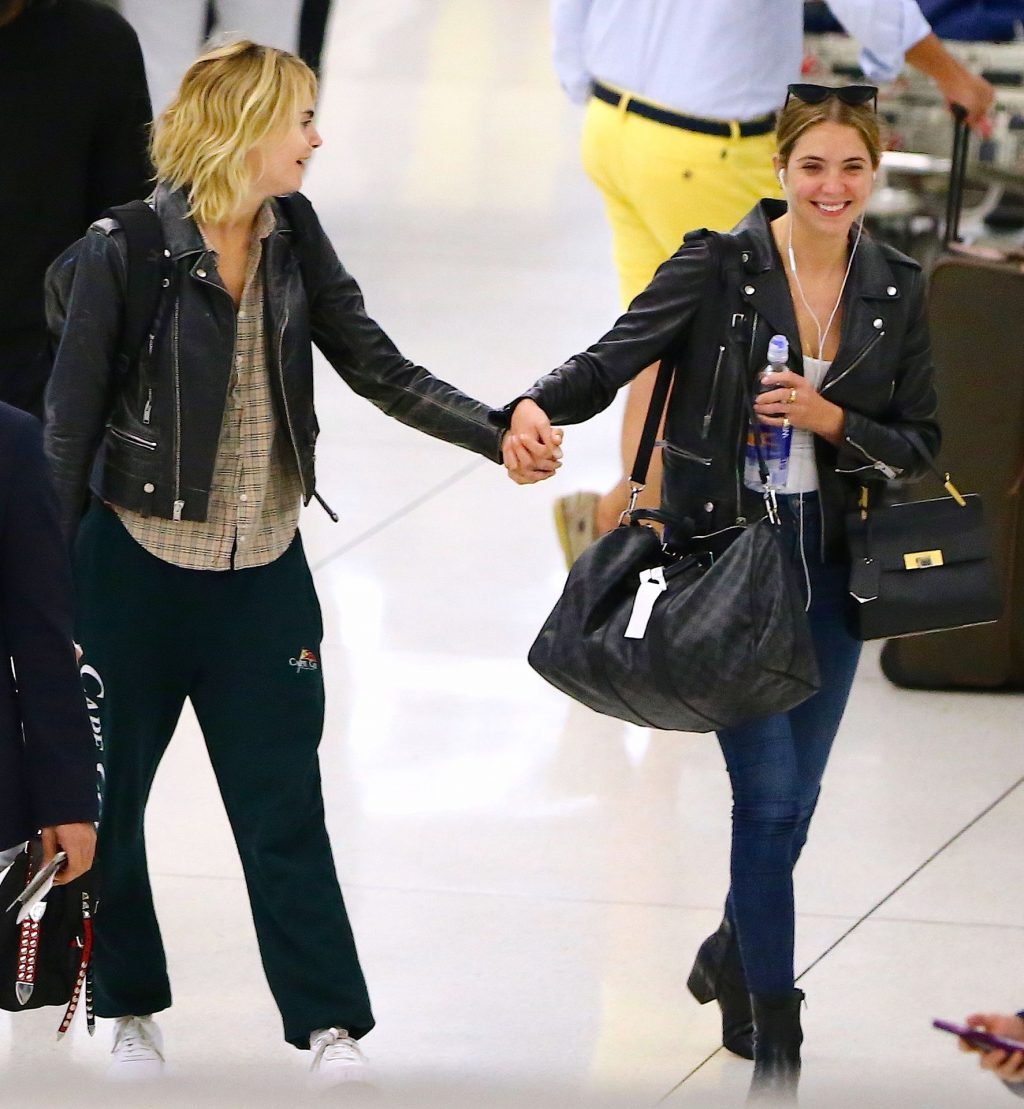Посмотрите новые папарацци фотографии знаменитой лесбийской пары. Кара Делевинь и Эшли Бенсон были замечены в аэропорту JFK в Нью-Йорке, целующимися и обнимающимися в очереди на безопасность, 18.06.2019.