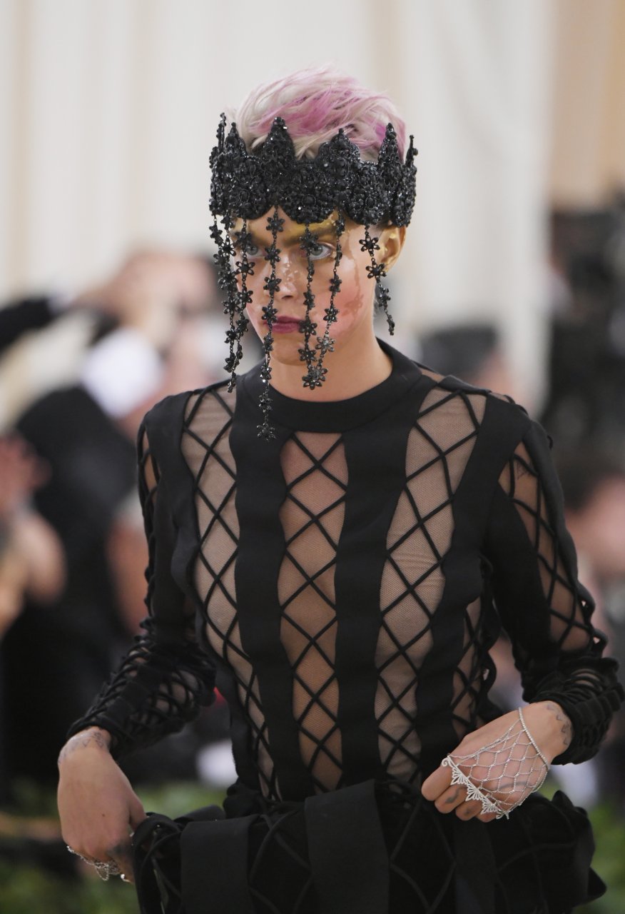 ‘Чародейка’ Кара Делевинь посещает гала-вечер MET Costume Institute в Нью-Йорке, 07.05.2018. Кара Делевинь — 25-летняя британская модель и актриса.