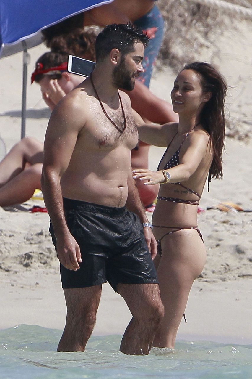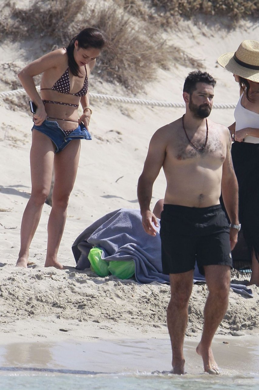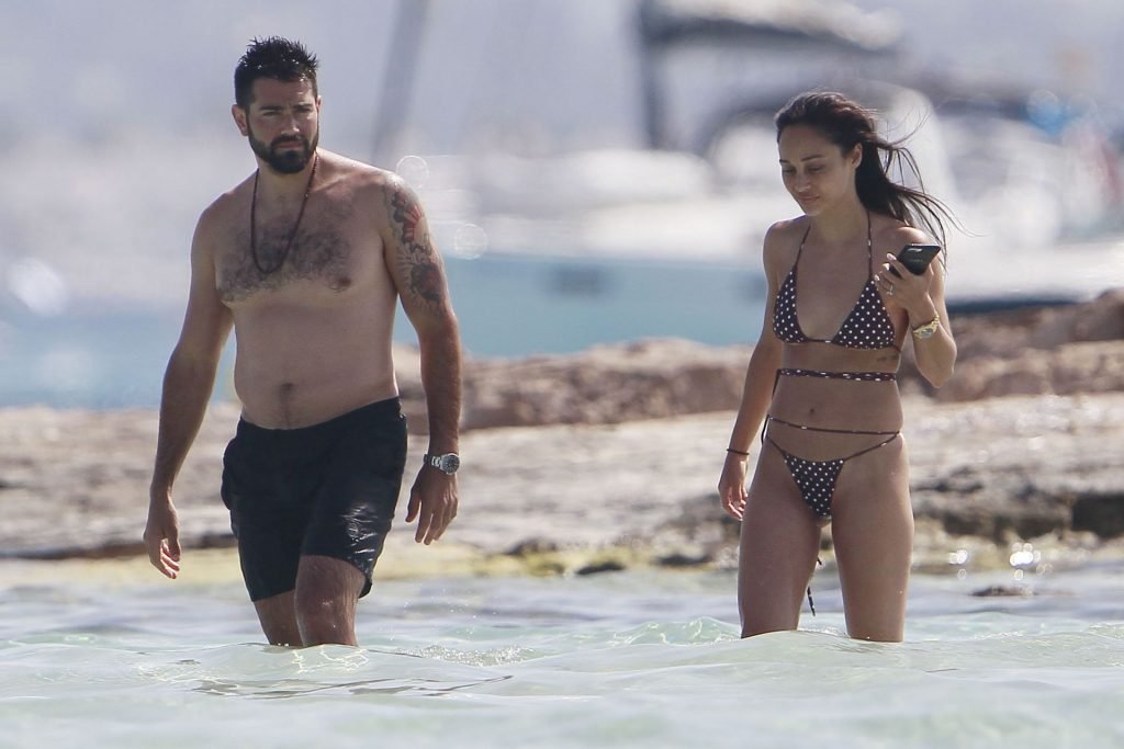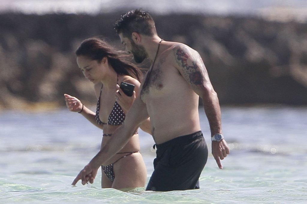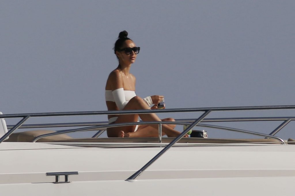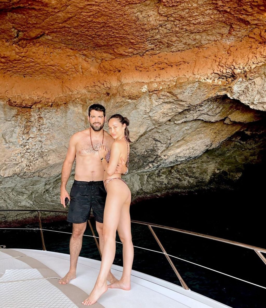 Актриса кино Кара Сантана и Джесси Меткалф вместе занимаются паддлбордингом в конце долгого и расслабленного дня на пляже в Форментере, Испания, 21.07.2019.