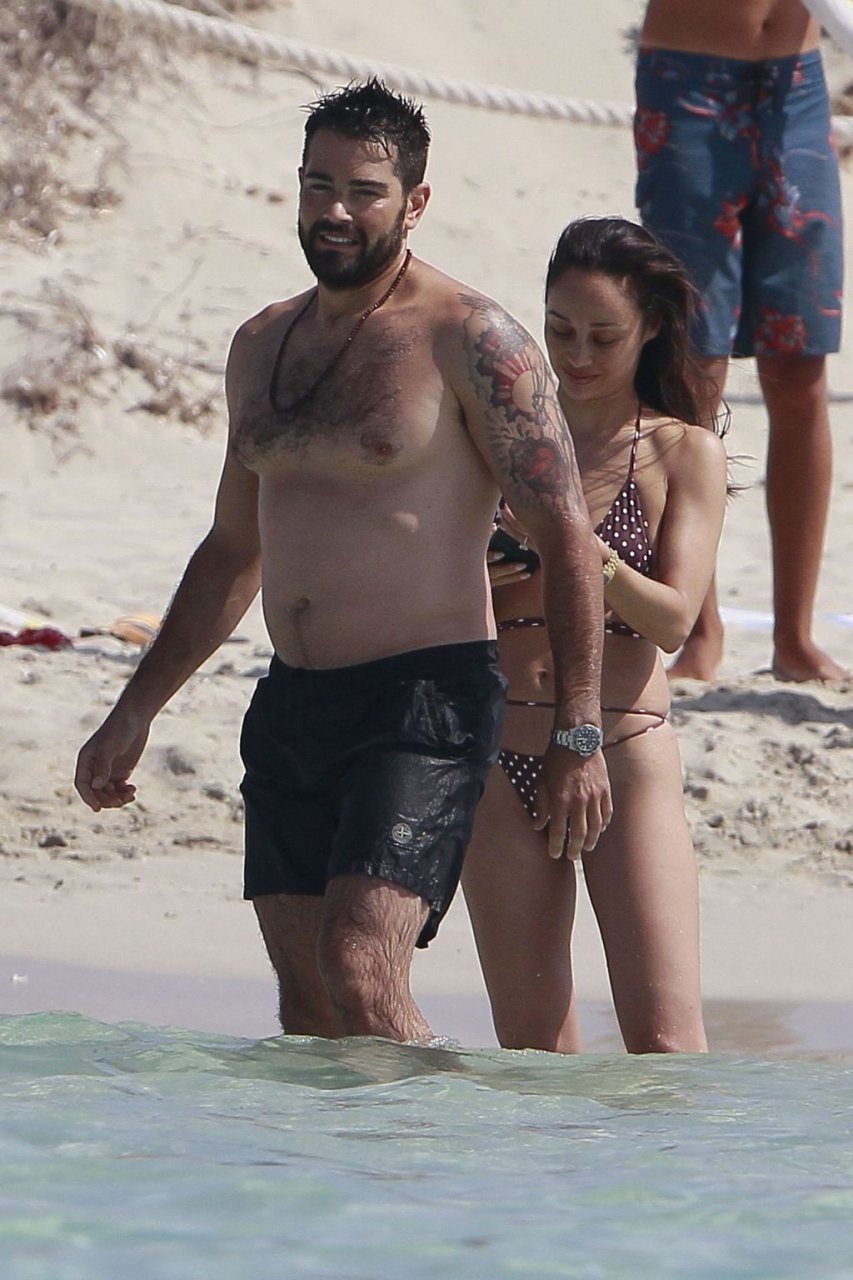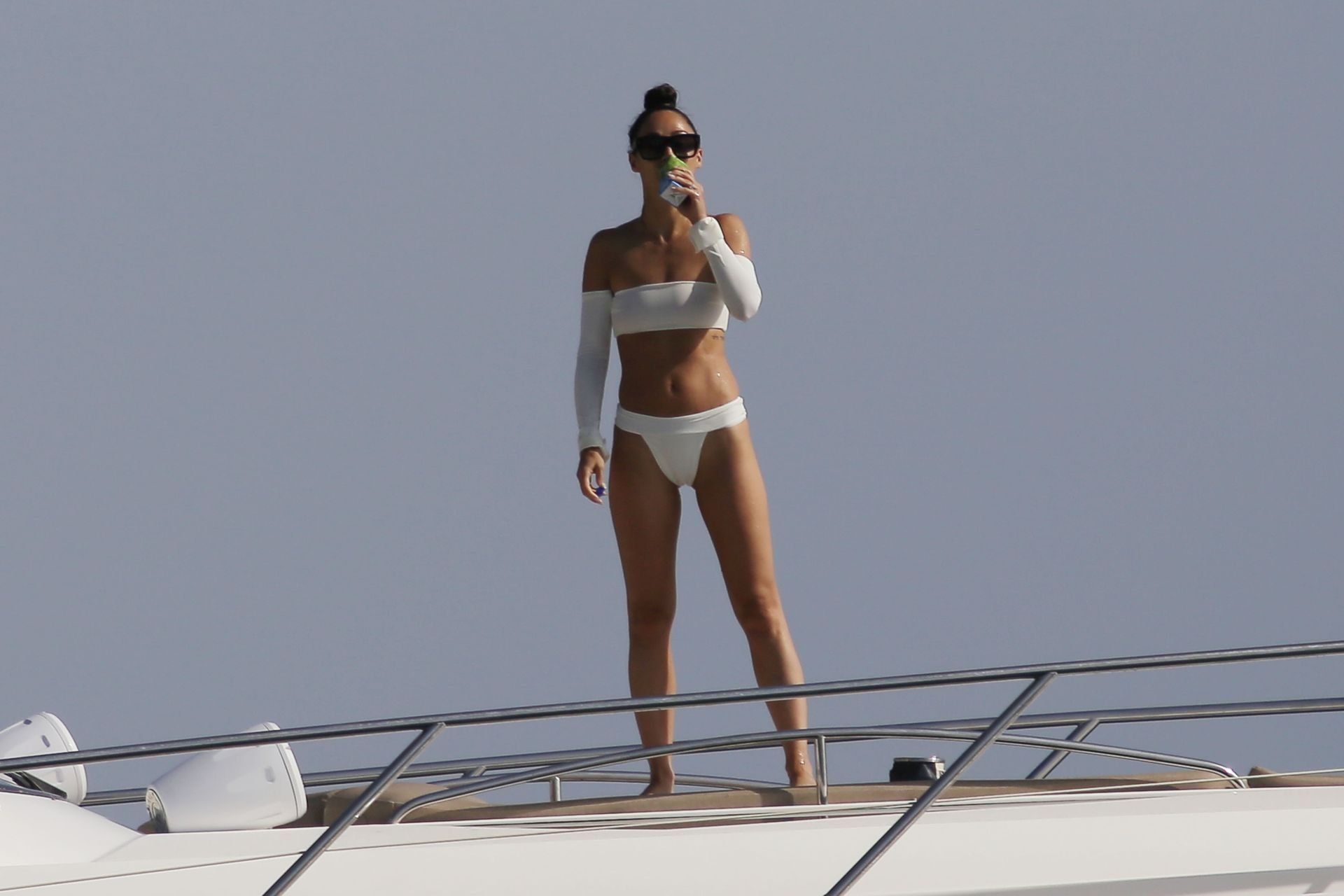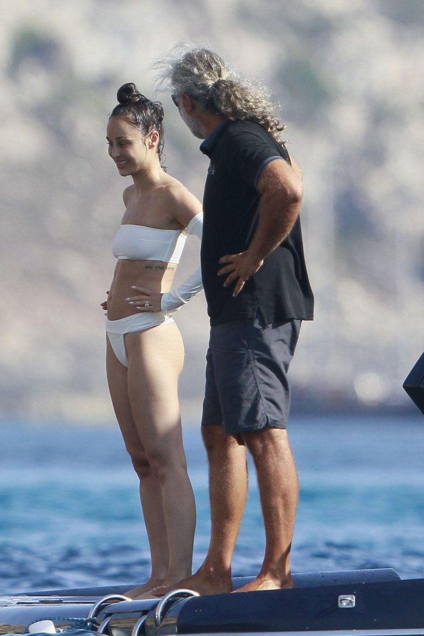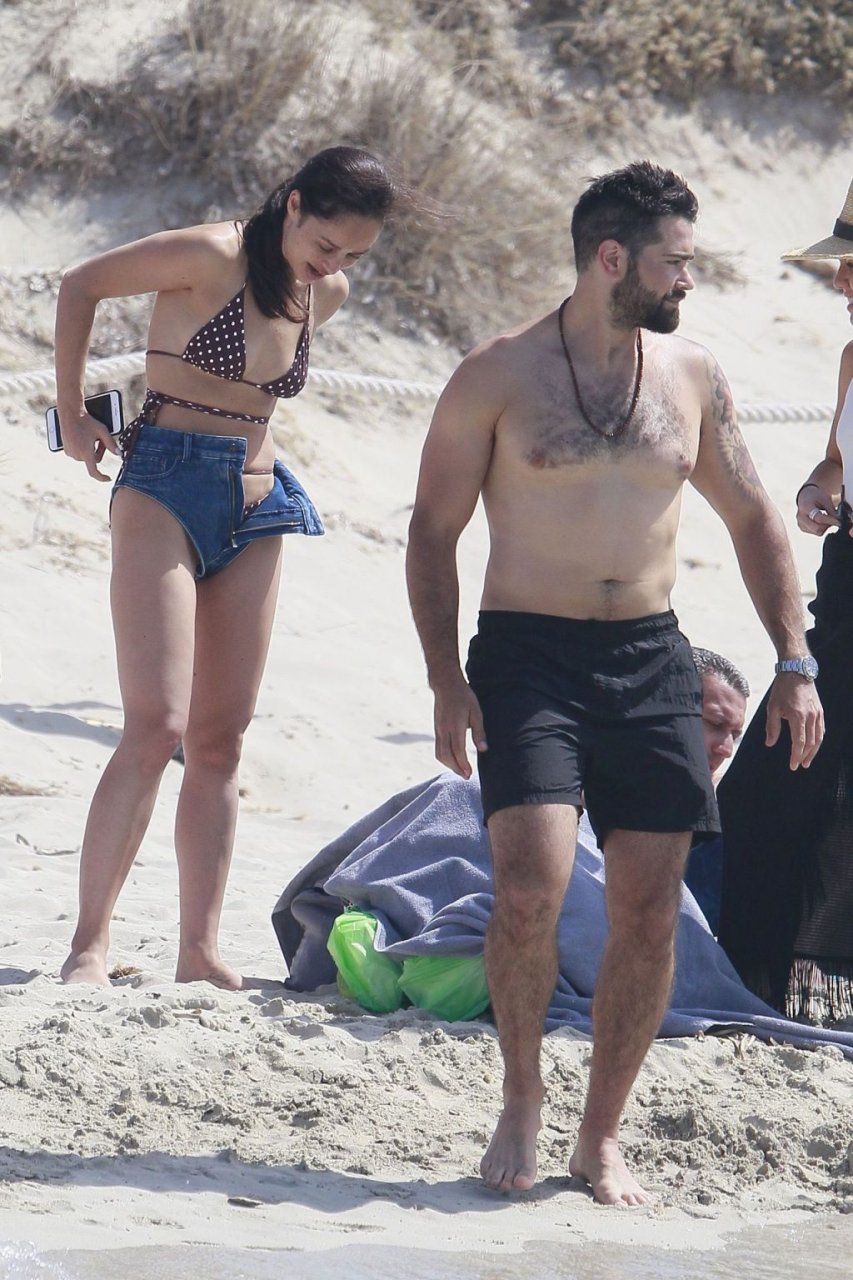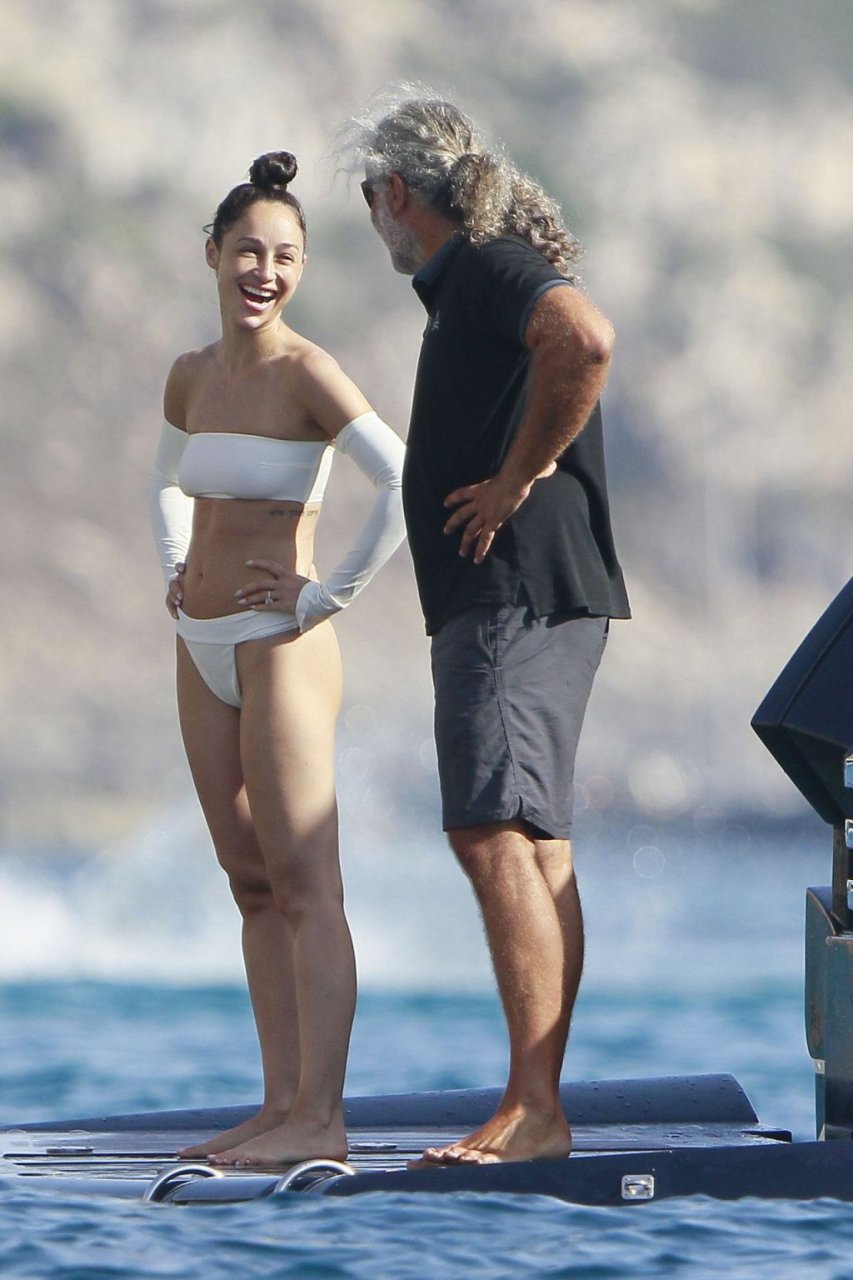 Актриса кино Кара Сантана и Джесси Меткалф вместе занимаются паддлбордингом в конце долгого и расслабленного дня на пляже в Форментере, Испания, 21.07.2019.
