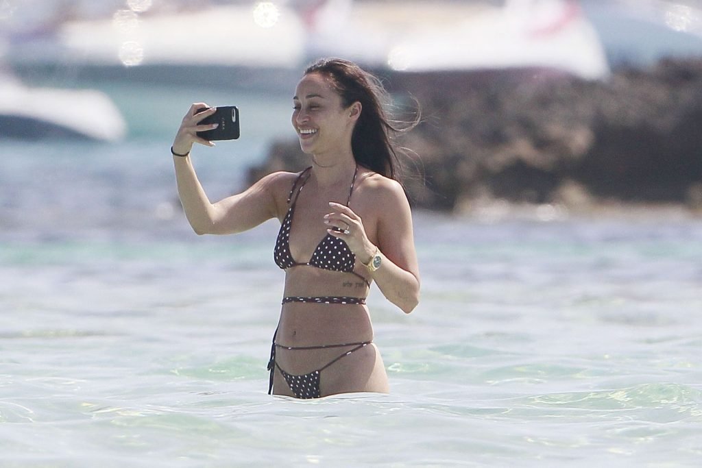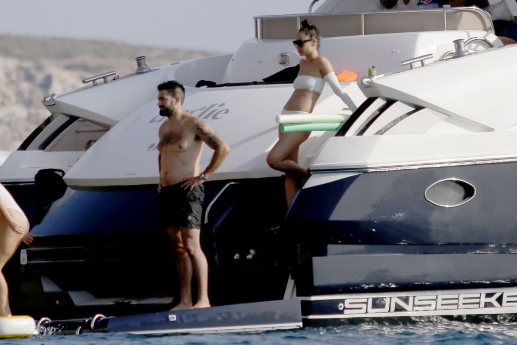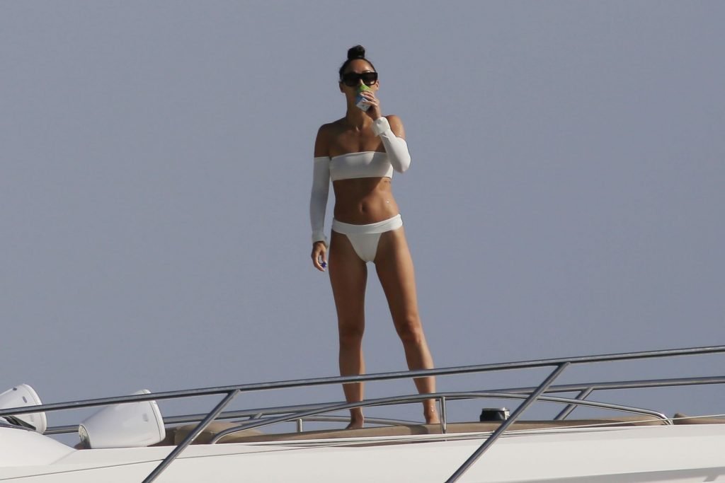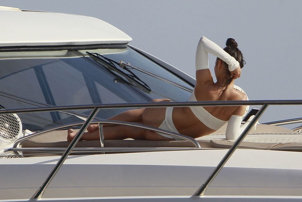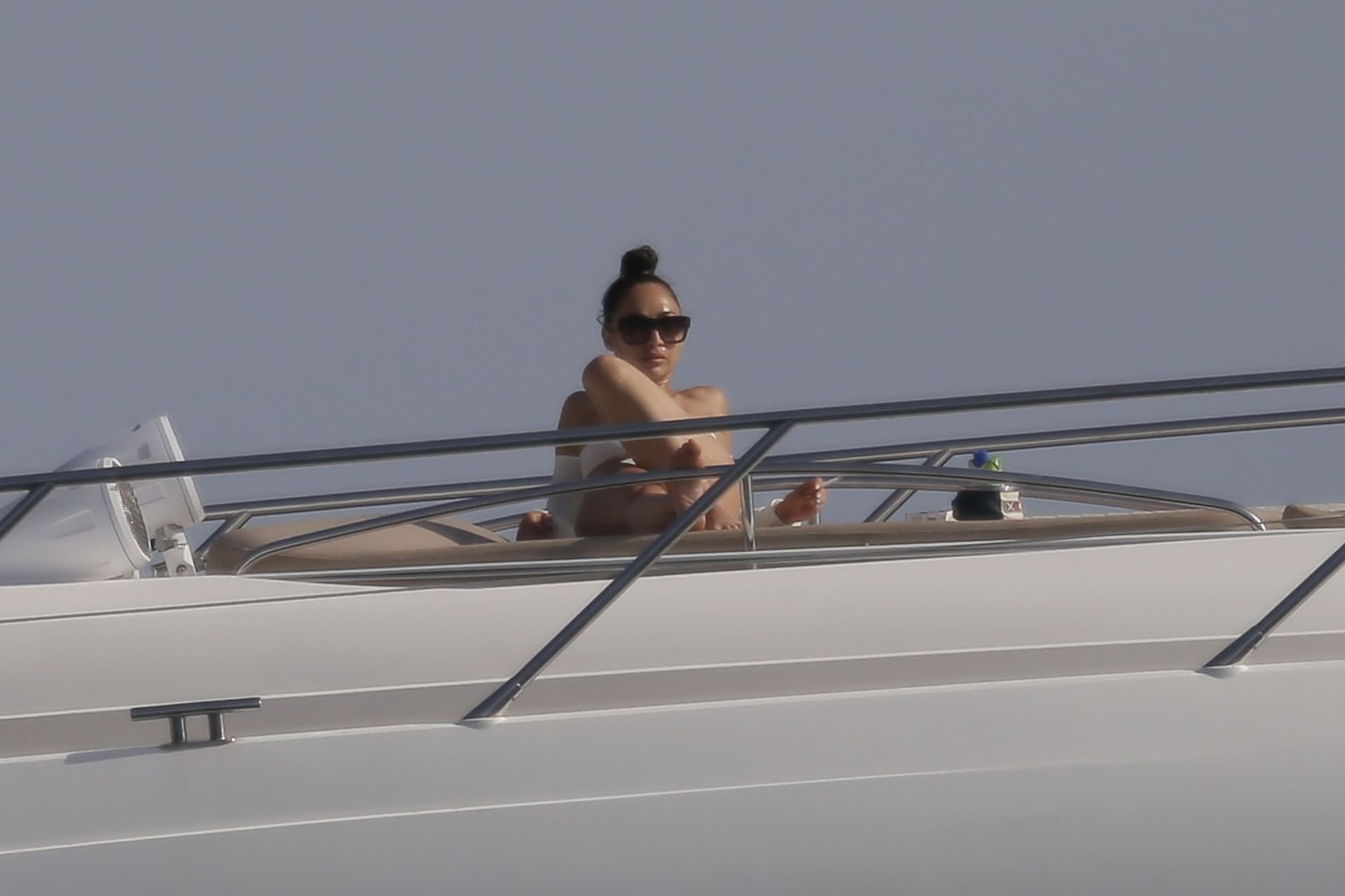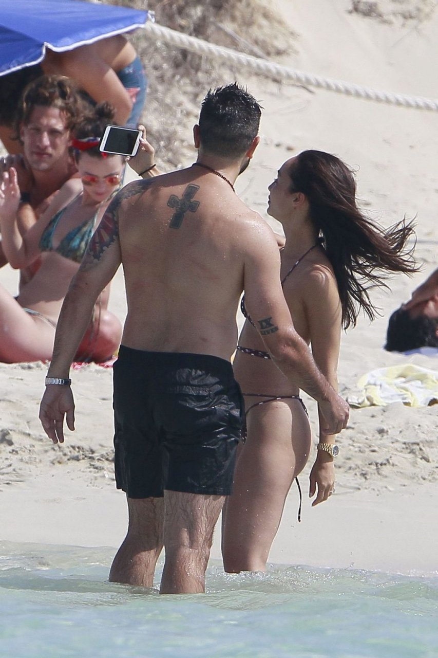 Актриса кино Кара Сантана и Джесси Меткалф вместе занимаются паддлбордингом в конце долгого и расслабленного дня на пляже в Форментере, Испания, 21.07.2019.