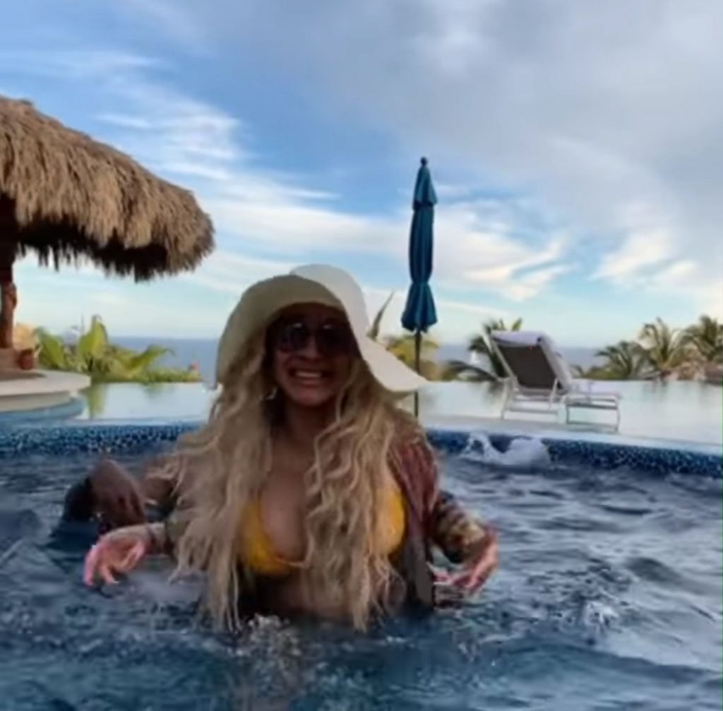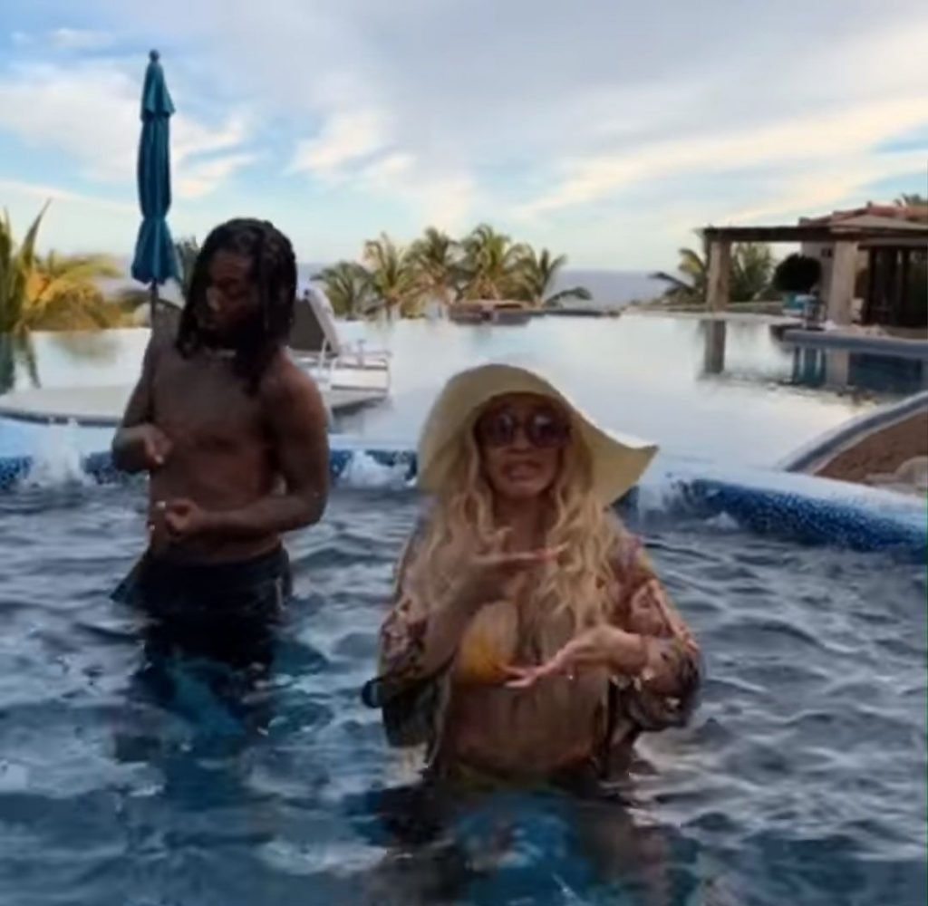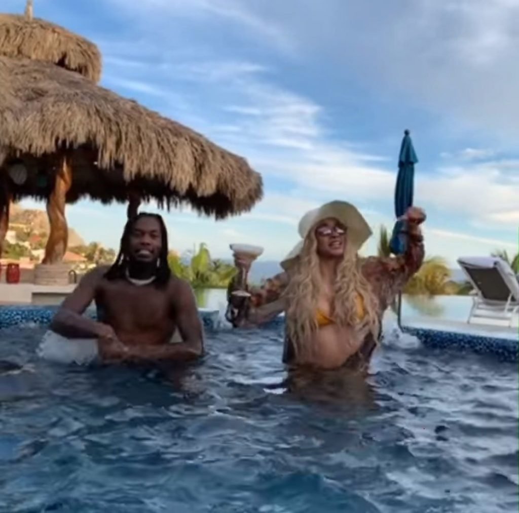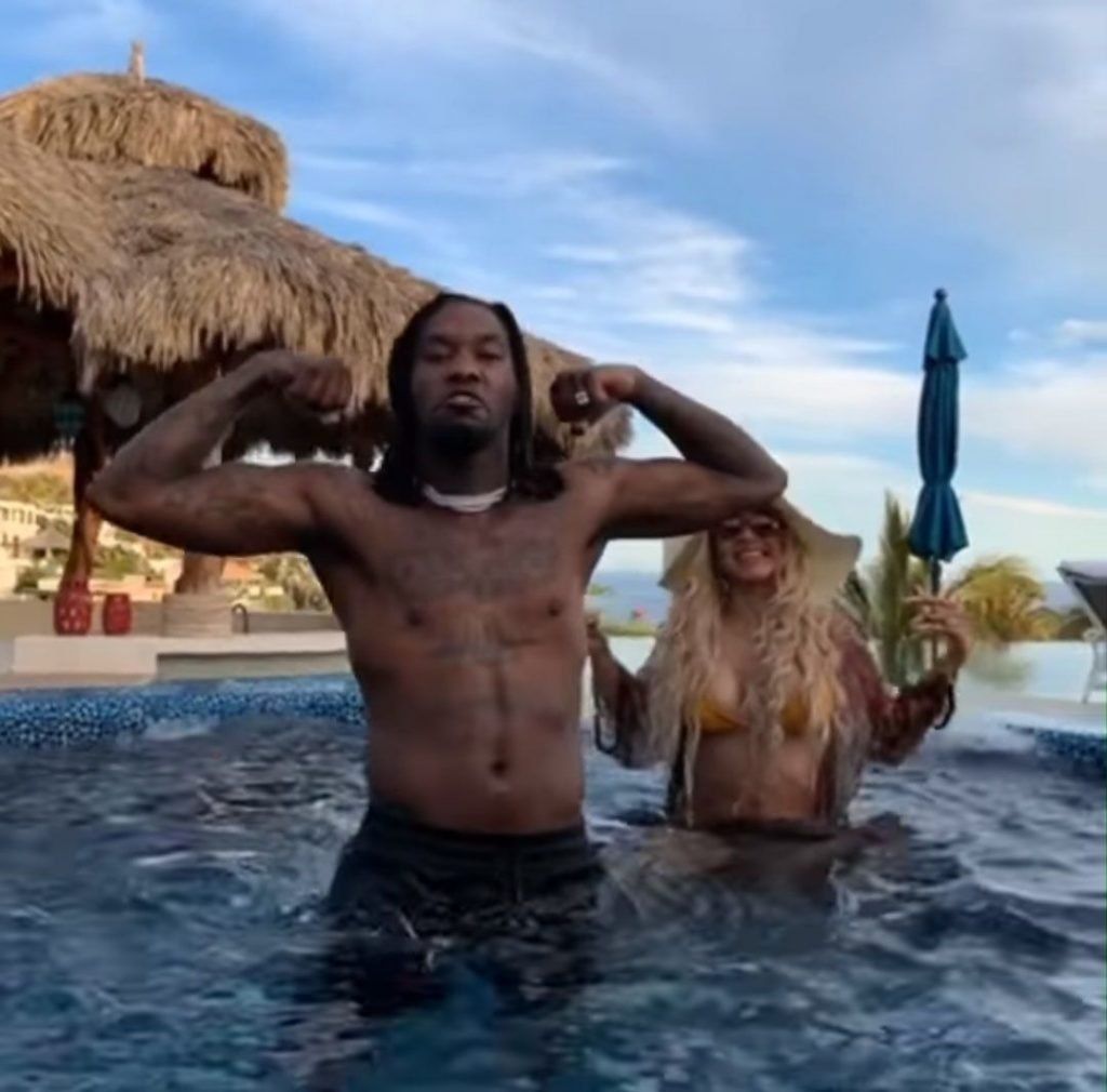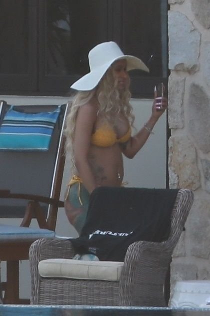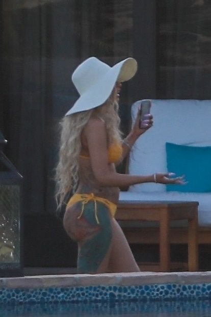 Карди Би демонстрирует свои изгибы в жёлтом бикини с тонкими бретельками, продолжая свой отдых в Кабо-Сан-Лукас с её то возобновляющимся, то прерывающимся партнёром Offset, 03/05/2019. Певица выглядела так, будто разговаривала по FaceTime с кем-то на своём мобильном телефоне, возможно с Offset, который должен выступить с Migos в рамках JusCollege’s Cabo Spring Break 2019.