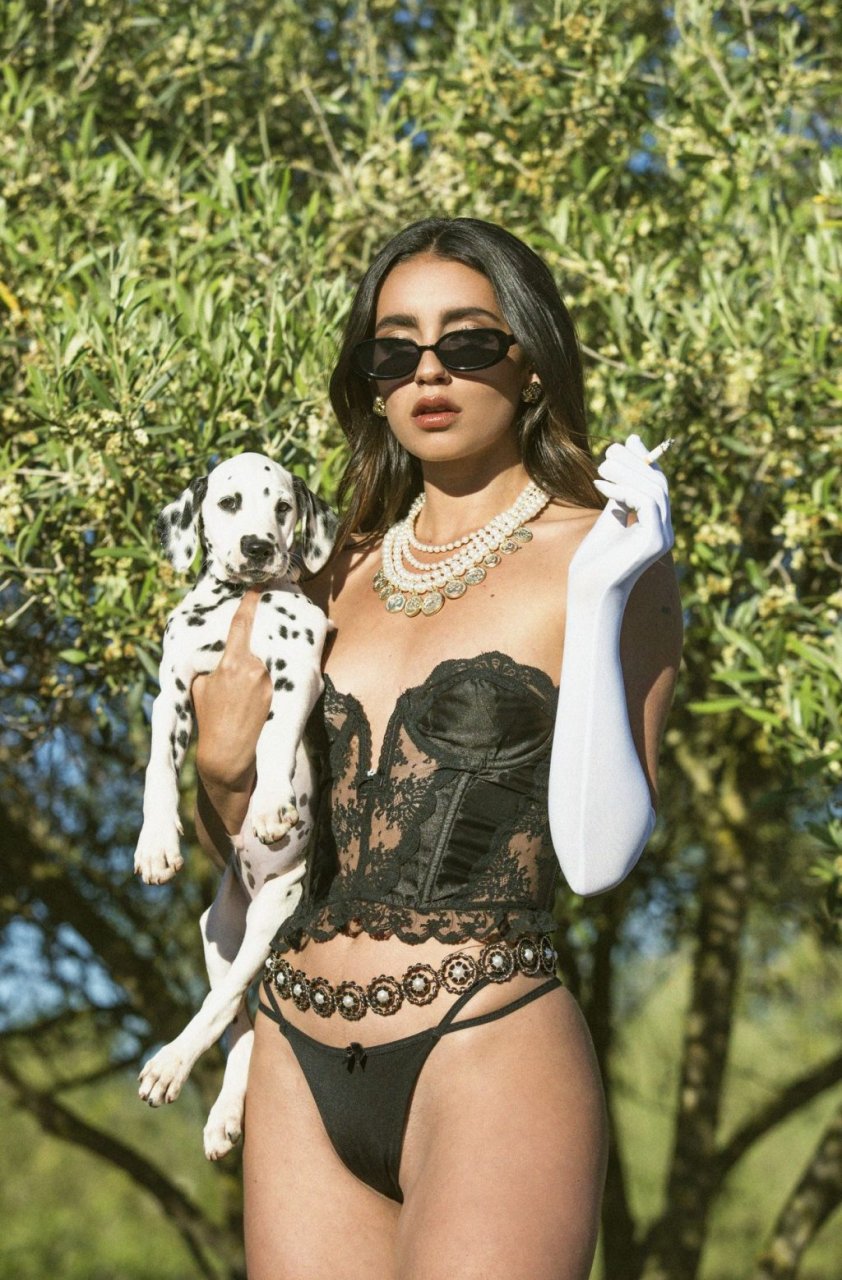 Испанская модель Карла Гетта (22) позирует топлесс с далматинскими щенками в новой фотосессии Делфин Бруннер (2019).