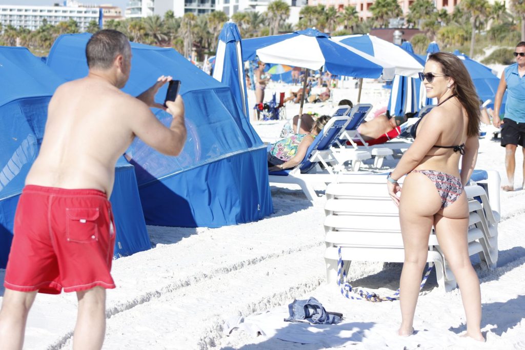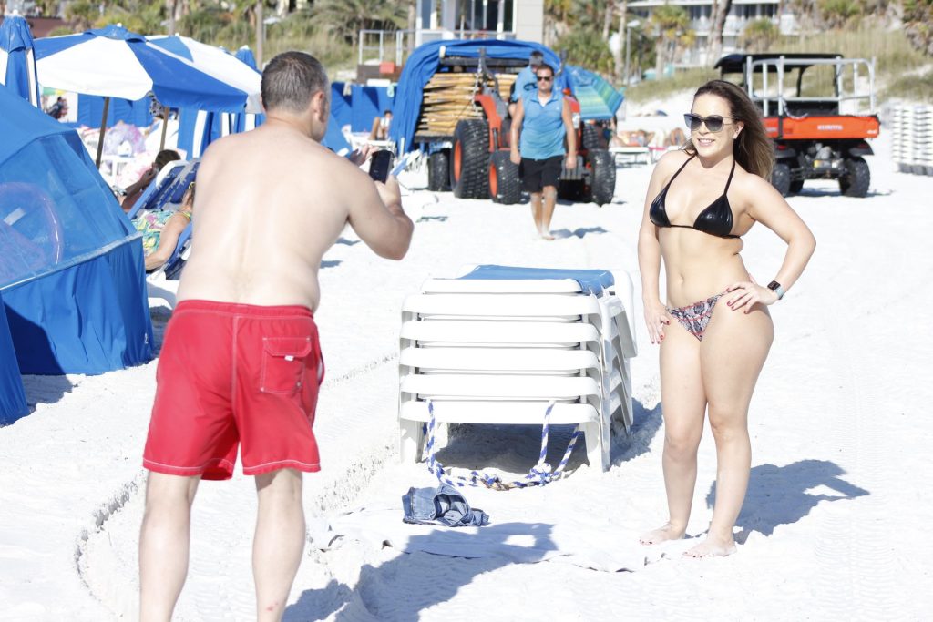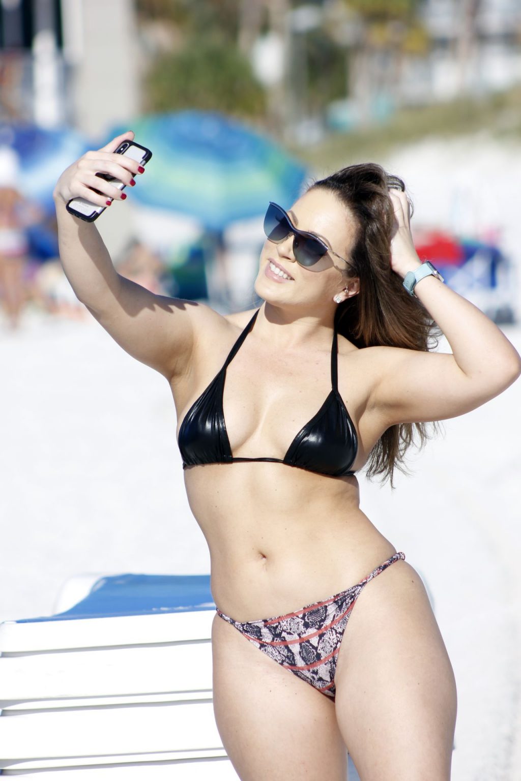 Звезда взрослого кино, обладательница наград Кармен Валентина, привлекала взгляды, проводя день на пляже в своем крошечном двухсекционном бикини, 31.10.2019. Спортивная и соблазнительная звезда была замечена несколькими фанатами, которые хотели сделать с ней фотографии.