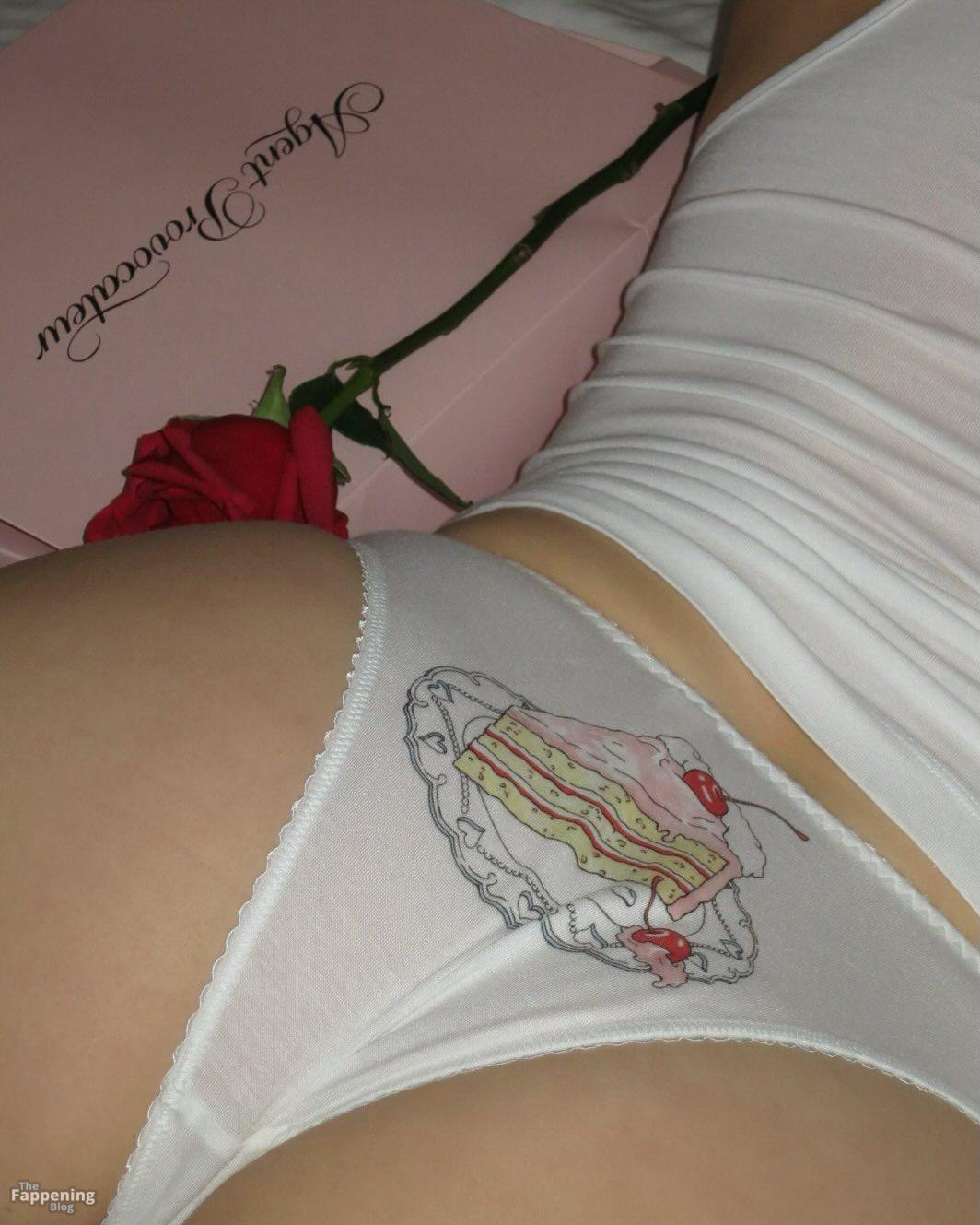 Грудь и ягодицы модели Каролин Вриланд выставлены напоказ в этом прозрачном белом нижнем белье.