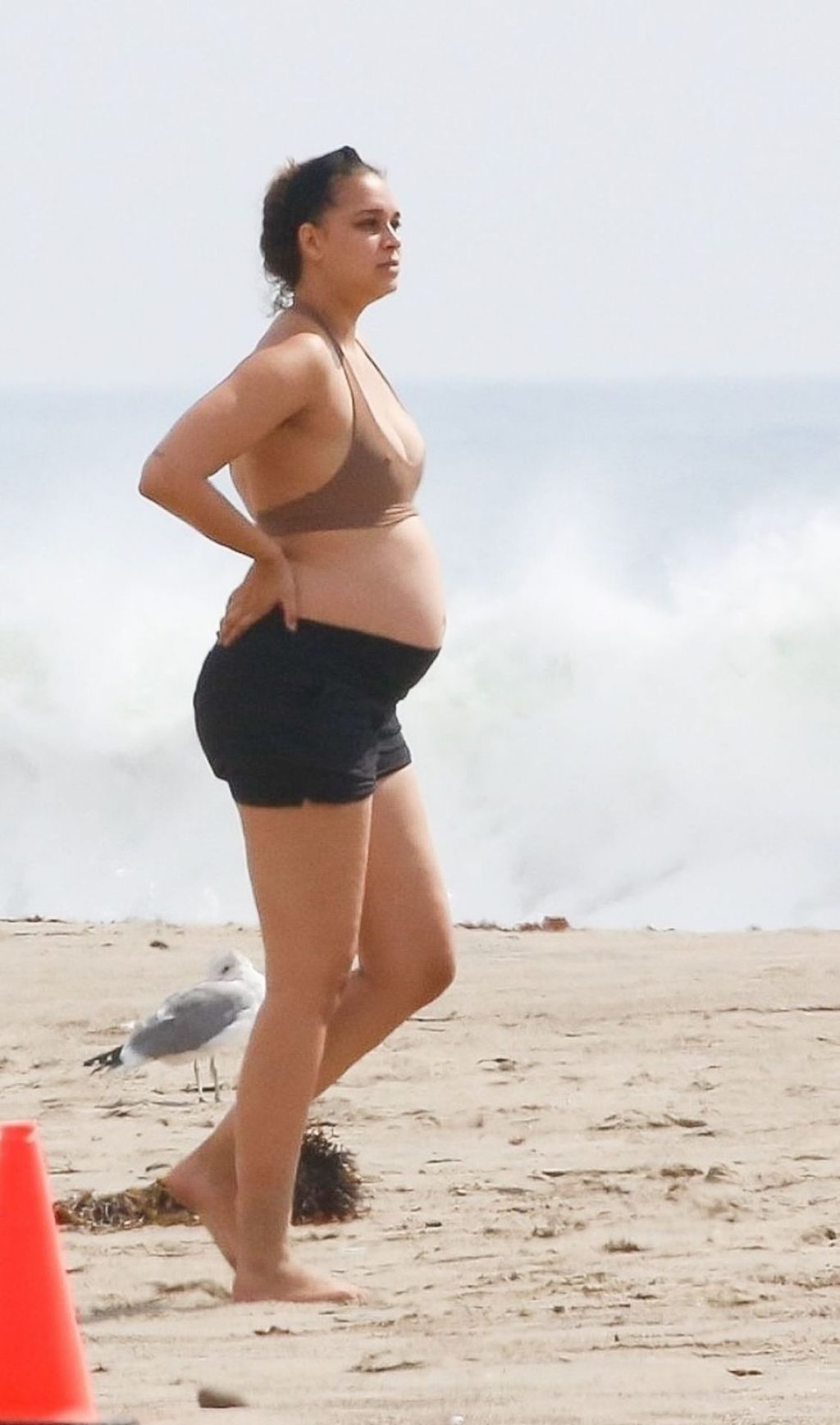 Беременная Эйприл Лав Гири демонстрирует растущий животик, наслаждаясь днем на пляже с мужем Робином Тиком в Малибу, 05.10.2020.