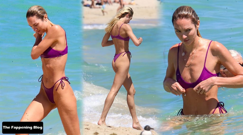 Кэндис Свейнпол показывает свою подтянутую фигуру в едва заметном фиолетовом бикини во время отдыха в Майами с родителями в пятницу.