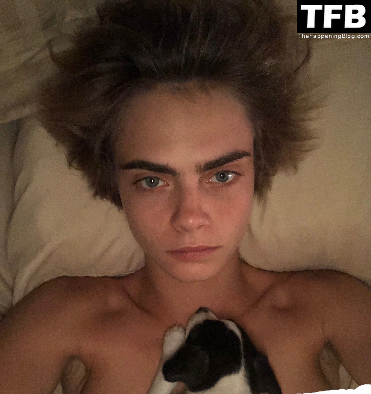 Посмотрите новое возможно утекшее селфи Кары Делевинь. Она дразнит парней, лежащих в постели с щенком.