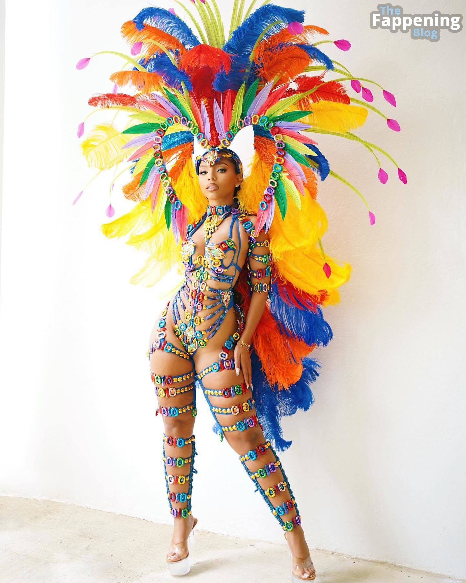 Певица и автор песен Хлоя Бэйли поражает на фестивале Crop Over в Барбадосе, блистая в откровенном карнавальном костюме с огромными перьевыми крыльями.