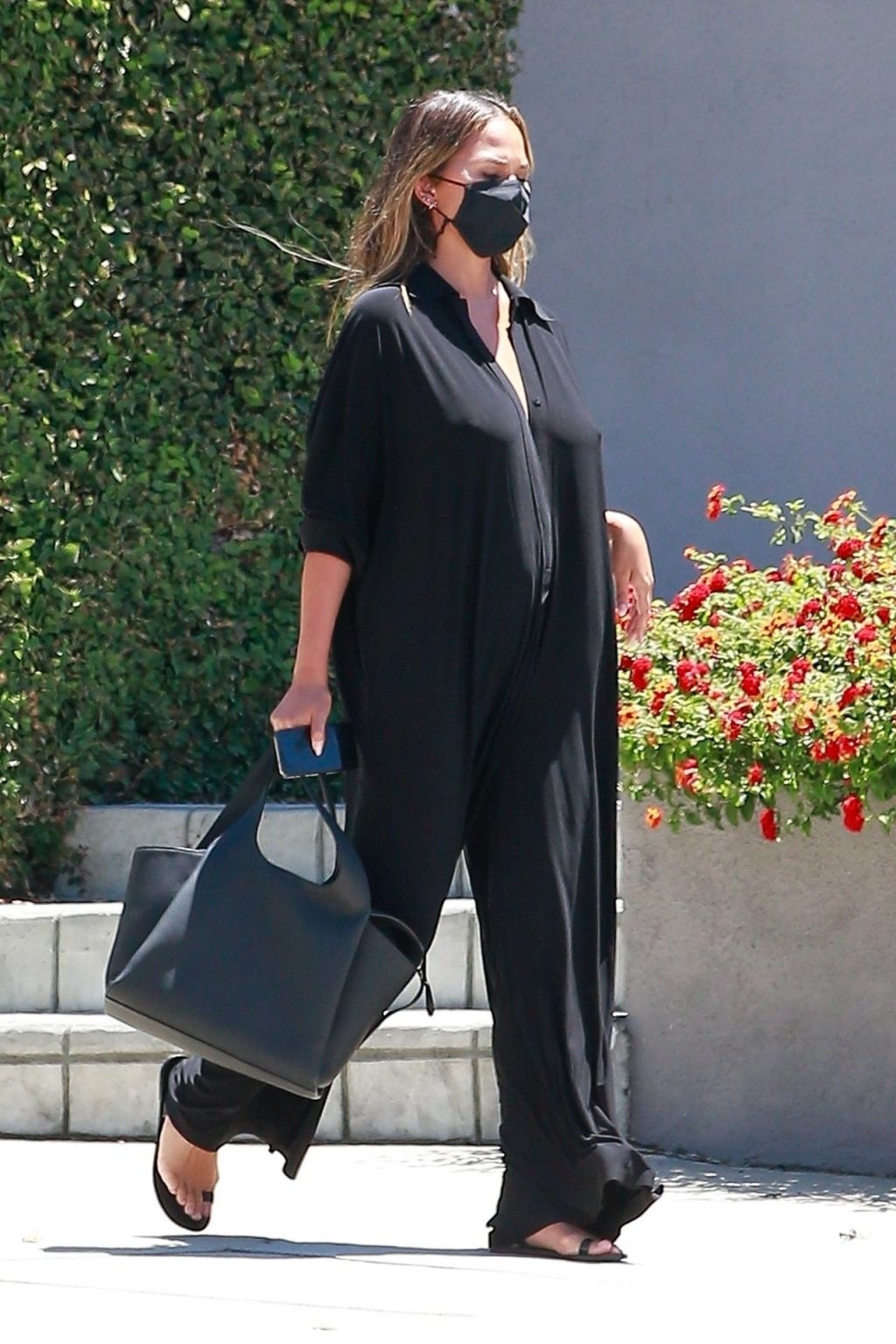 Крисси Тейген выглядит непринужденно в черном комбинезоне, выполняя несколько дел перед выходными в Лос-Анджелесе, 31.07.2020.