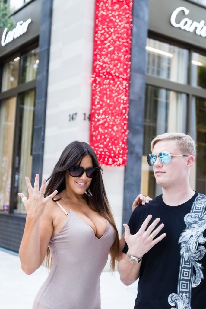 Звезда итальянского реалити-шоу Secret Story Клаудия Романи и её парень Крис Джонс были замечены в дизайнерском районе Майами, покупая совпадающие кольца Cartier, 16.11.2017. Клаудия была в прозрачном платье, так что можно было увидеть стринги.