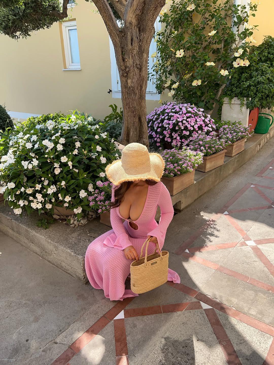Австралийская звезда TikTok Элла Грейс Серветто запечатлена в розовом платье, демонстрируя декольте.
