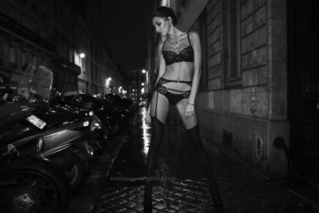 Длинноногие итальянская красотка Эрика Альбонетти позирует в нижнем белье на улицах Парижа в фотосессии Питера Коулсона (2017).