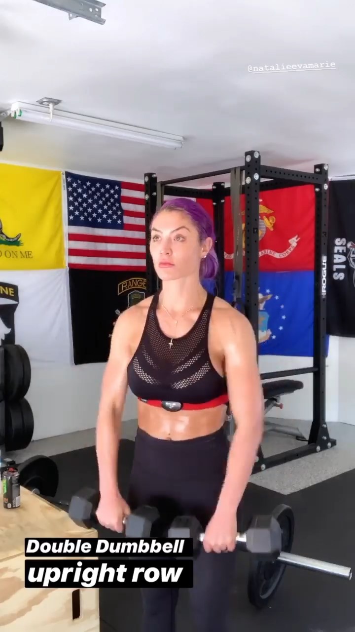 Натали Ева Мари демонстрирует свои слегка обнажённые груди в спортзале – Instagram (2020).