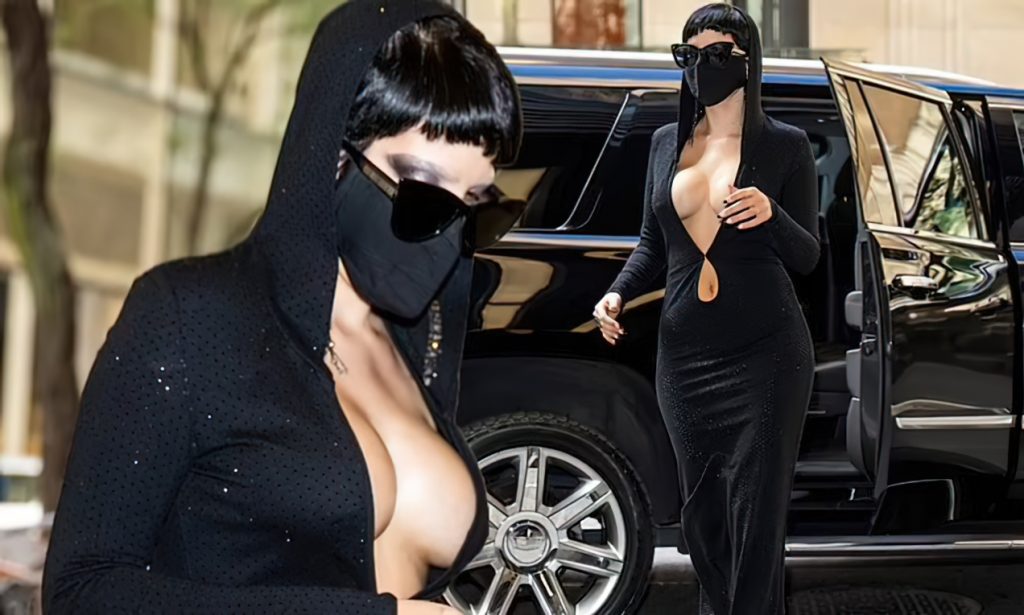 Певица Холзи выглядит модно, выходя на улицы Нью-Йорка, 07.10.2021. Она запечатлена в черном платье с глубоким вырезом после выхода ее фильма.