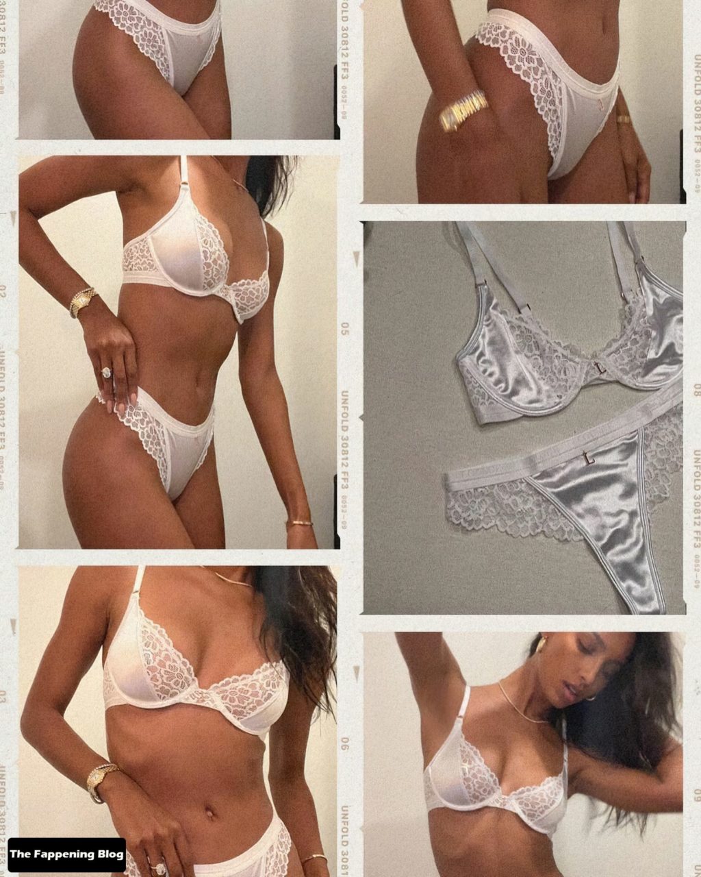 Jasmine Tookes демонстрирует свою прекрасную фигуру в белом нижнем белье.