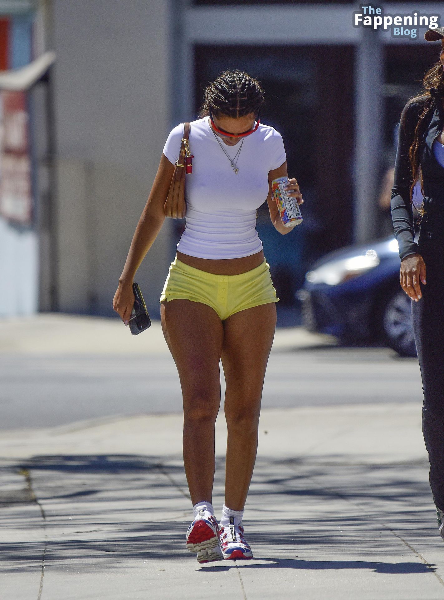 Новая модель и девушка Канье Уэста Джулиана Налу демонстрирует длинные ноги, когда ее заметили за шопингом с друзьями в The Grove в Лос-Анджелесе, 14.10.2022.