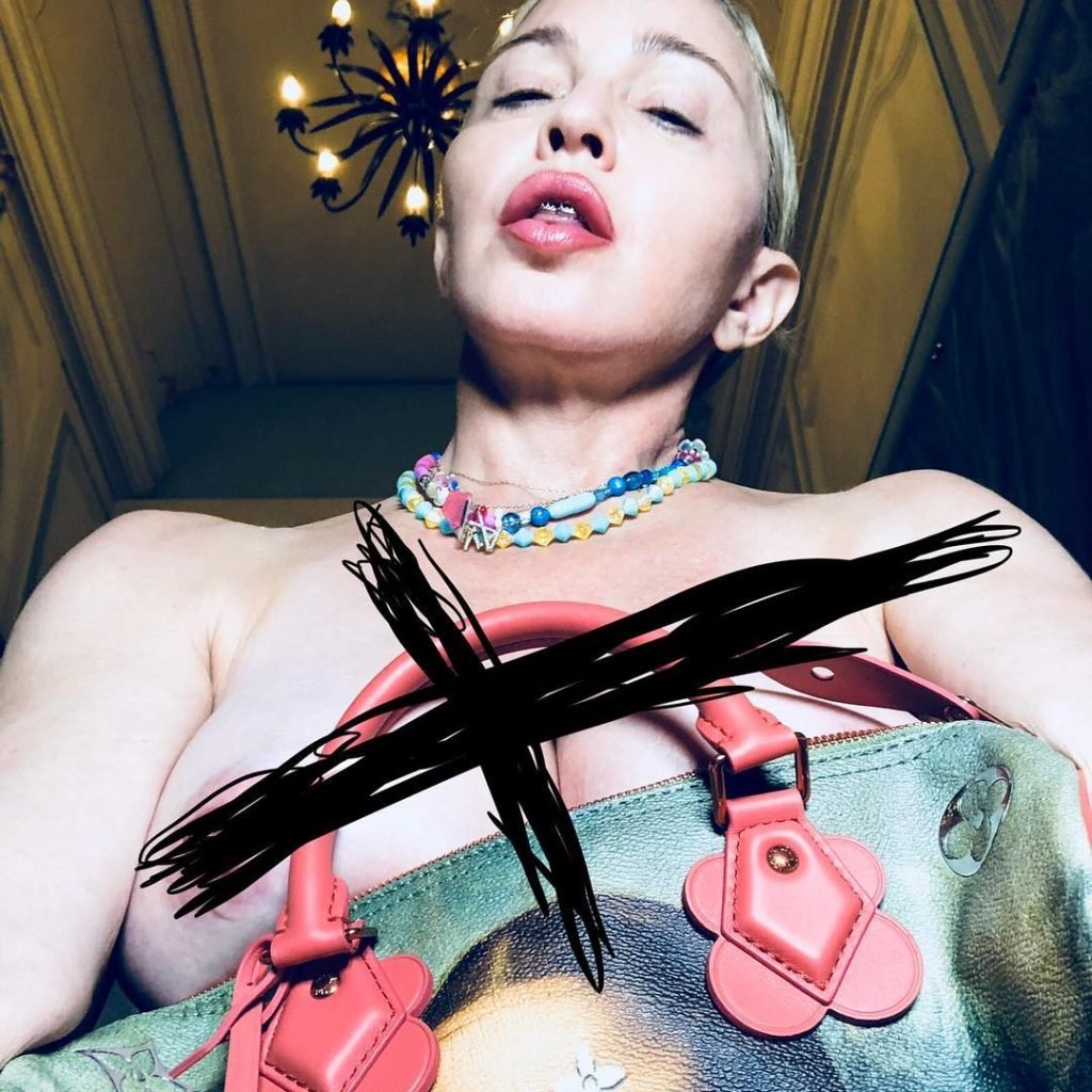Мадонна опубликовала топлес (цензурированное) селфи в Instagram, 26.01.2018. Мадонна Чикконе — американская певица, автор песен, актриса, бизнесвумен. Возраст: 59.