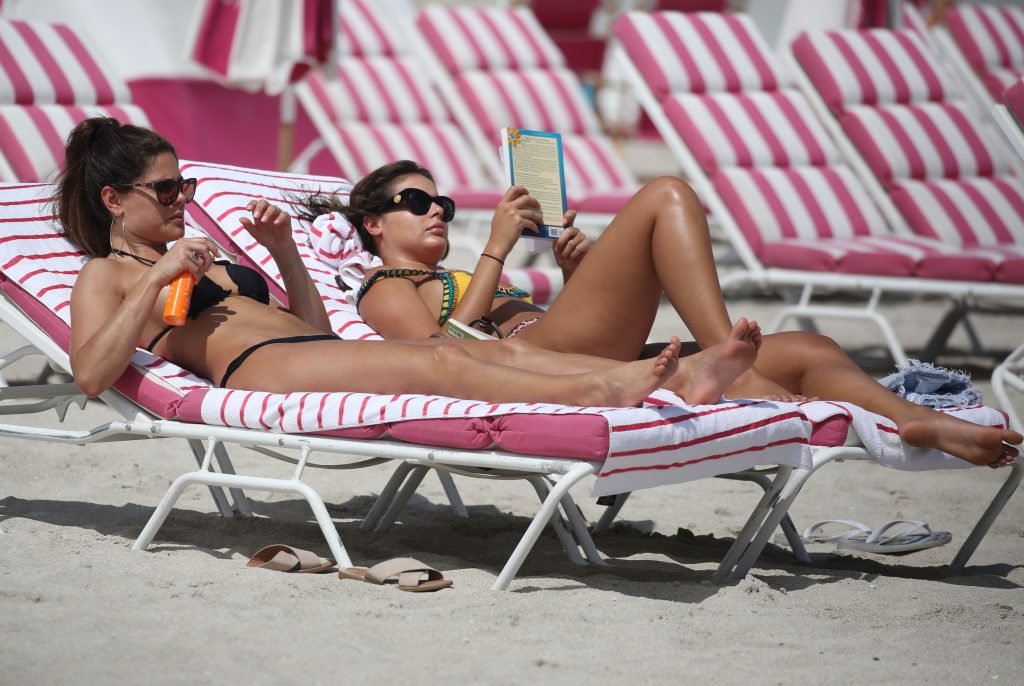 Модель Наталия Альберто и подруга наслаждаются жарким днем на пляже в Майами, 10/06/2018. Девушки продемонстрировали свои потрясающие тела во время загара.