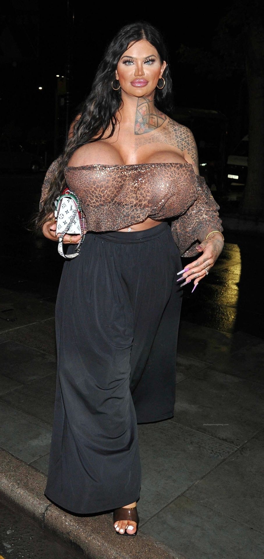 Британская модель Ники Валентина Роуз, у которой самые огромные груди в Великобритании и которая потратила более 55 тысяч долларов, замечена на ночной прогулке в Манчестере, 08/05/2021.