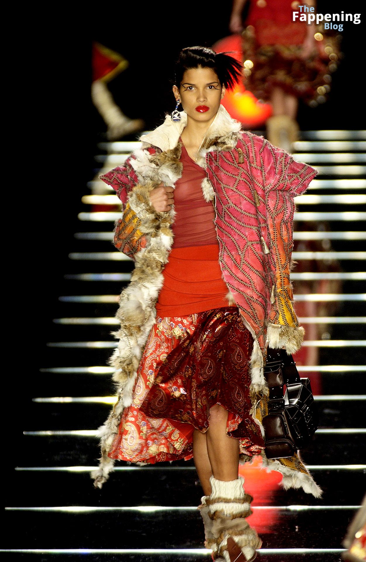 Raica Oliveira демонстрирует свою обнаженную грудь во время показа мод Christian Dior осень/зима 2002.