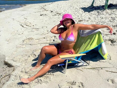 Пакистанско-российская модель Сохни Ахмед запечатлена в синем бикини с треугольным топом на пляже Майами-Бич, 06/05/2021.