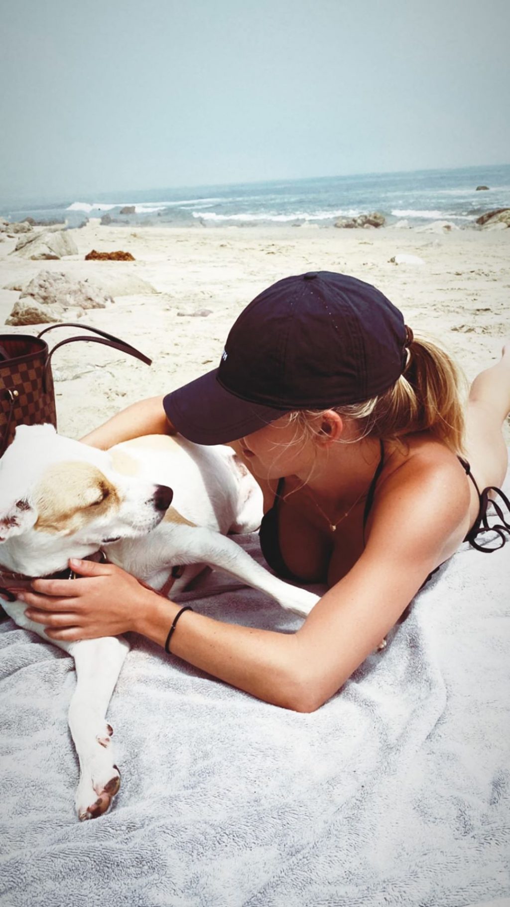 Актриса Сидни Суини демонстрирует своё сексуальное тело, большую попу и груди, наслаждаясь днём с собакой на пляже – Instagram, 26.04.2020.
