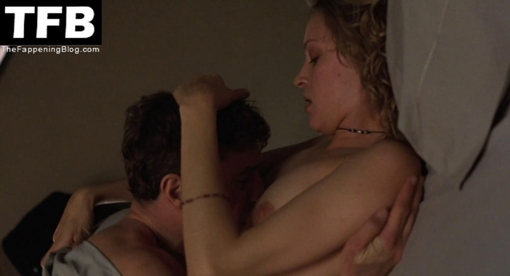 Молодая актриса стягивает ночнушку через голову, чтобы показать свои потрясающие груди, прежде чем её любовник укладывает её на спину в кровати. Она лежит на спине топлесс, пока парень целует её, а затем опускается, чтобы поцеловать её грудь.
