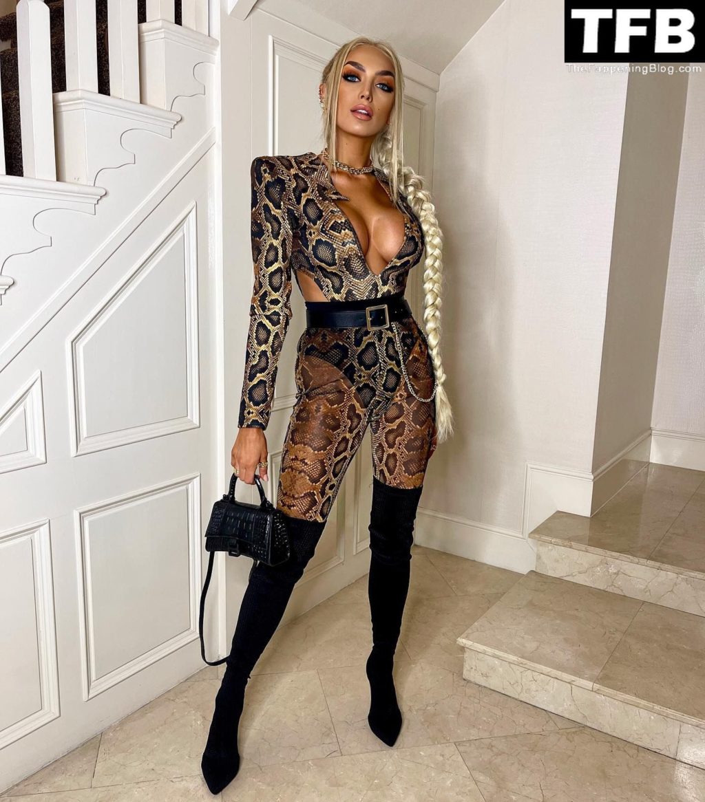 “Звезда шоу “Ex On The Beach” ZaraLena Jackson эффектно демонстрирует свою пышную грудь, направляясь в FireFly в Манчестере на девичник, 19.12.2021.