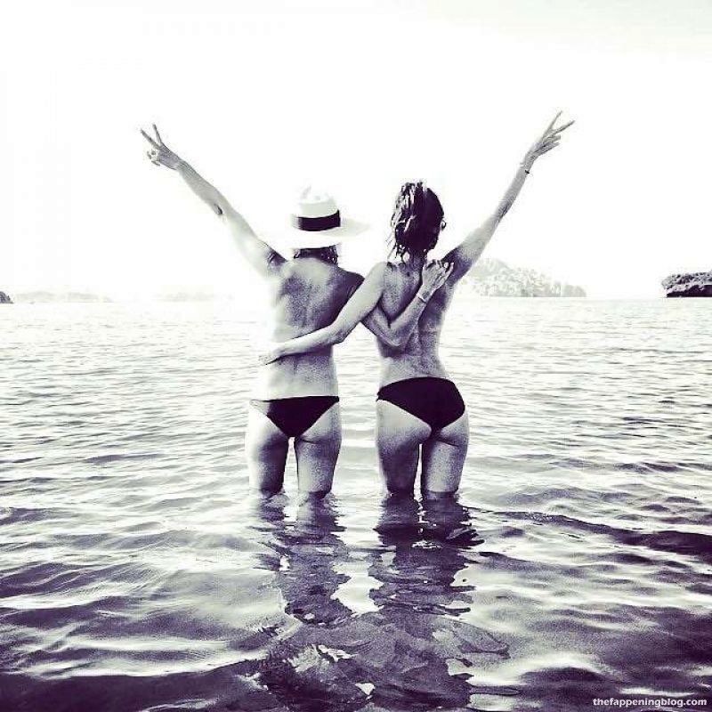 Посмотрите сексуальную коллекцию Кэтт Сэдлер, демонстрирующую её красивое декольте с маленькой грудью, подтянутую попку и просвечивающие волосы в зоне бикини на пляже.