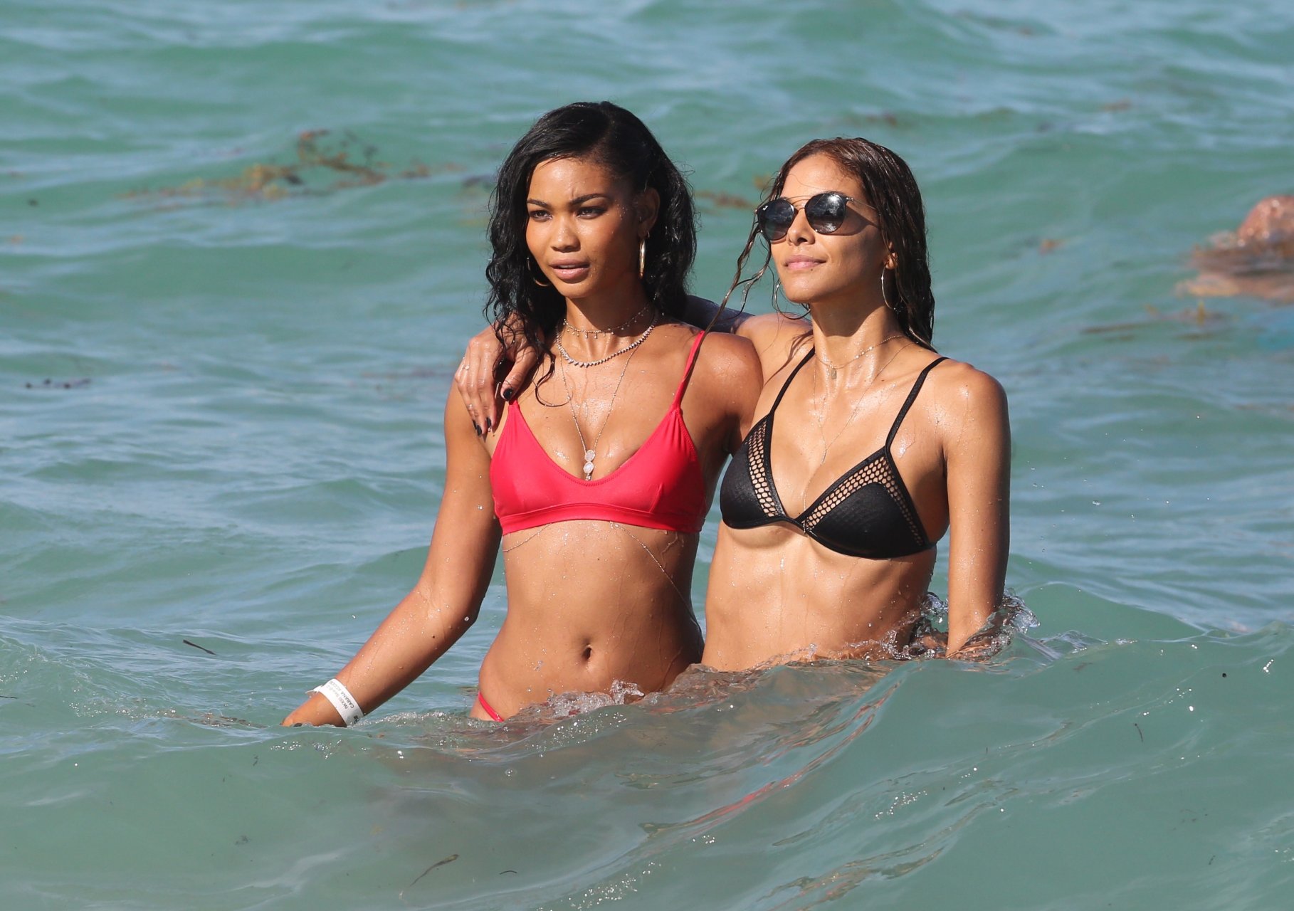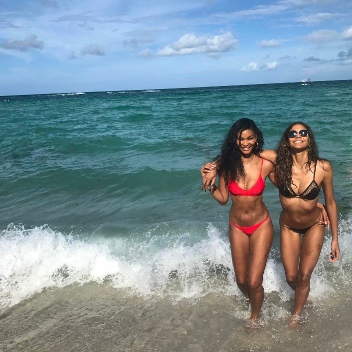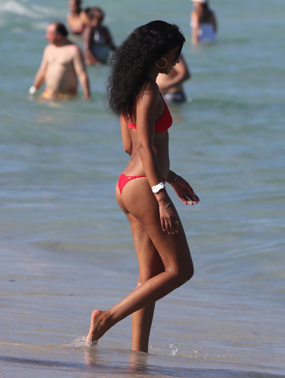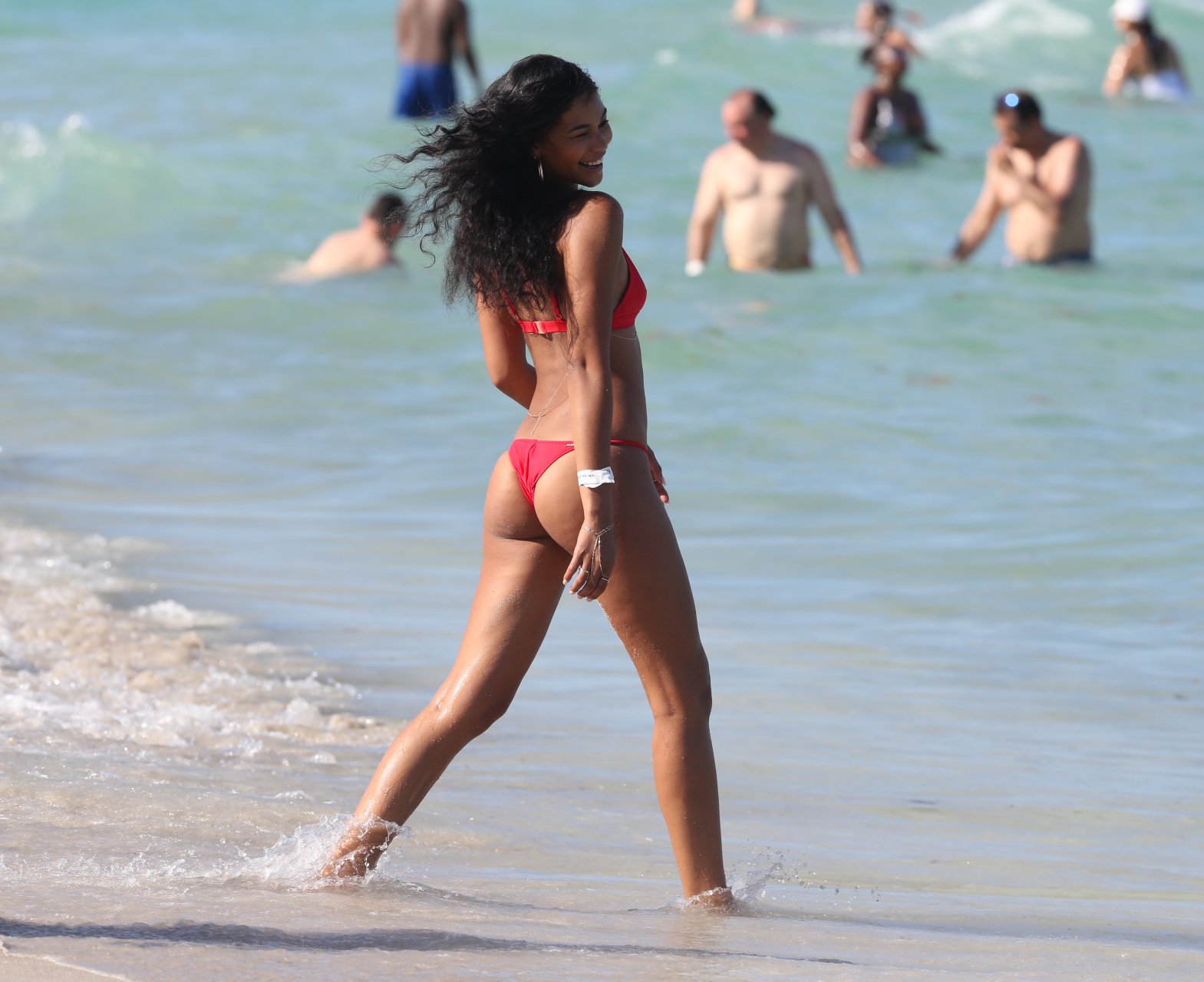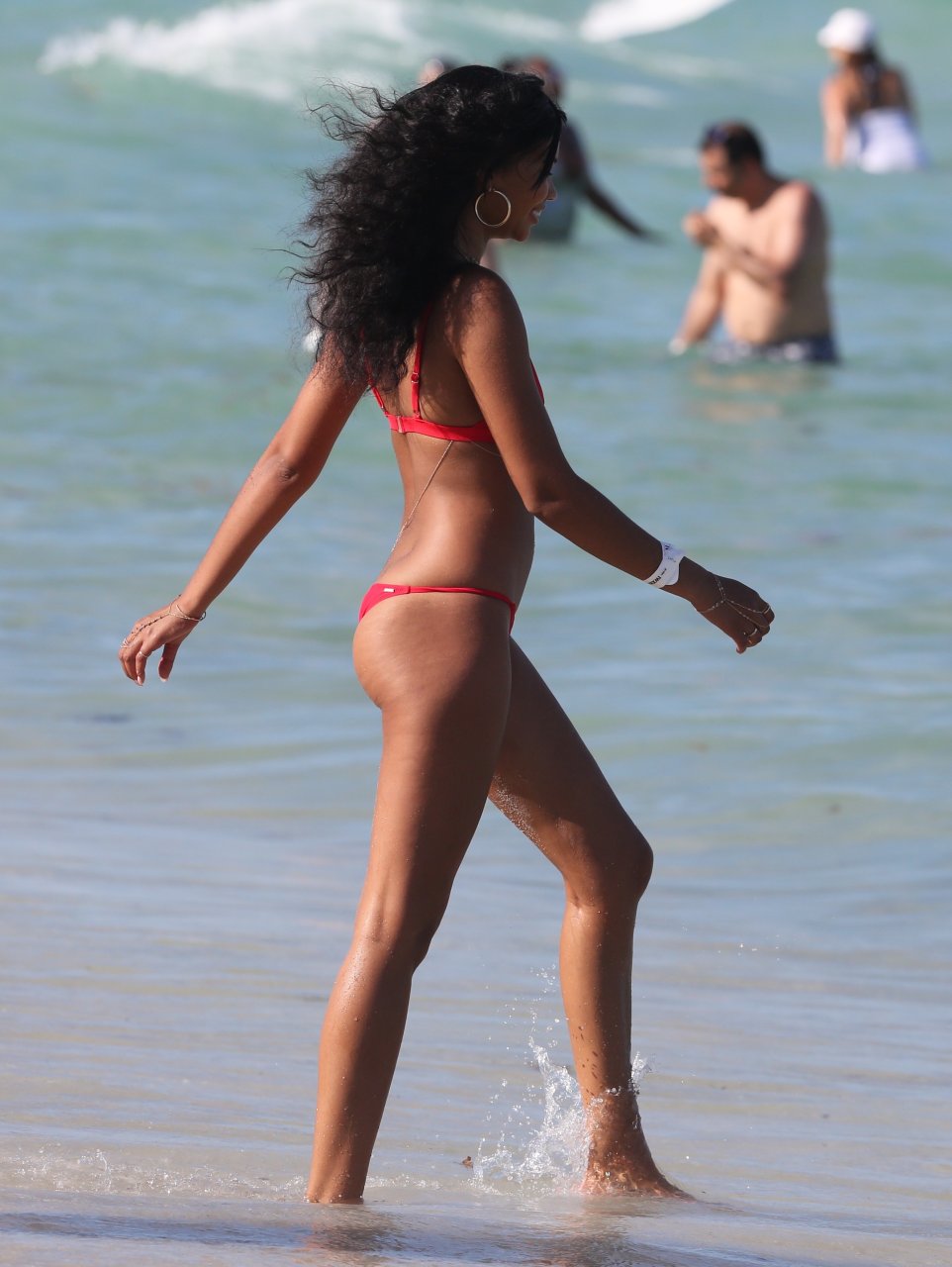 Chanel Iman носит крошечное красное бикини на пляже в Майами, 01.07.2017. Chanel Iman — американская модель, актриса. Возраст: 26 лет.