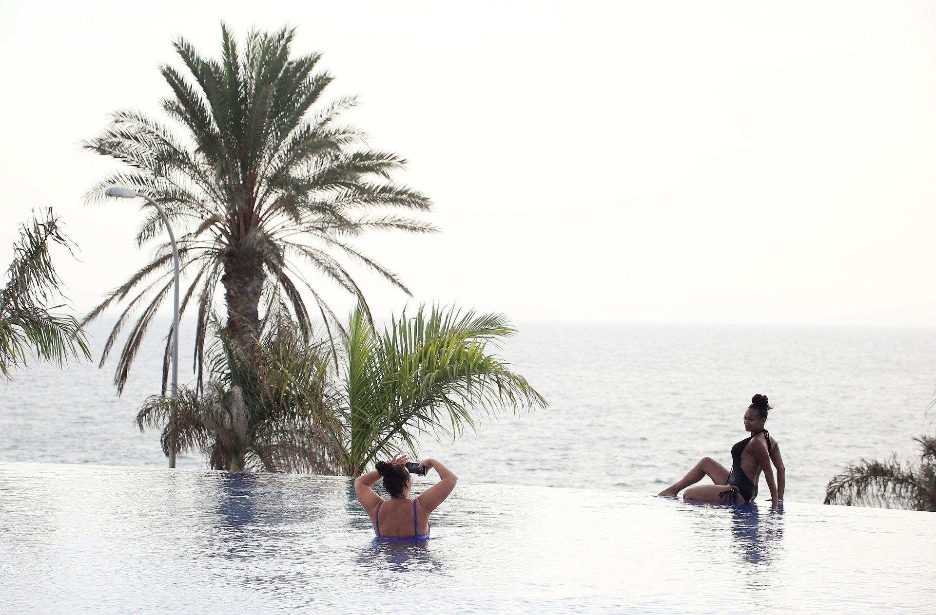 Reality star Chanelle Hayes out in the Spanish sunshine looking sensational wearing her blue swimsuit as she chills out reading her book entitled ‘Just F*ucking Do It’ on the sun-kissed island of Tenerife, 10/04/2019.