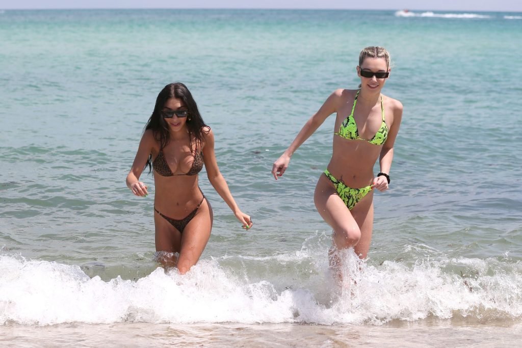 Chantel Jeffries и Sarah Snyder весело проводят время, демонстрируя свои фигуры в крошечных бикини на пляже Майами, 27.03.2019.