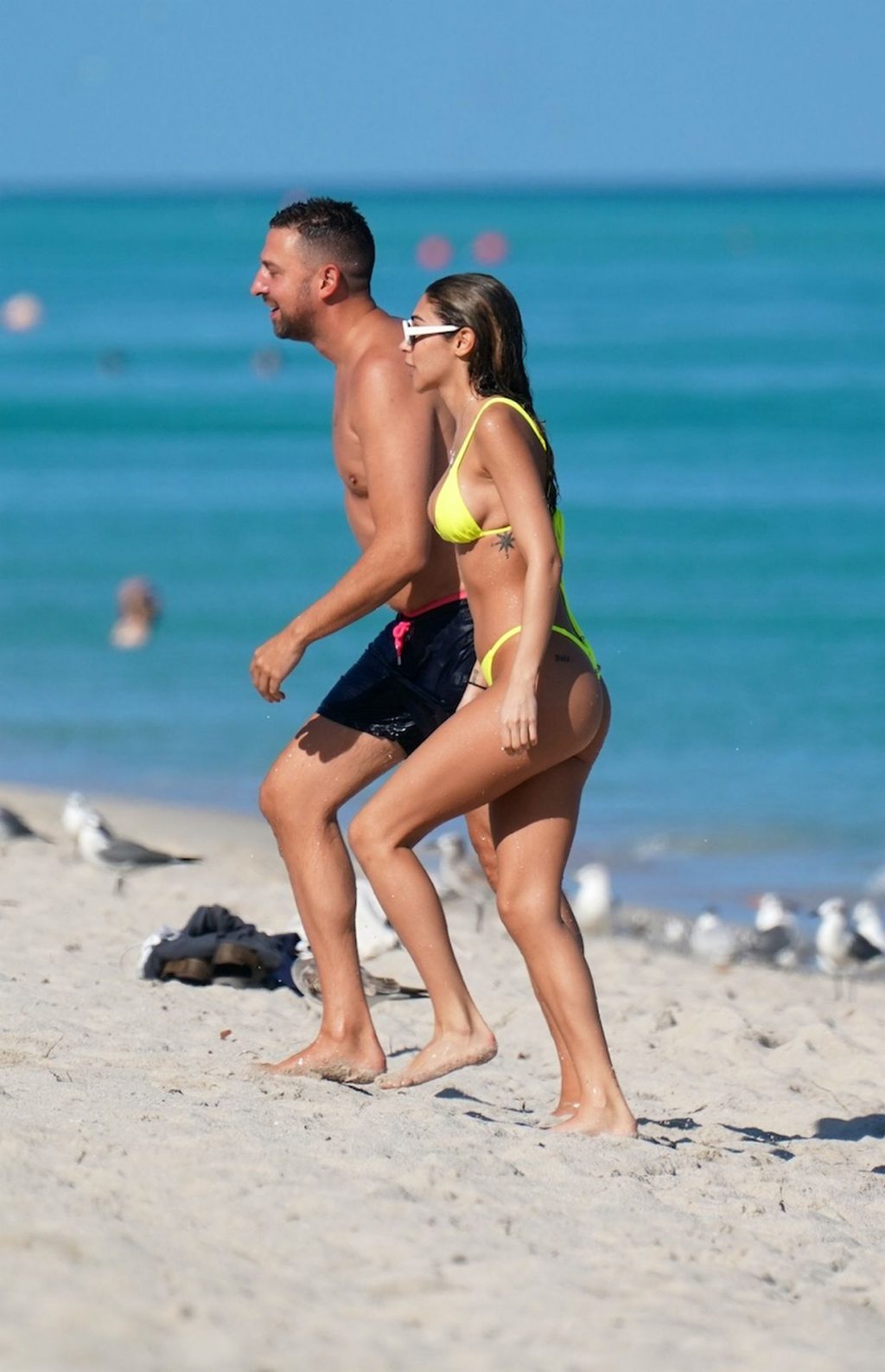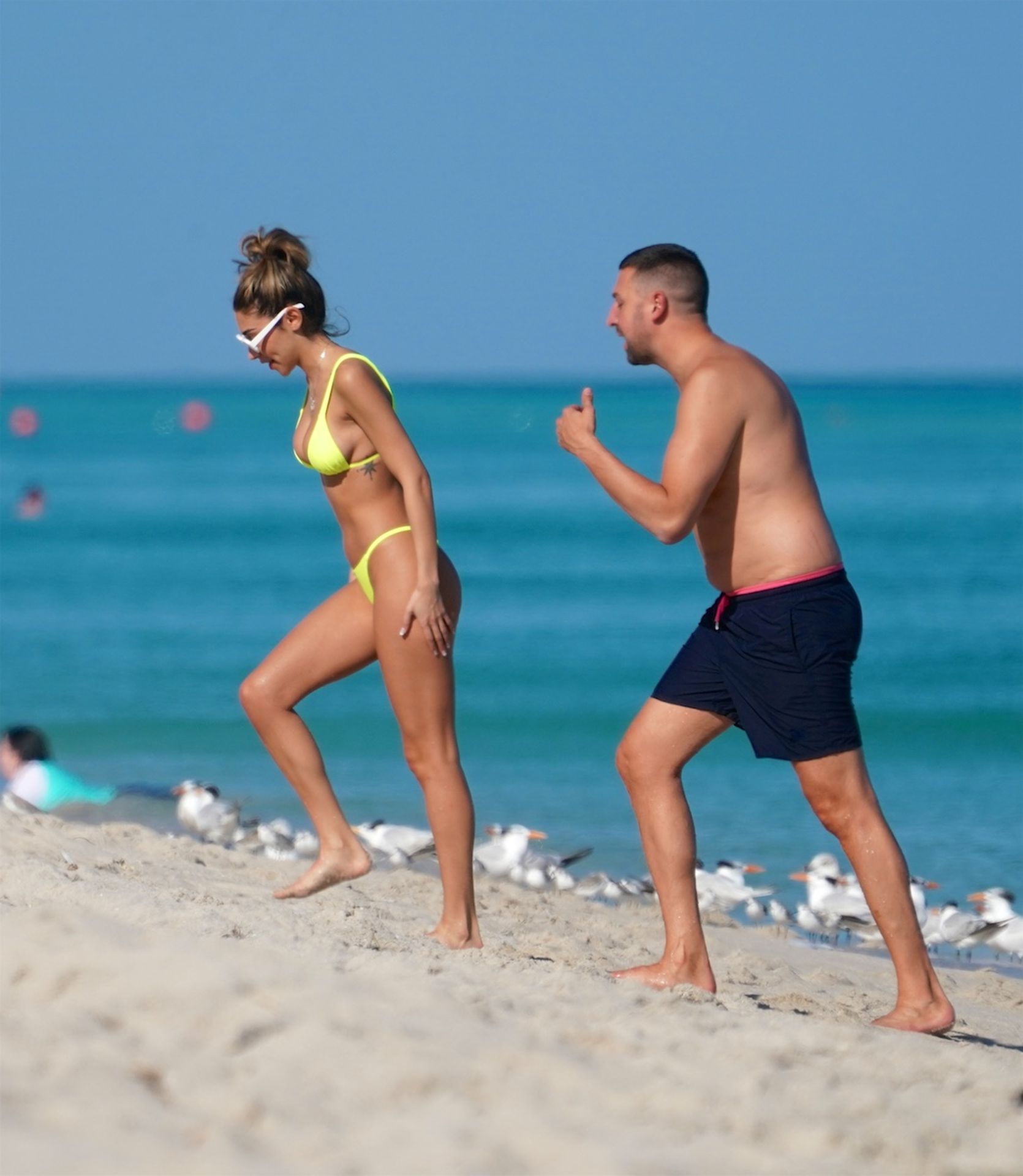 Бывшая девушка Джастина Бибера, звезда The Fappening Шантель Джеффрис была замечена на пляже в неоновом бикини-стрингах с загадочным мужчиной в Майами-Бич, 12/02/2019.