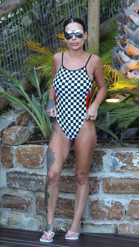 Бывшая звезда Geordie Shore Шантель Коннелли (28) выглядит подтянутой с её сексуальной подтянутой фигурой, отдыхая в клетчатом купальнике в Марбелье, 21.05.2018.