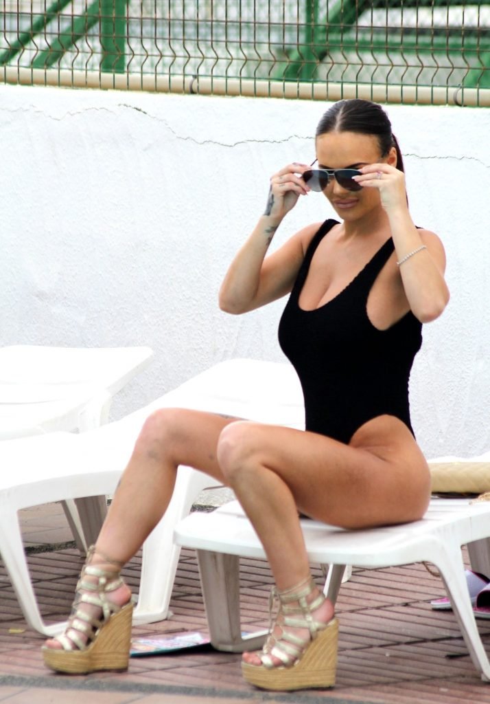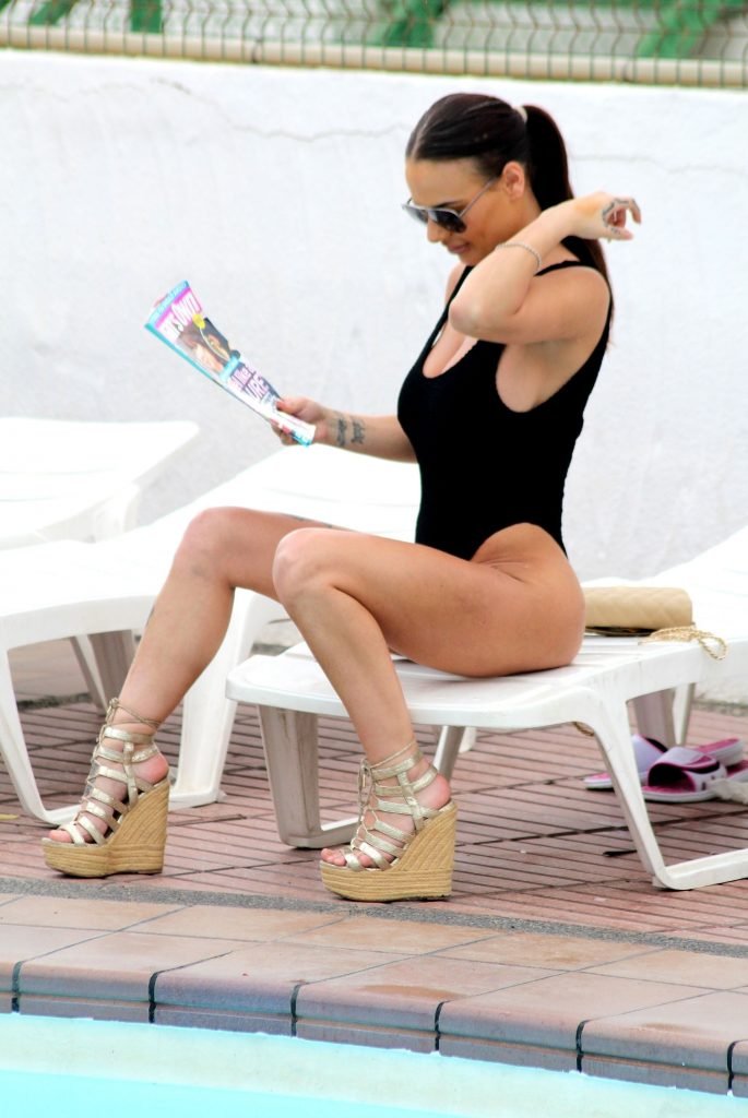 Бывшая участница шоу Geordie Shore Шантель Коннелли демонстрирует сексуальный образ у бассейна в черном купальнике-стрингах во время отпуска на Гран-Канарии, Испания, 23.04.2018. 28-летняя звезда реалити-шоу отдыхала на шезлонге, ловя лучи жаркого испанского солнца.