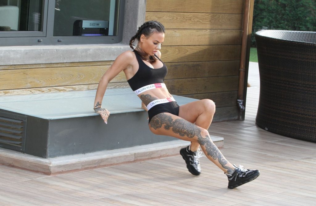 Шантель выглядела спортивно, надев спортивный бюстгальтер Gucci и демонстрируя впечатляющее количество татуировок, пока она занимается спортом во время турецкого отдыха, поддерживая свою подтянутую фигуру.