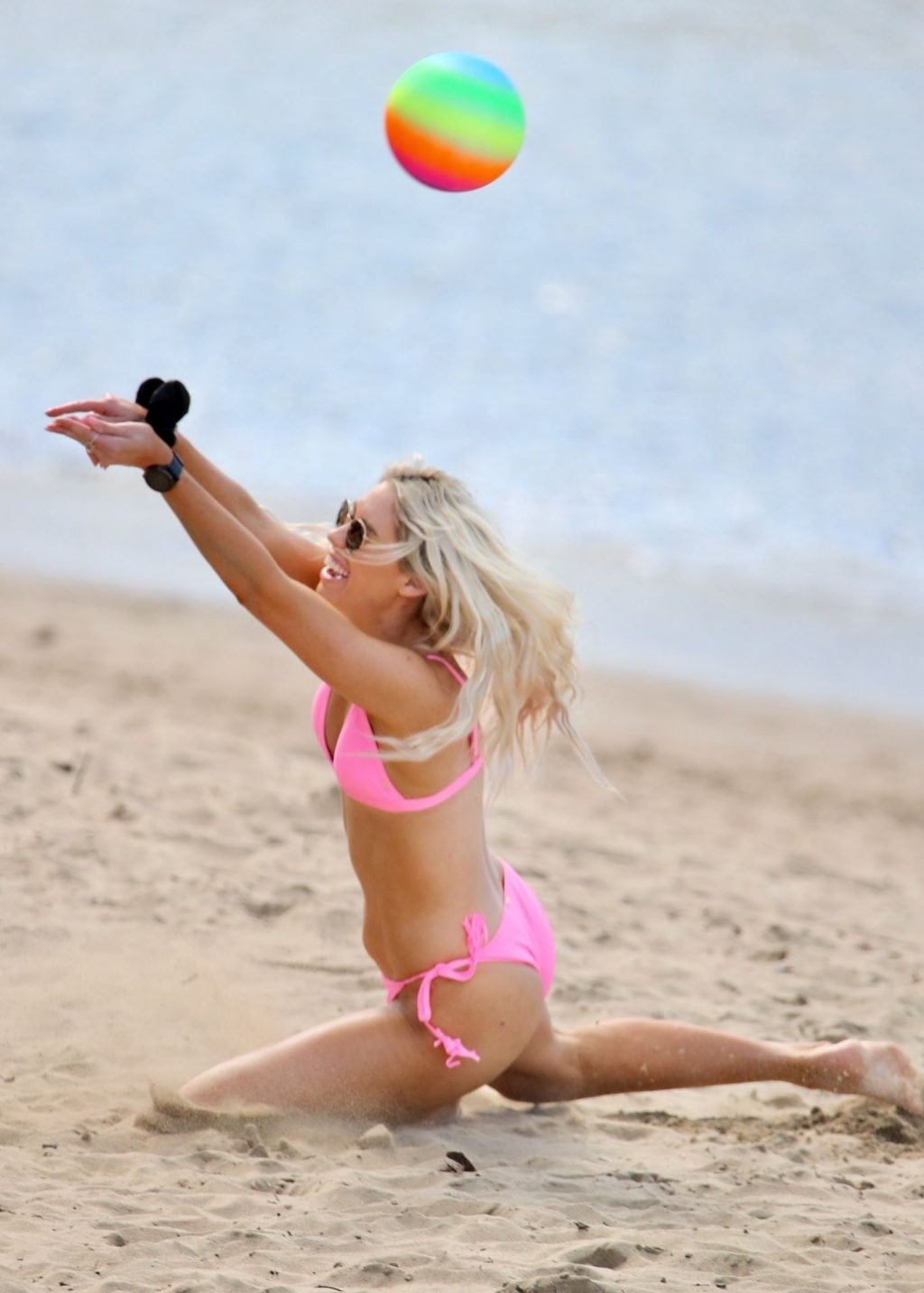 Сексуальная участница шоу Холостяк 2020 Чарли Бонд в розовом бикини на пляже в Голд-Кост, 16.08.2020.