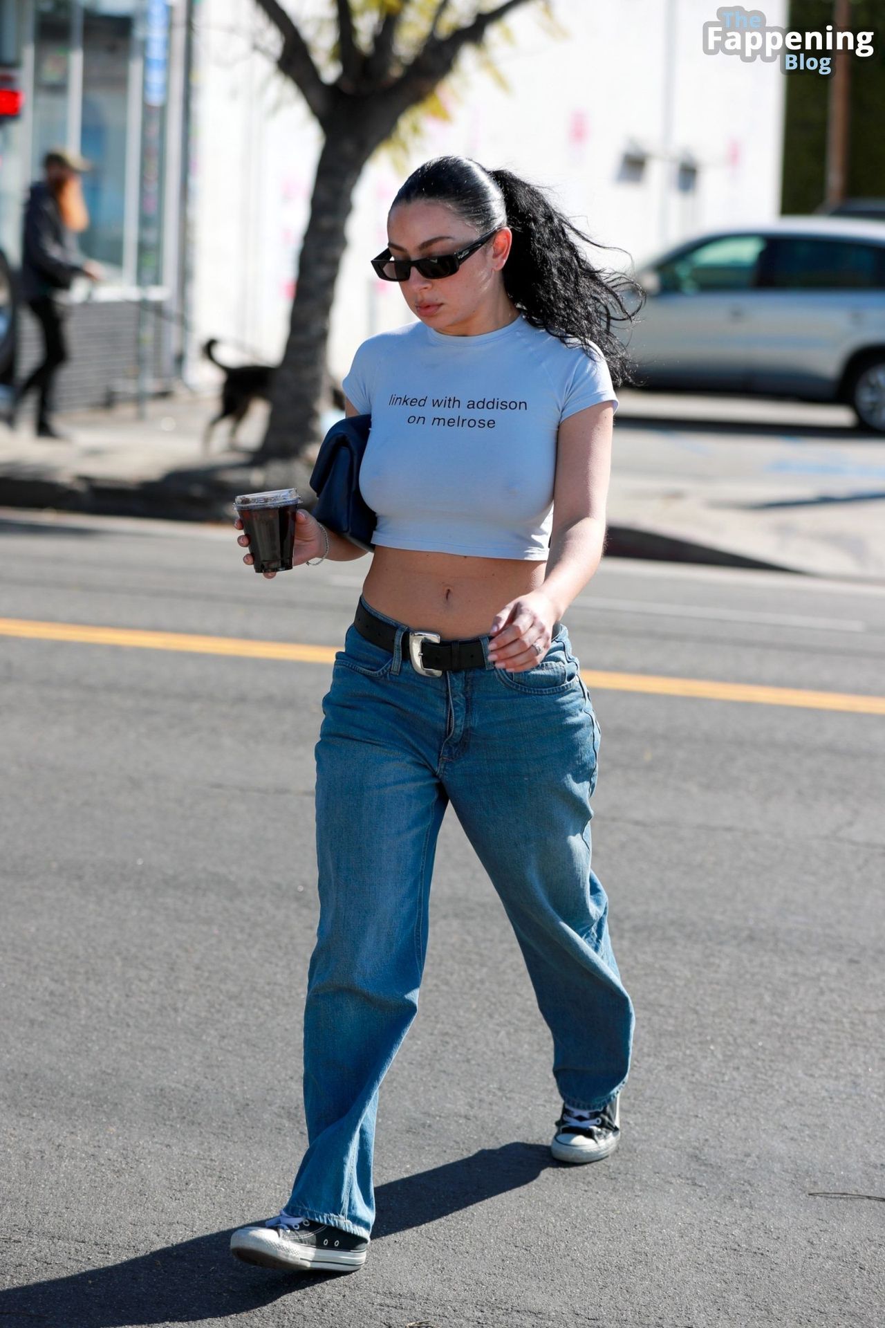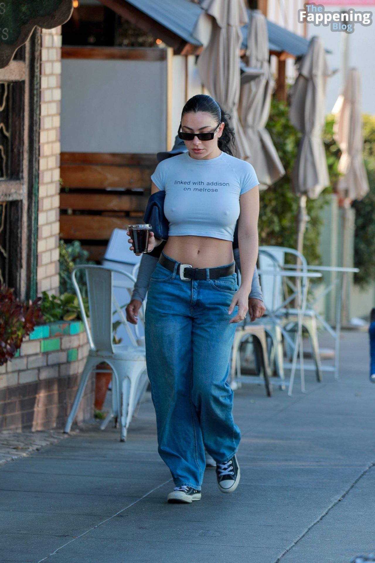 Charli XCX привлекает внимание в Лос-Фелисе смелым образом без бюстгальтера, дерзко выставляя напоказ свои заметные соски. Певица заходит в All Time за айс-кофе, занимаясь делами.