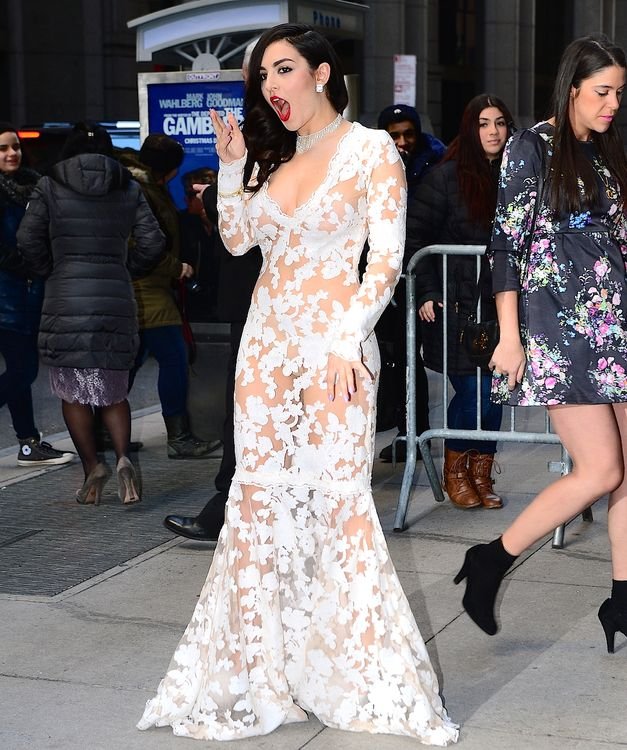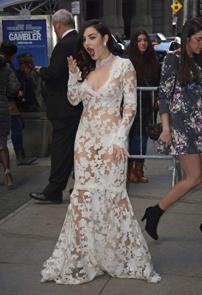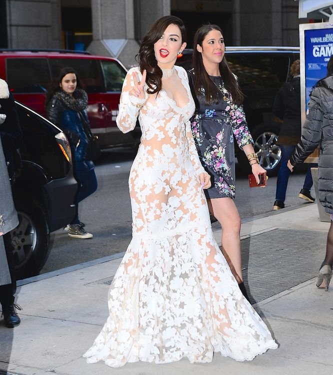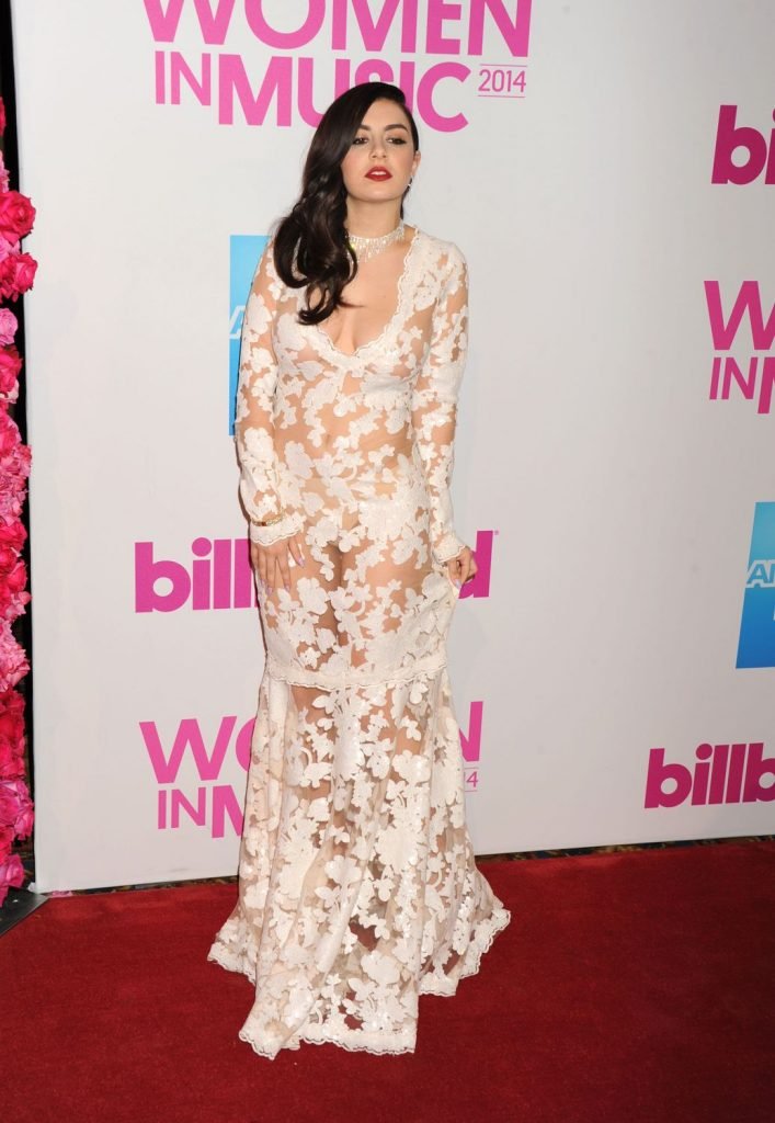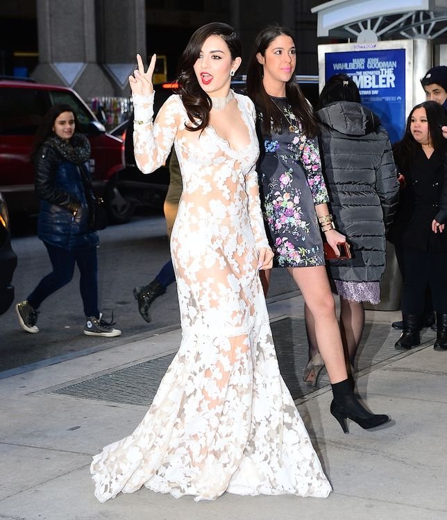 Charli XCX была в прозрачном платье на обеде Billboard Women in Music 2014 в Нью-Йорке, 12/12/2014. Особая благодарность Адриано за информацию. Шарлотта Эйчисон (студийный псевдоним Charli XCX) — английская певица и автор песен. Возраст — 24 года (родилась 2 августа 1992).