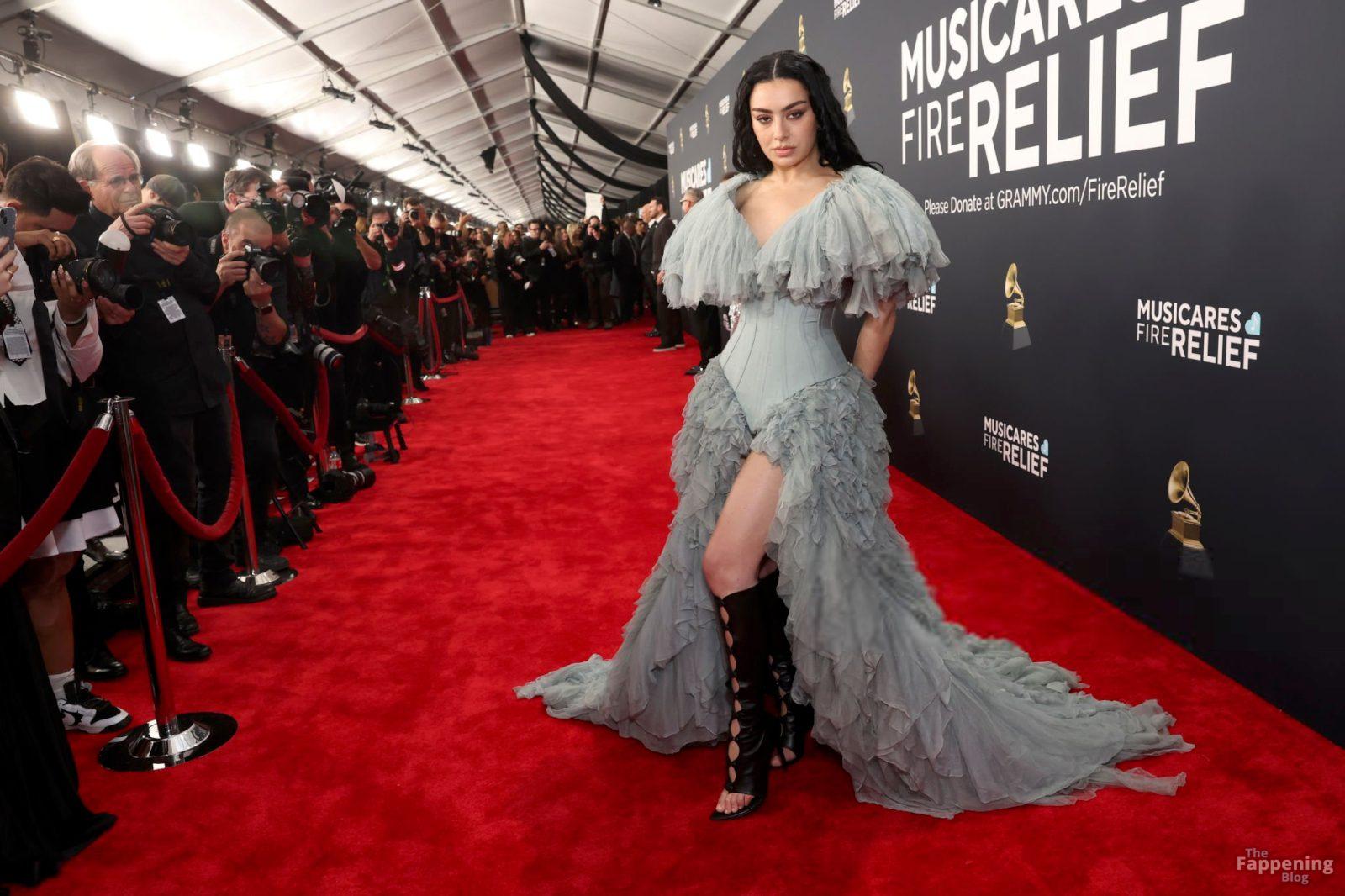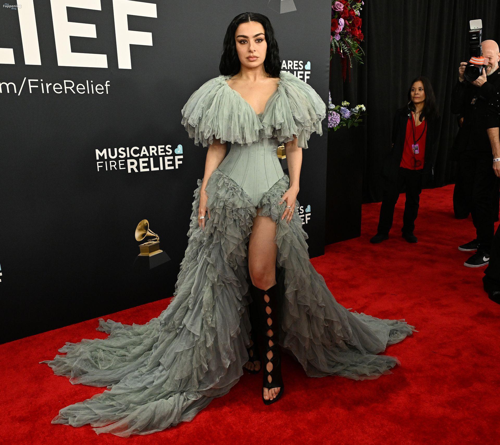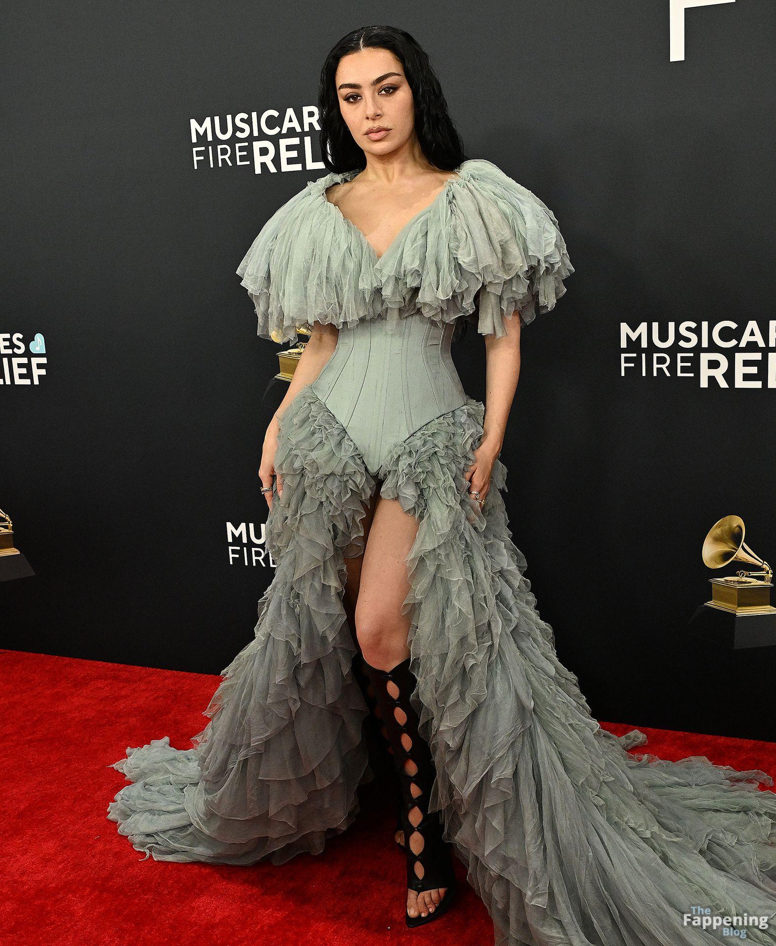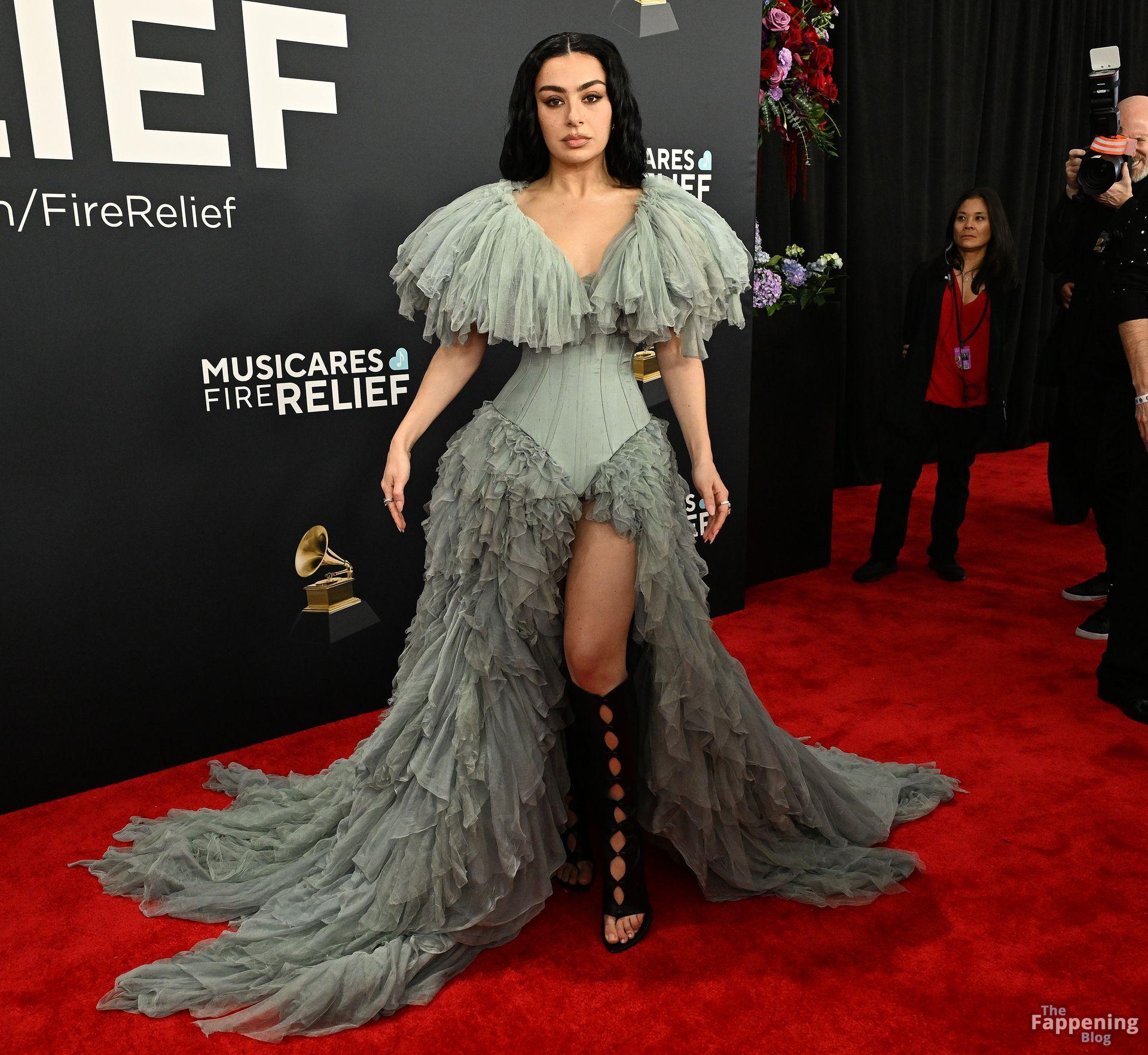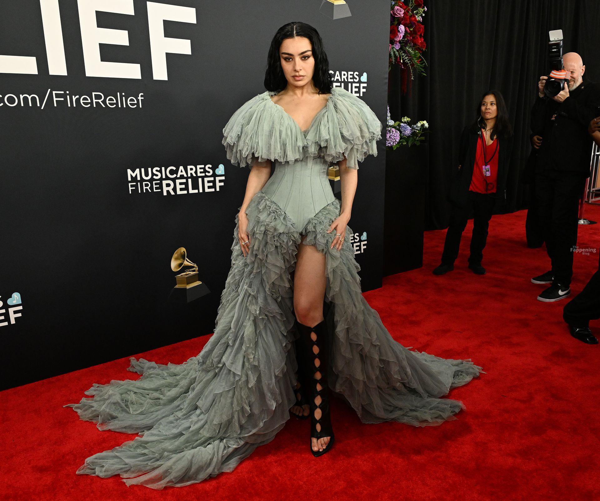 Charli XCX появилась на красной дорожке Грэмми. На ней было серое корсетное платье, идеально подчеркивающее фигуру, с ниспадающими оборками. И только представьте — она дополнила образ высокими сапогами с вырезами, которые выглядят как из самых смелых фантазий. Также посмотрите на её два других наряда в галерее ниже.