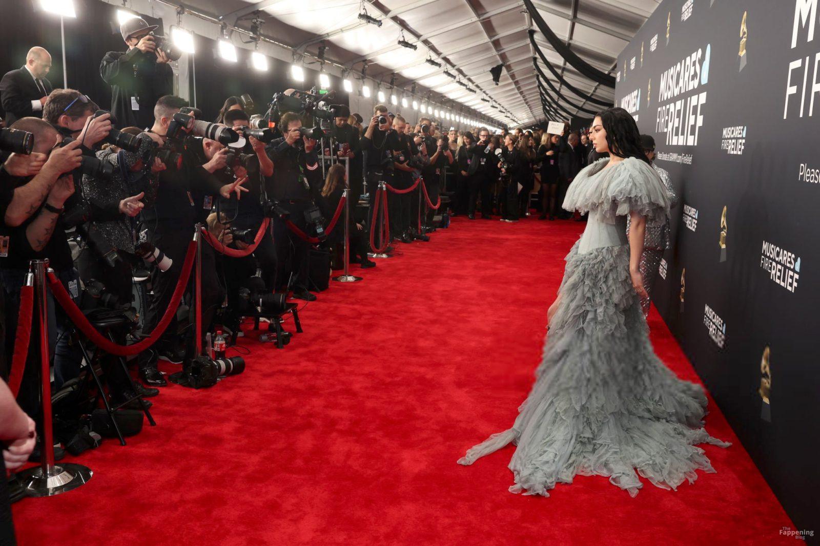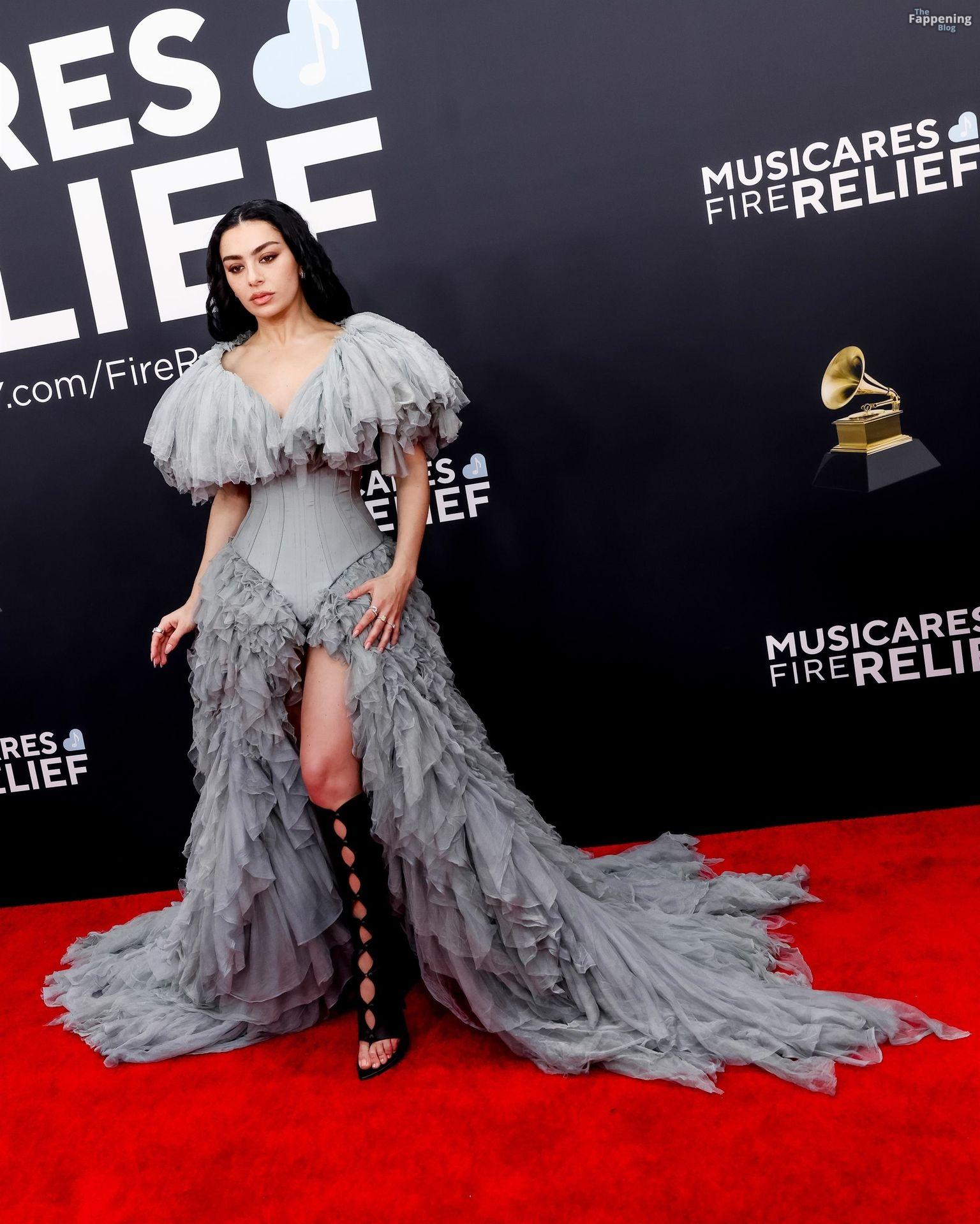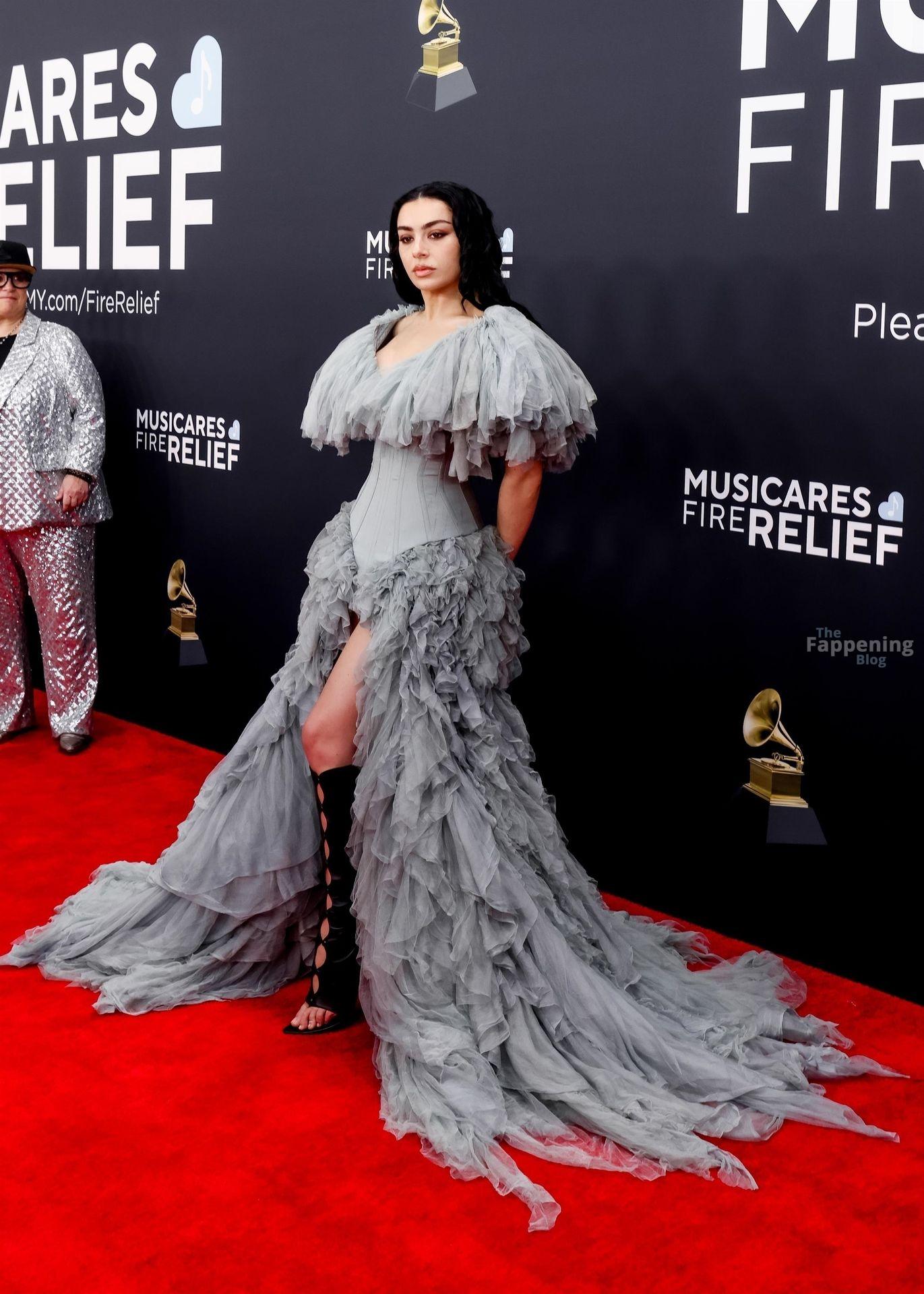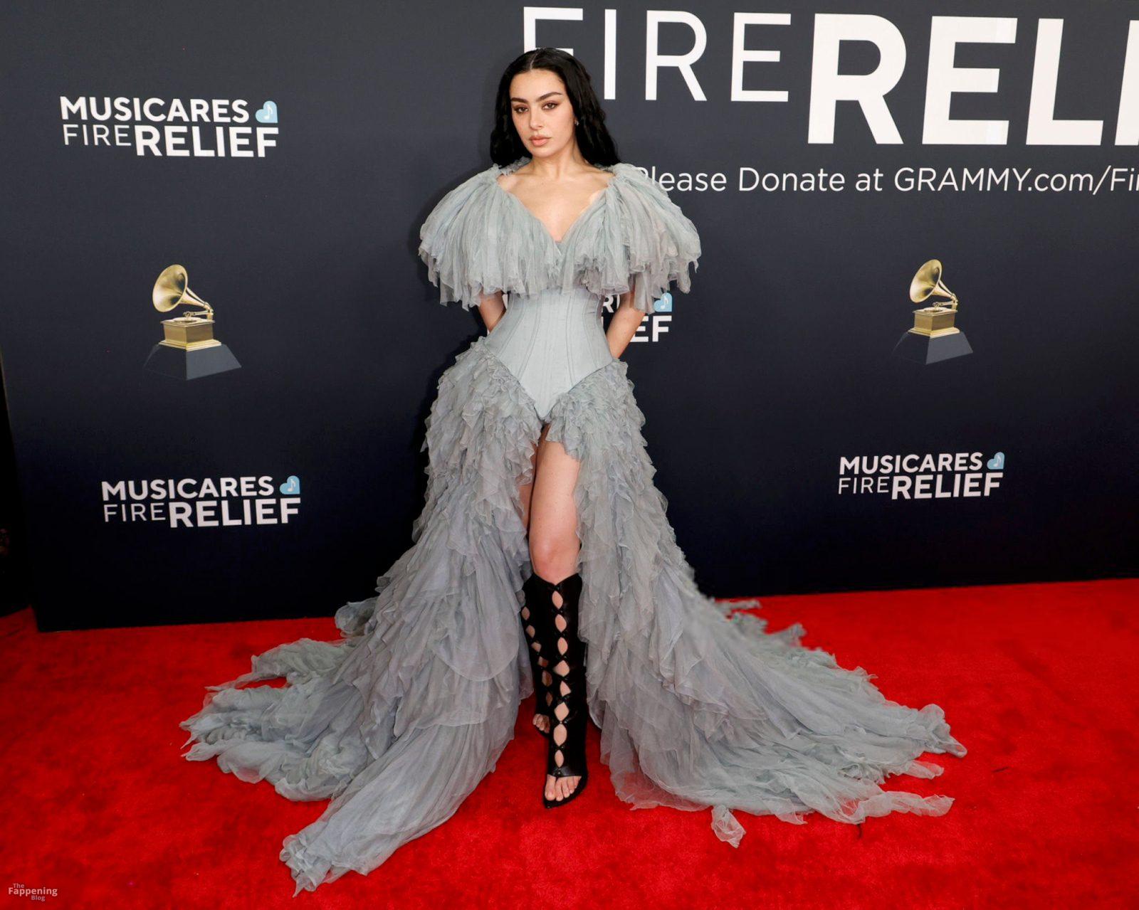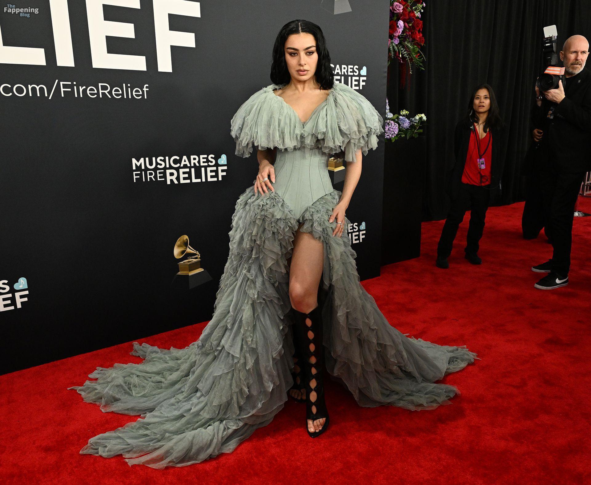 Charli XCX появилась на красной дорожке Грэмми. На ней было серое корсетное платье, идеально подчеркивающее фигуру, с ниспадающими оборками. И только представьте — она дополнила образ высокими сапогами с вырезами, которые выглядят как из самых смелых фантазий. Также посмотрите на её два других наряда в галерее ниже.